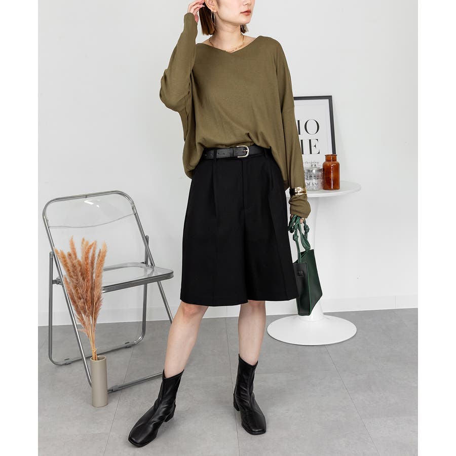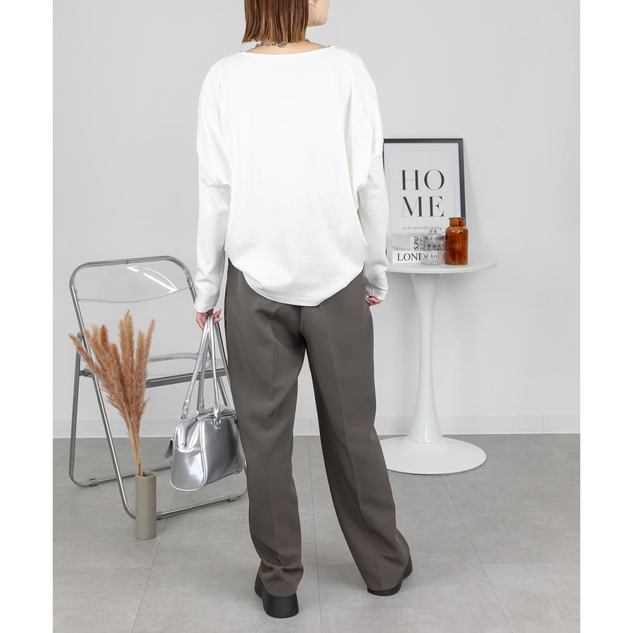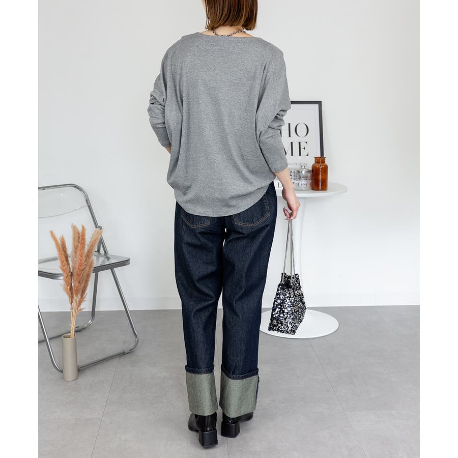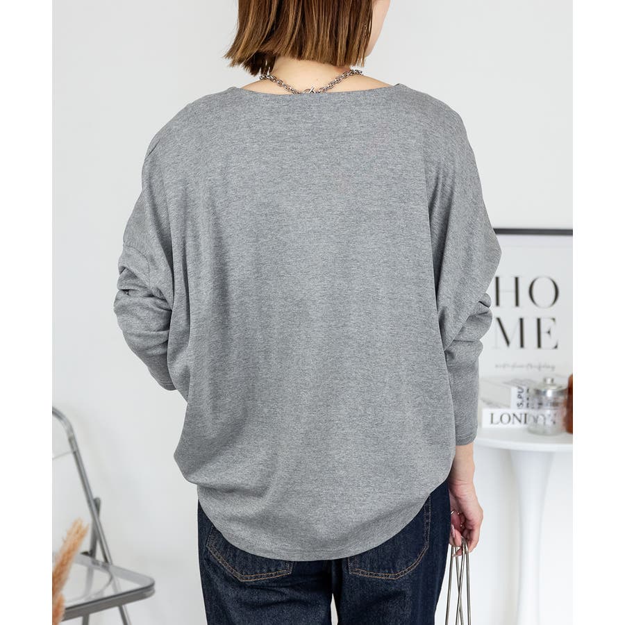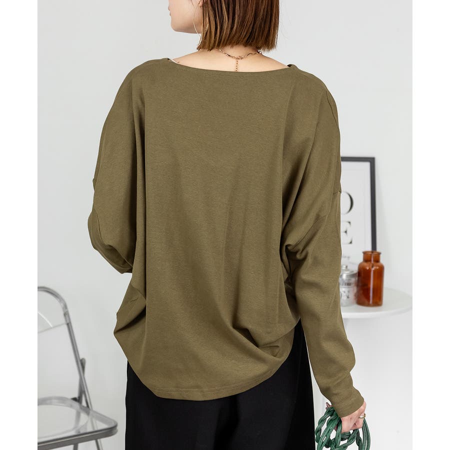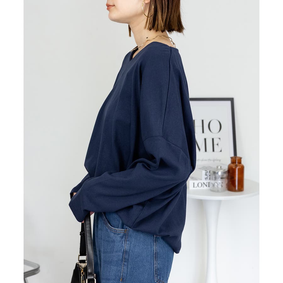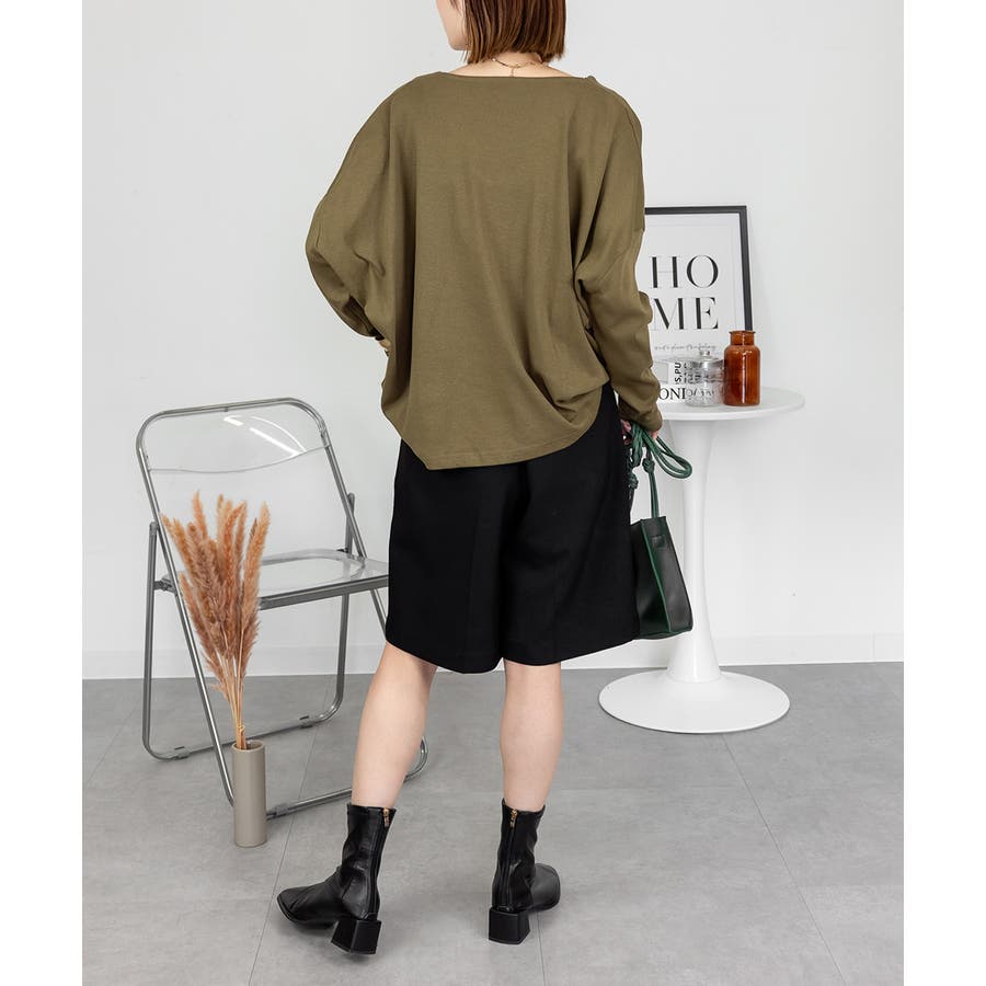 体のラインを拾いにくいドルマンスリーブが自然に体形をカバーし、シンプルながらもこなれた印象に。