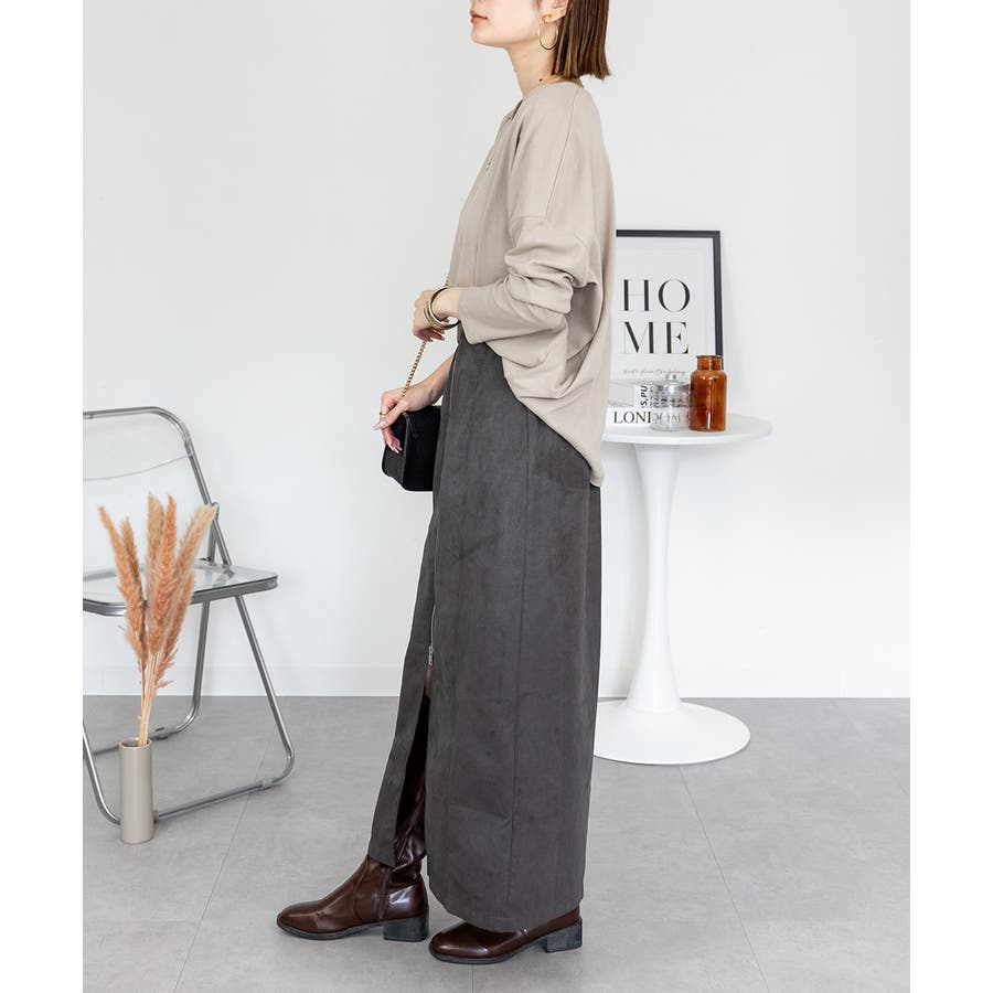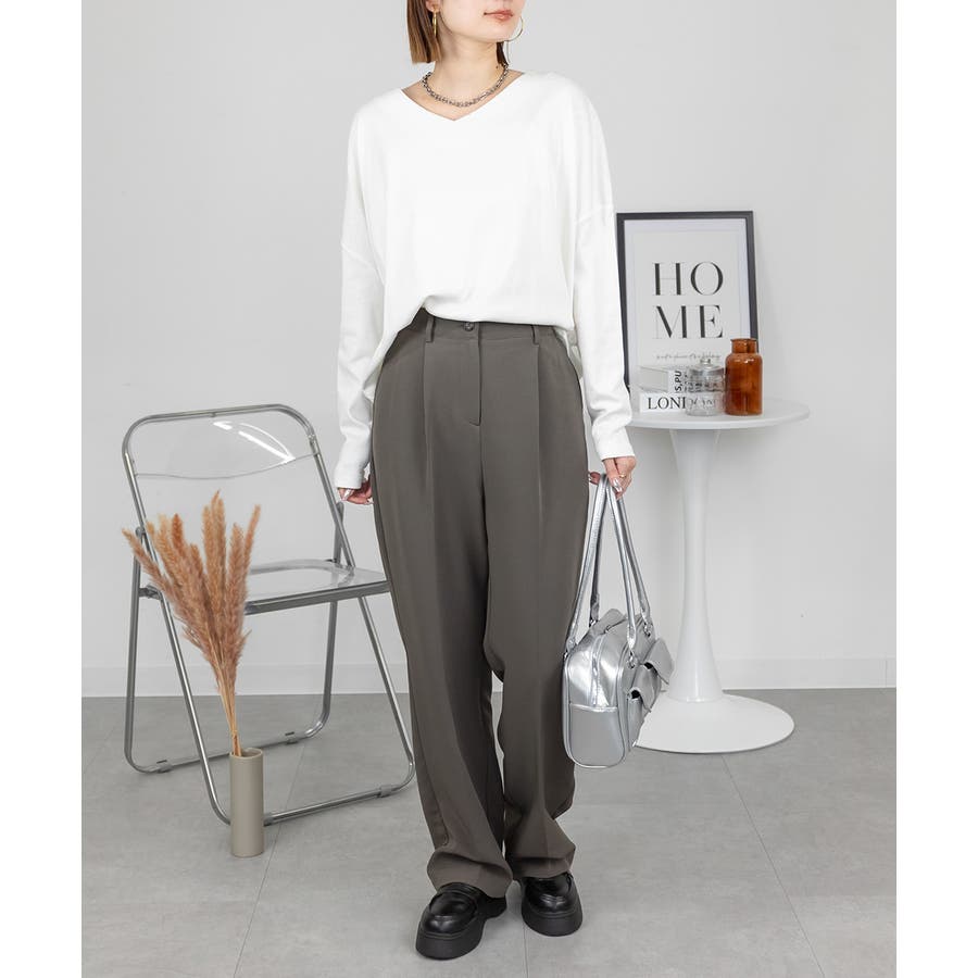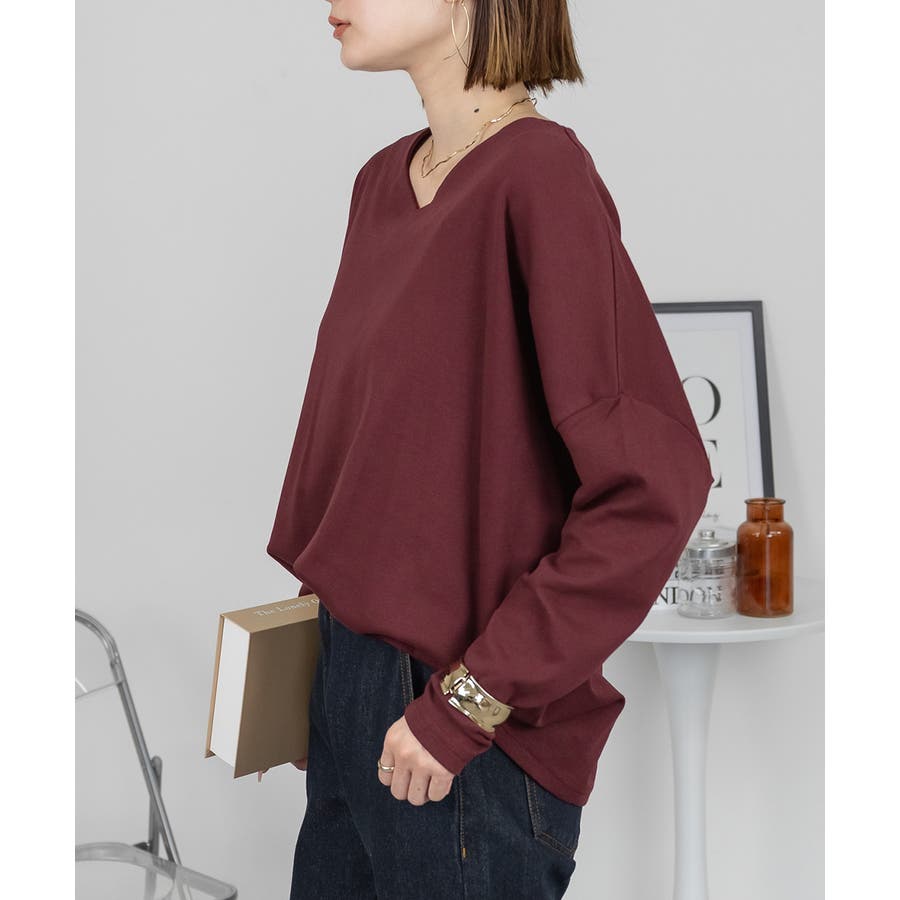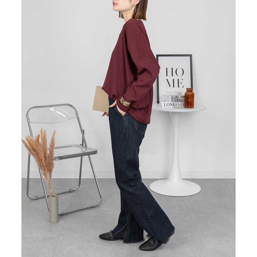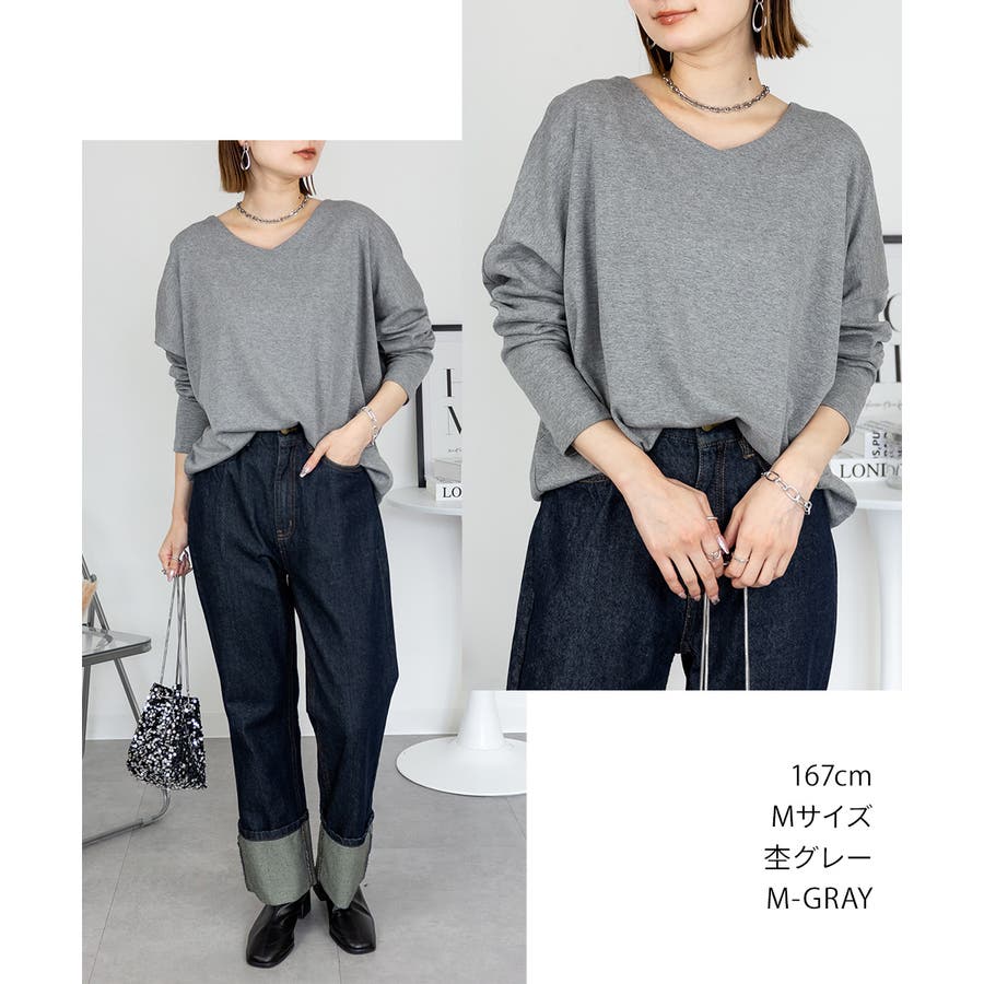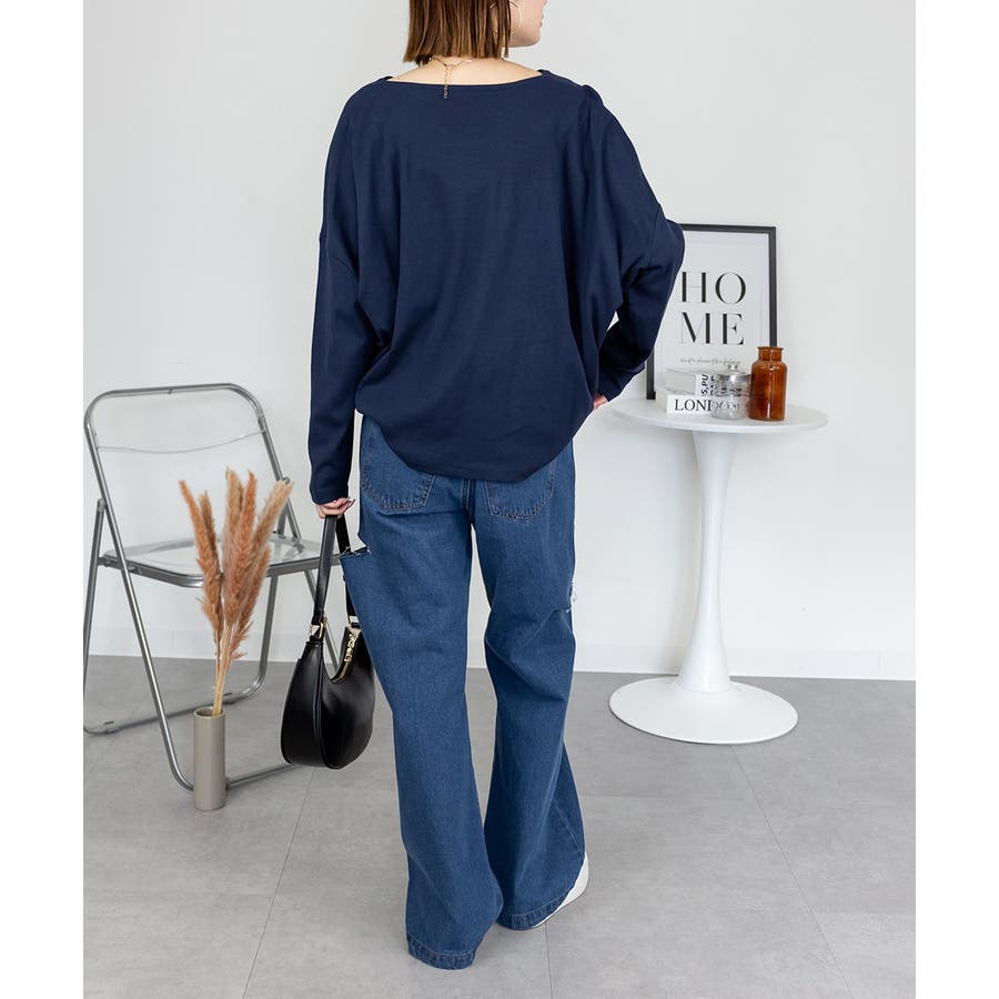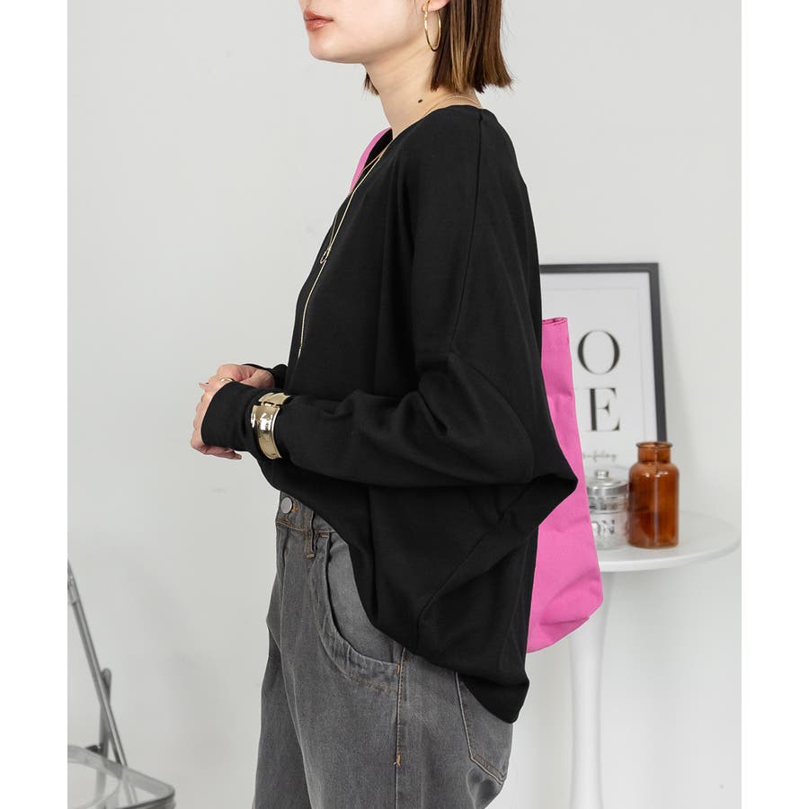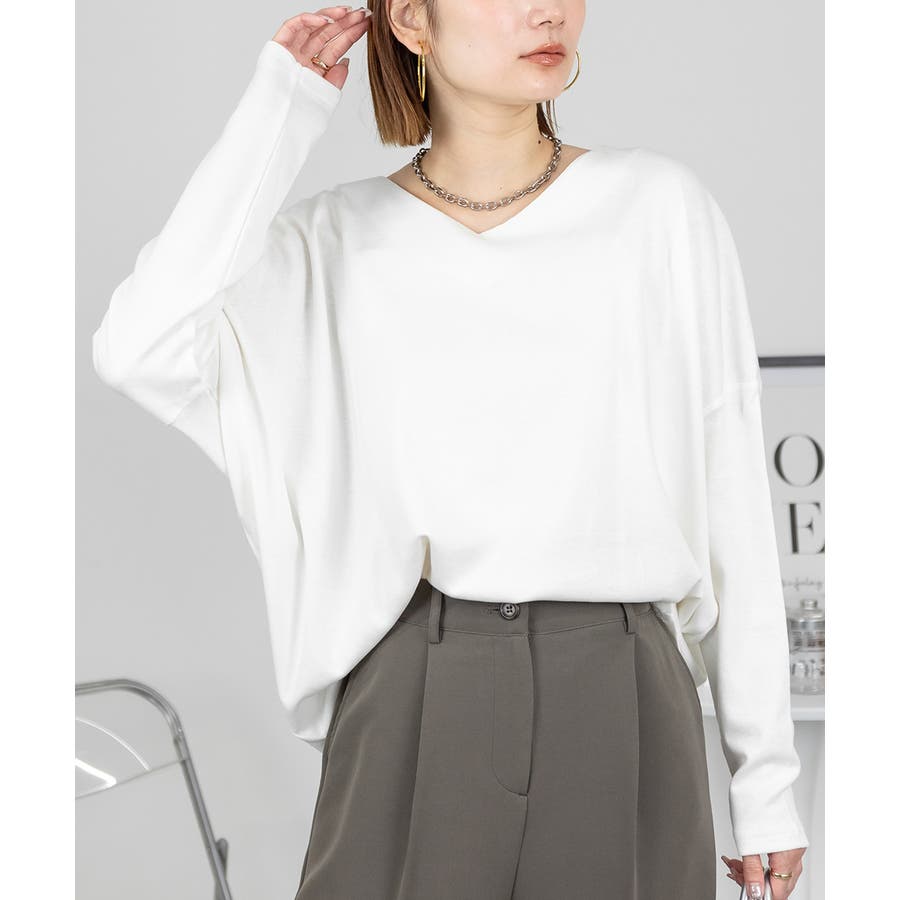 体のラインを拾いにくいドルマンスリーブが自然に体形をカバーし、シンプルながらもこなれた印象に。