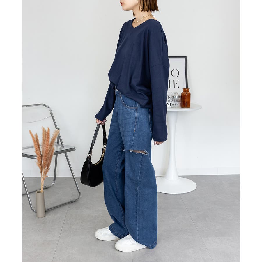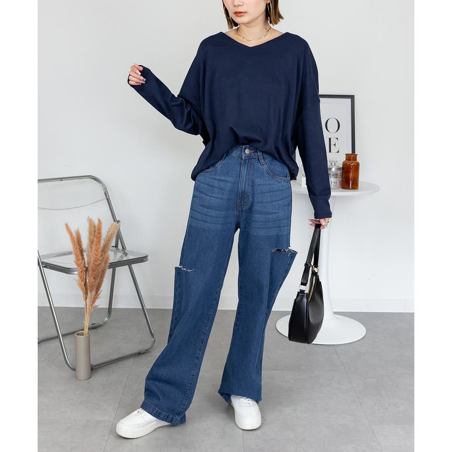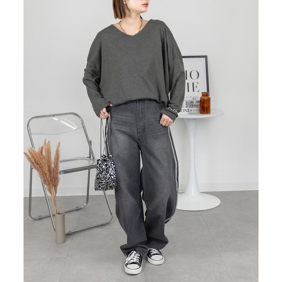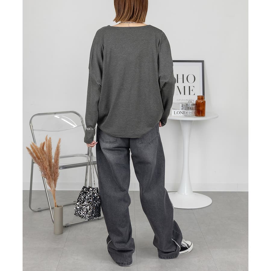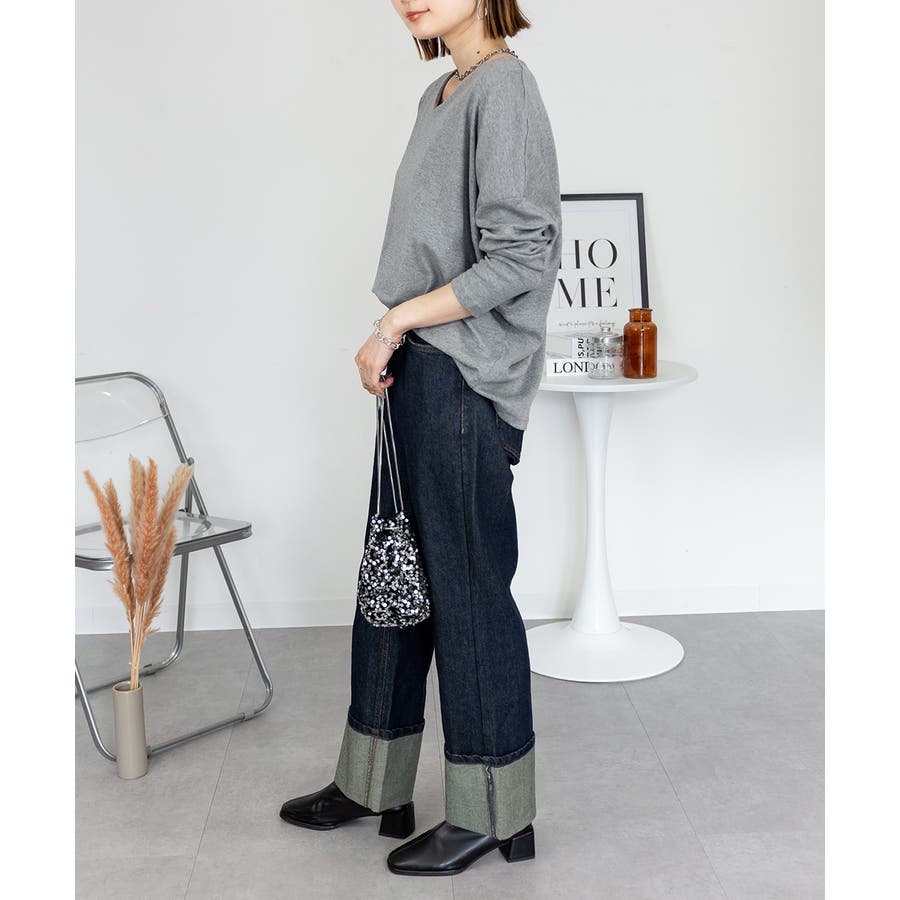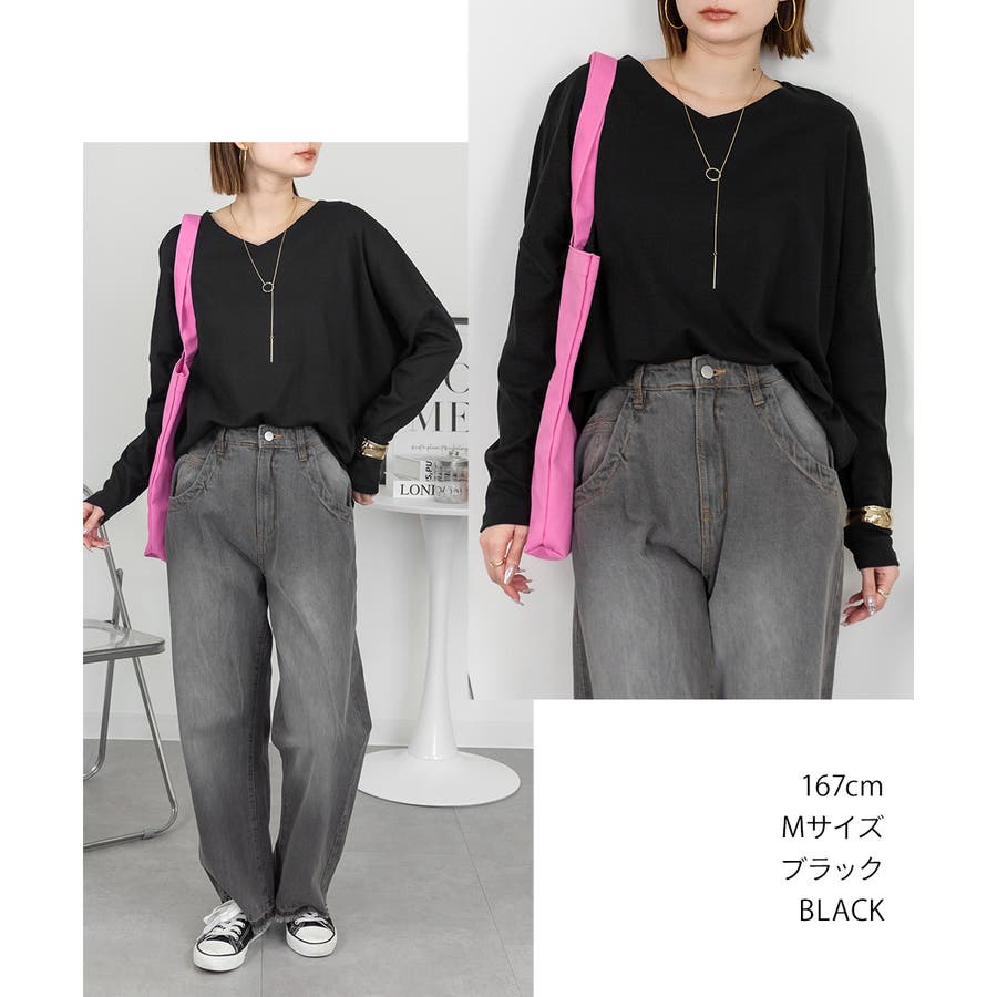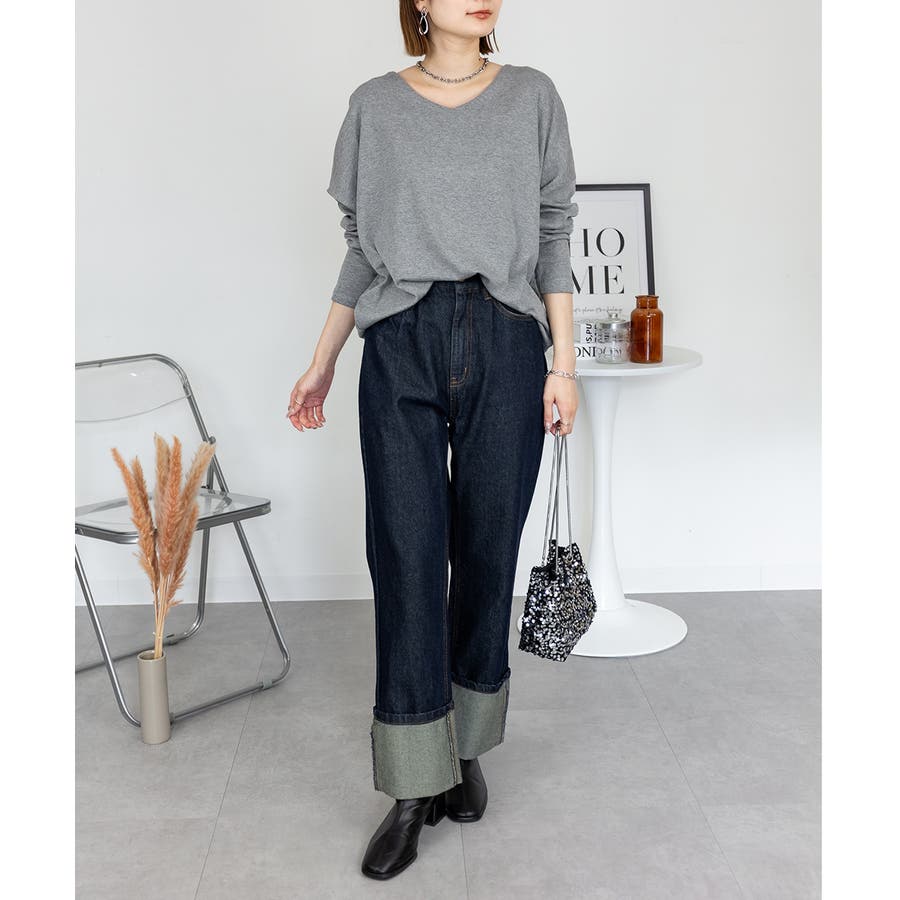 体のラインを拾いにくいドルマンスリーブが自然に体形をカバーし、シンプルながらもこなれた印象に。