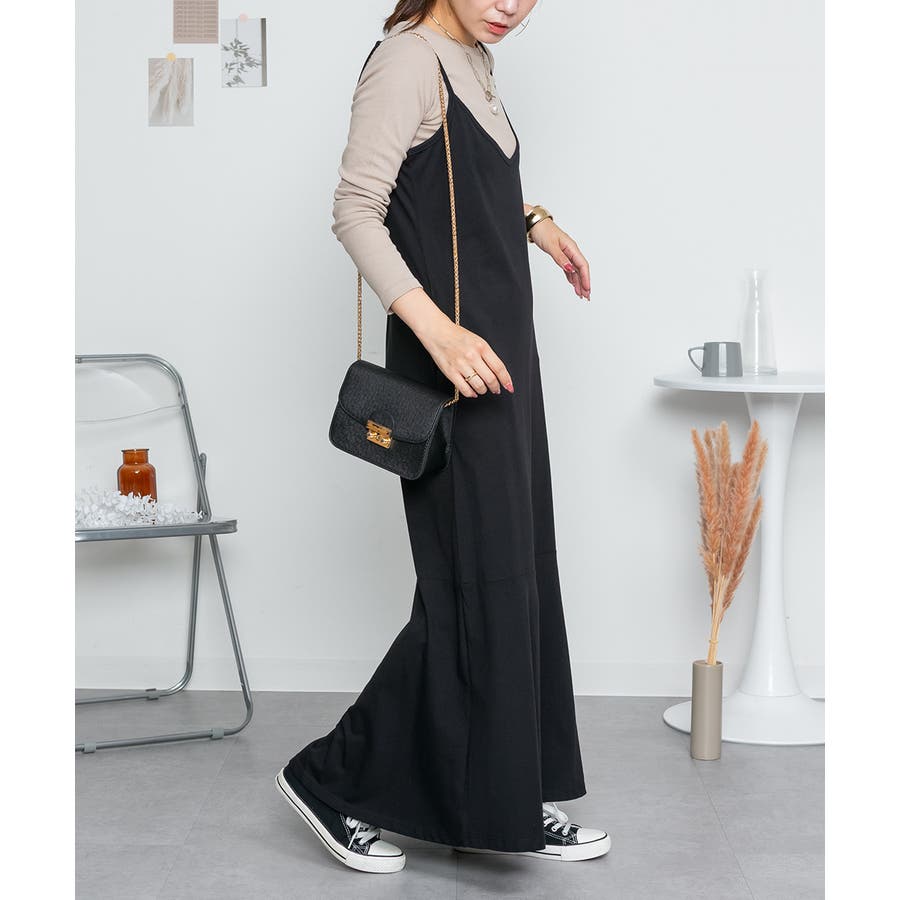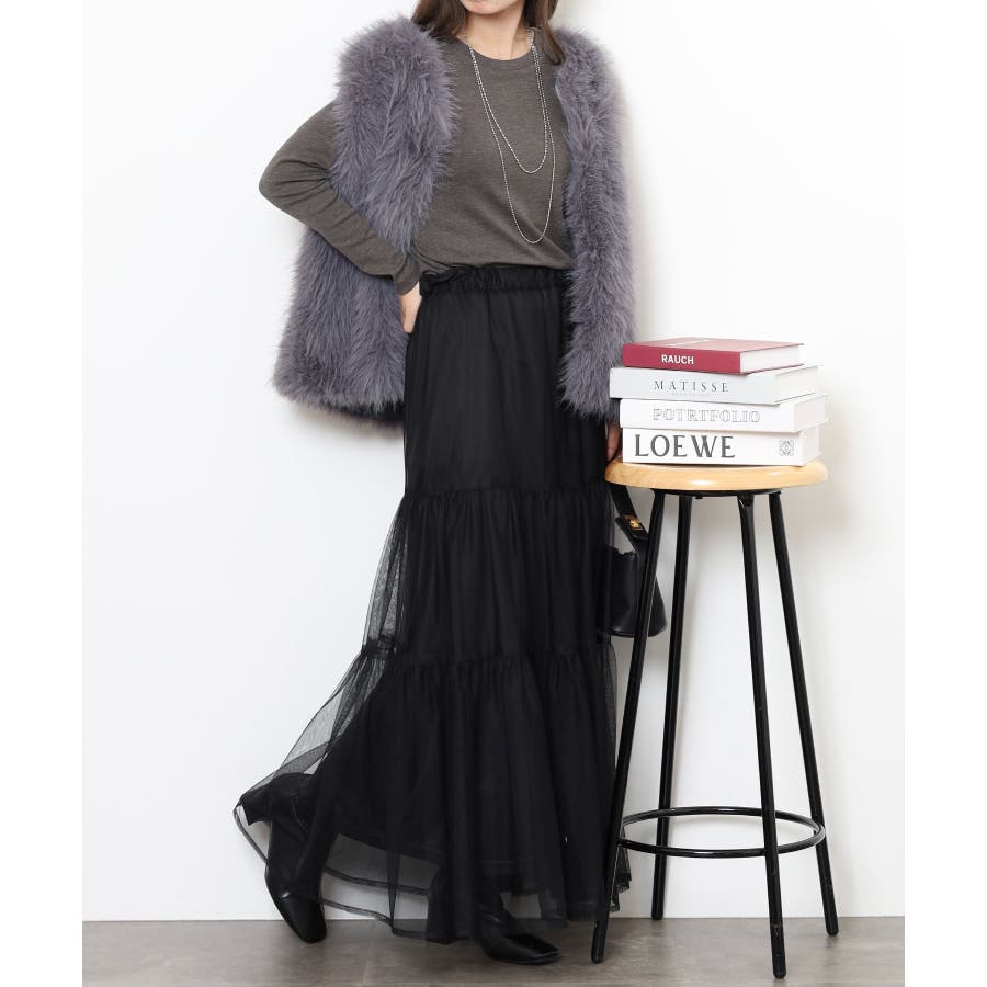 ロングスリーブコンパクトTシャツにナロースカートを合わせて、縦長ラインを強調したスタイルに。