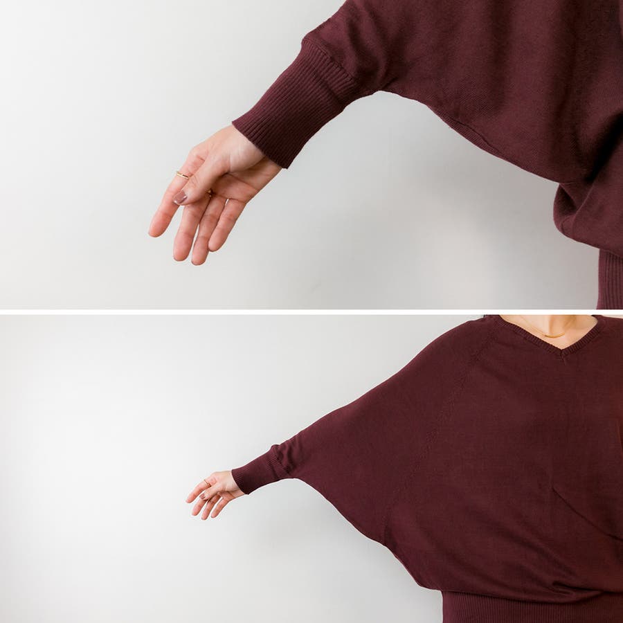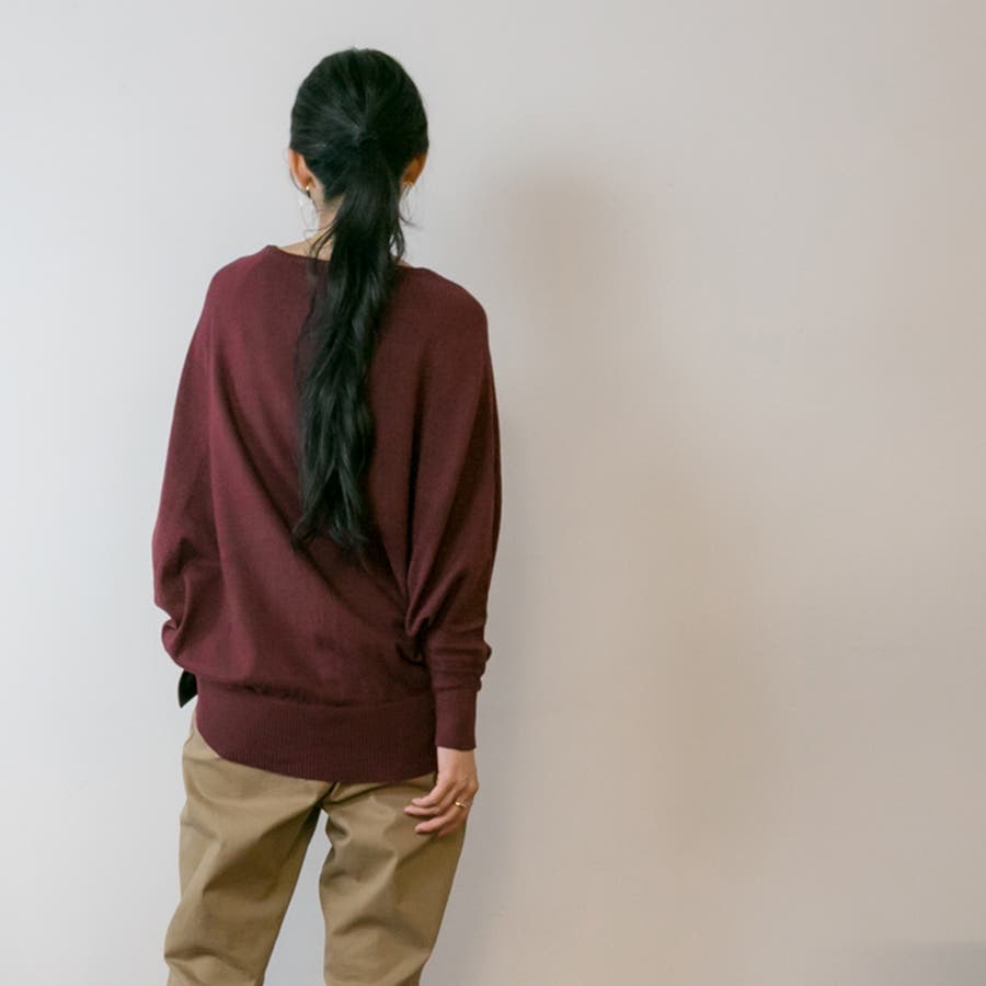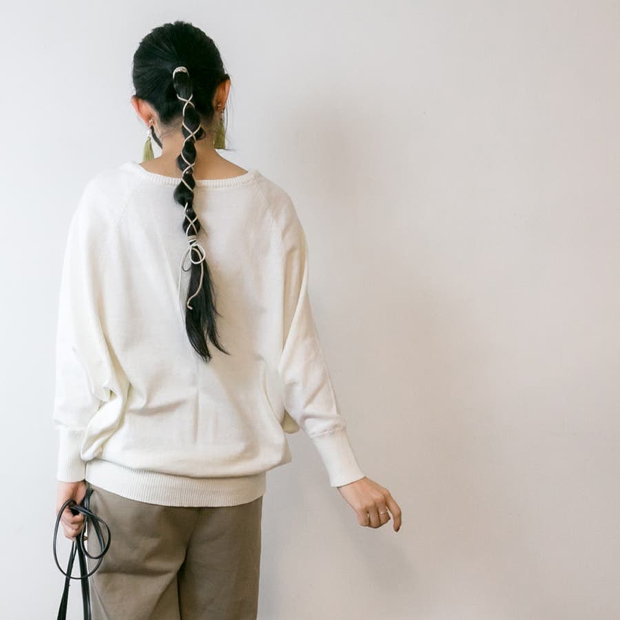 「無限」の着まわし力 Point01 実力派ドルマンニットドルマンスリーブが絶妙なラインを作り、すっきり魅せます。体型の気になる部分を隠しながら華奢な手先だけを強調してくれます。Point02 美人をつくるVネックで綺麗なデコルテ考え尽くされたデコルテを魅せる絶妙なネックライン。広すぎず狭すぎない首元は、すっきりと着こなせて女性らしさを演出。