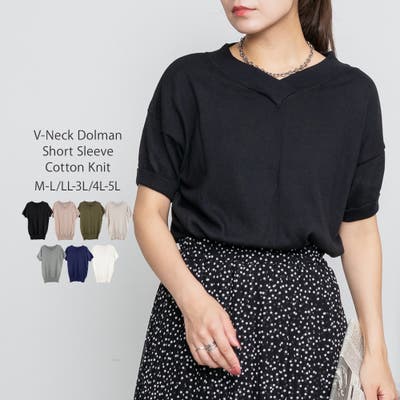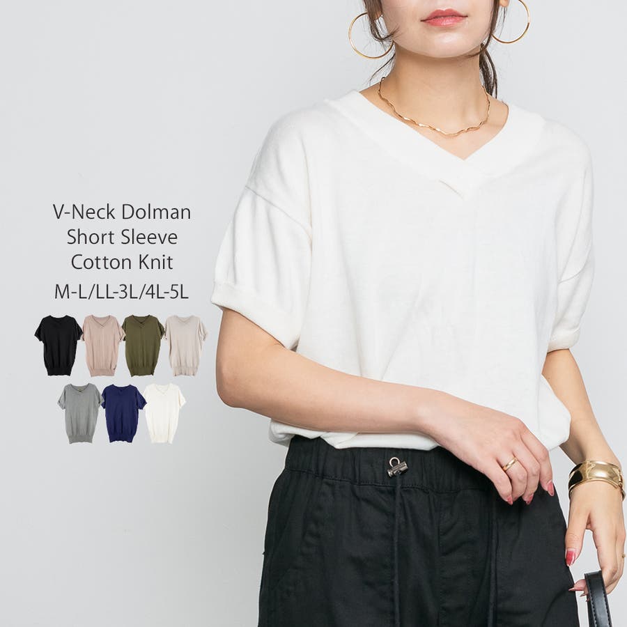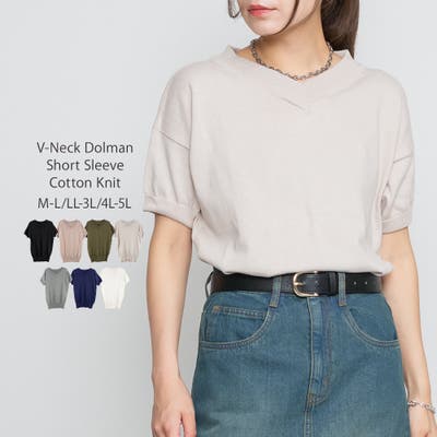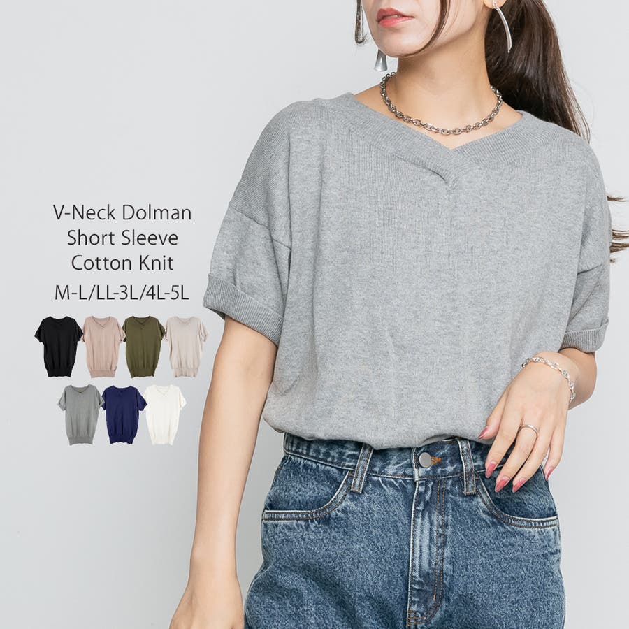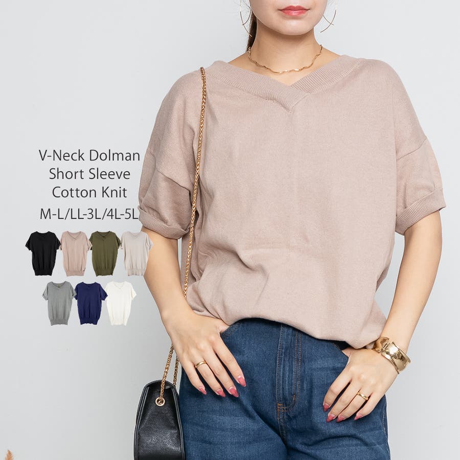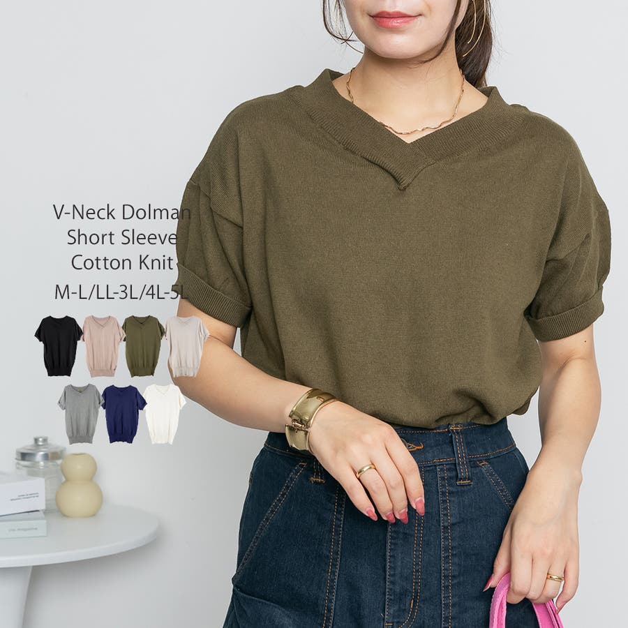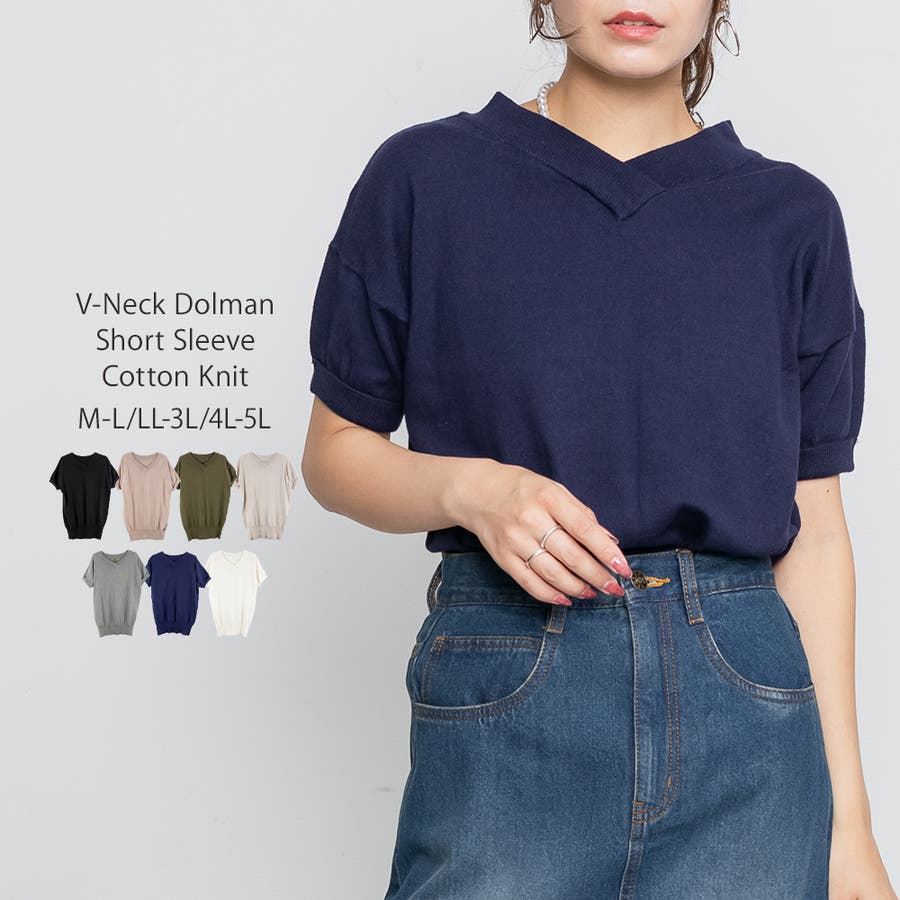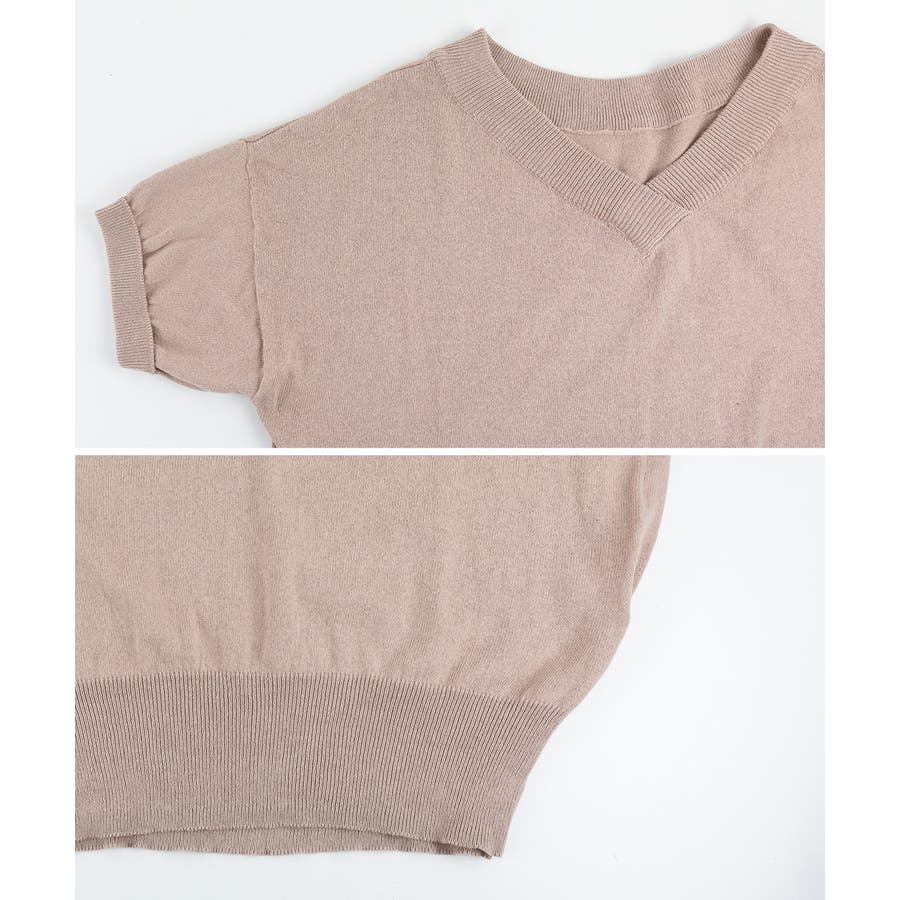 Vネックドルマン半袖綿ニット セーター カーディガン