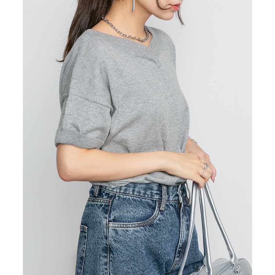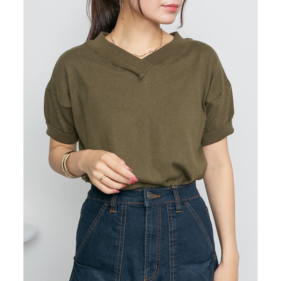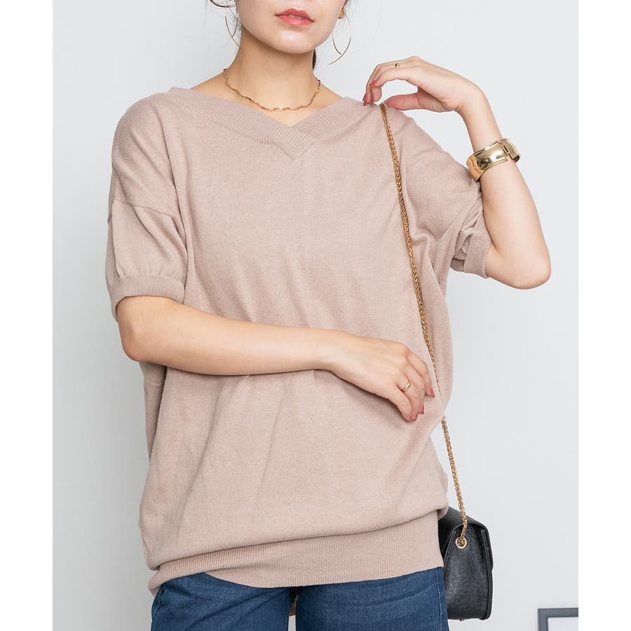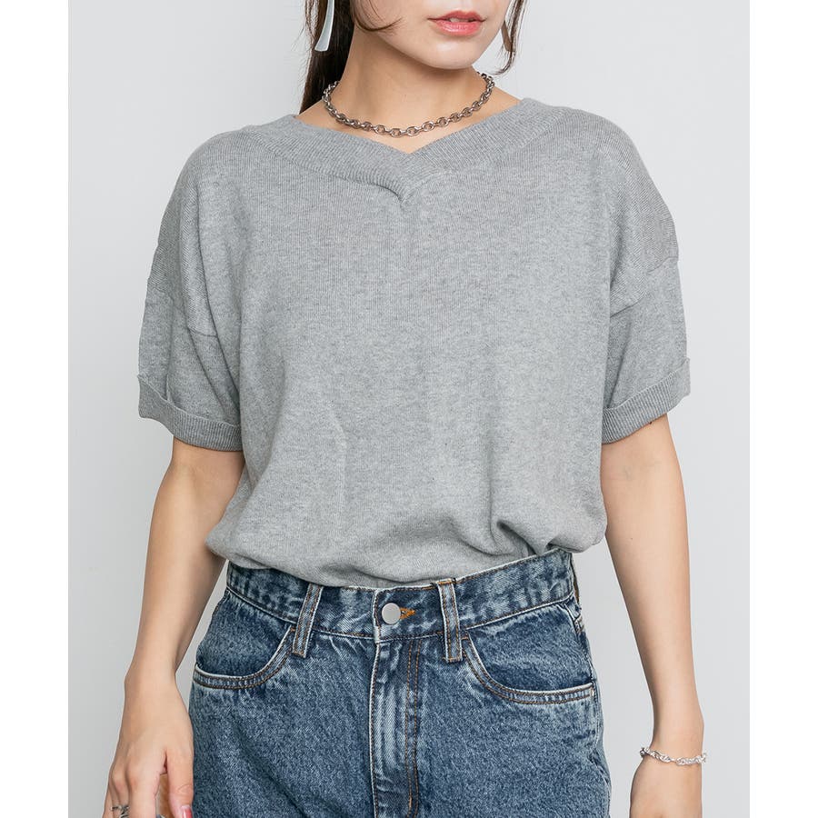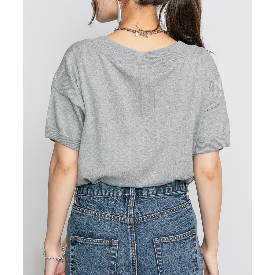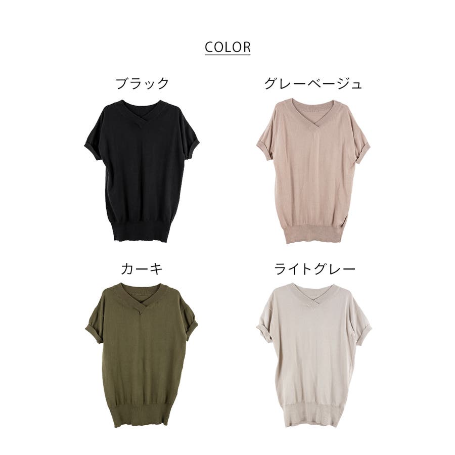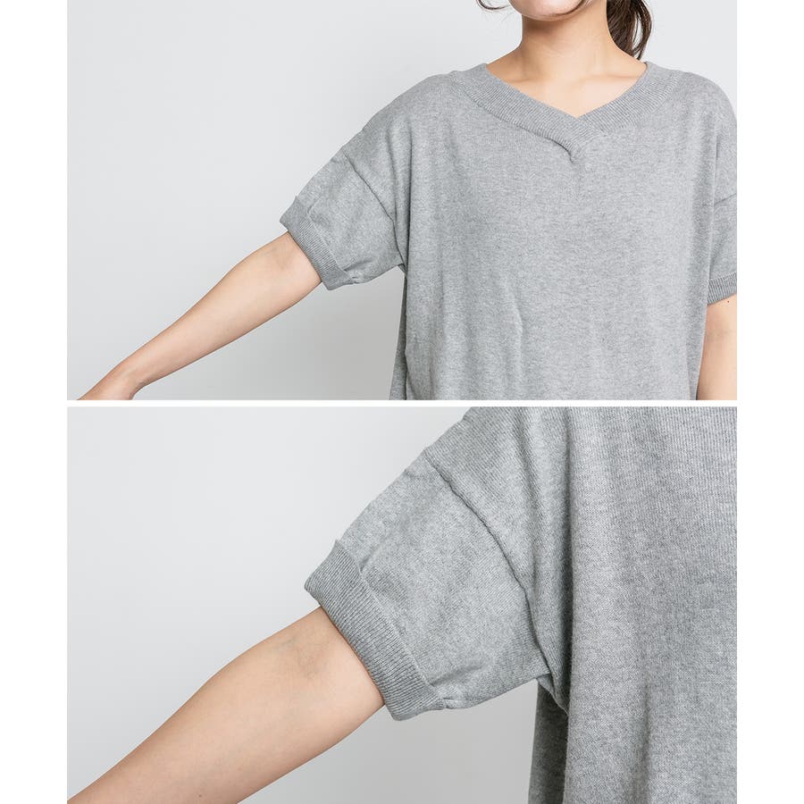 Vネックドルマン半袖綿ニット セーター カーディガン