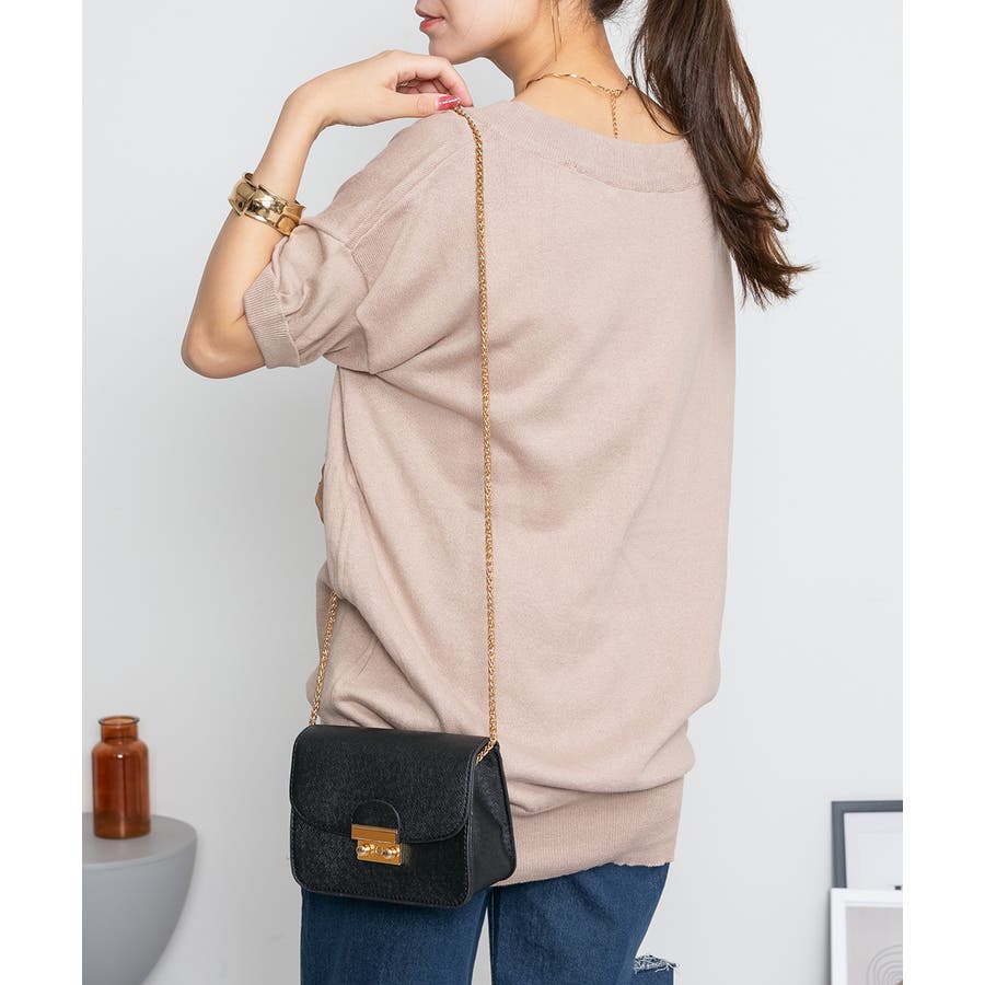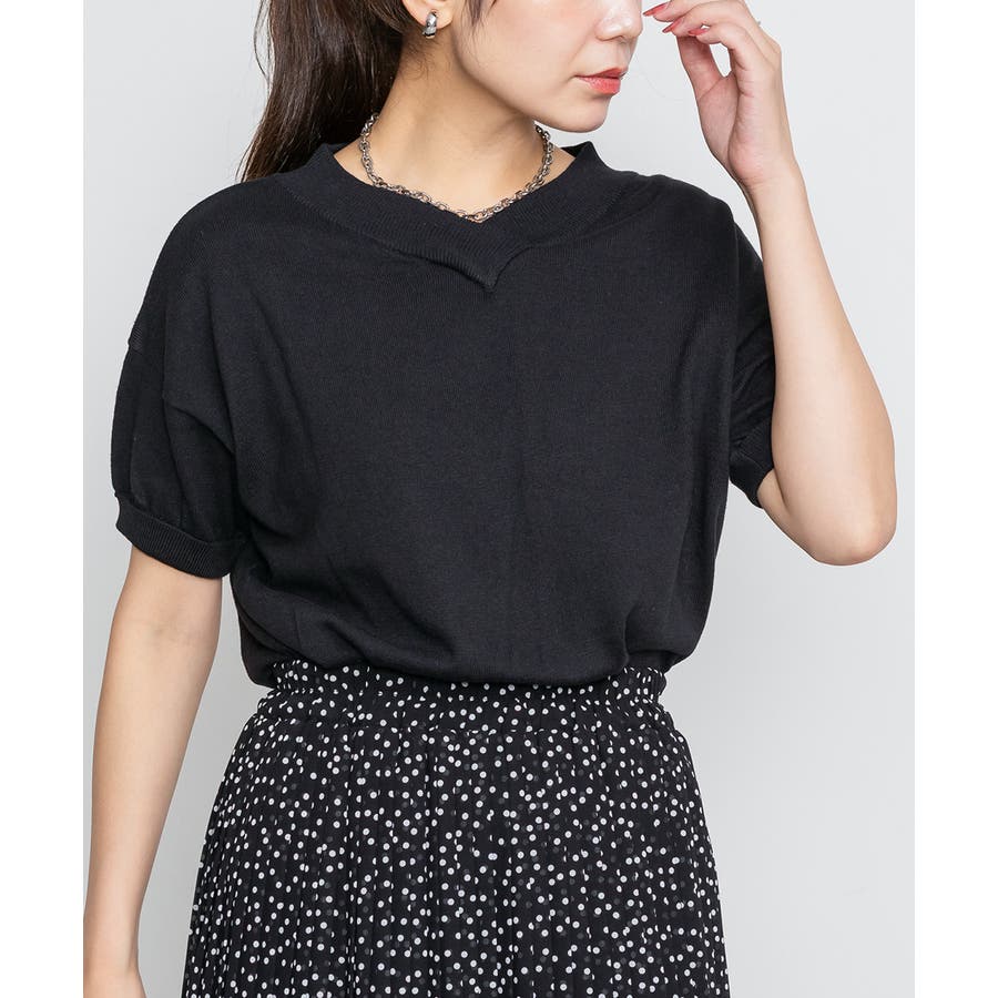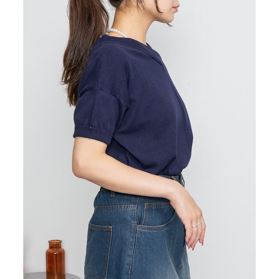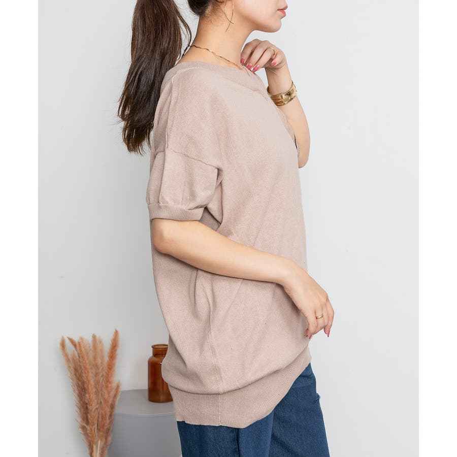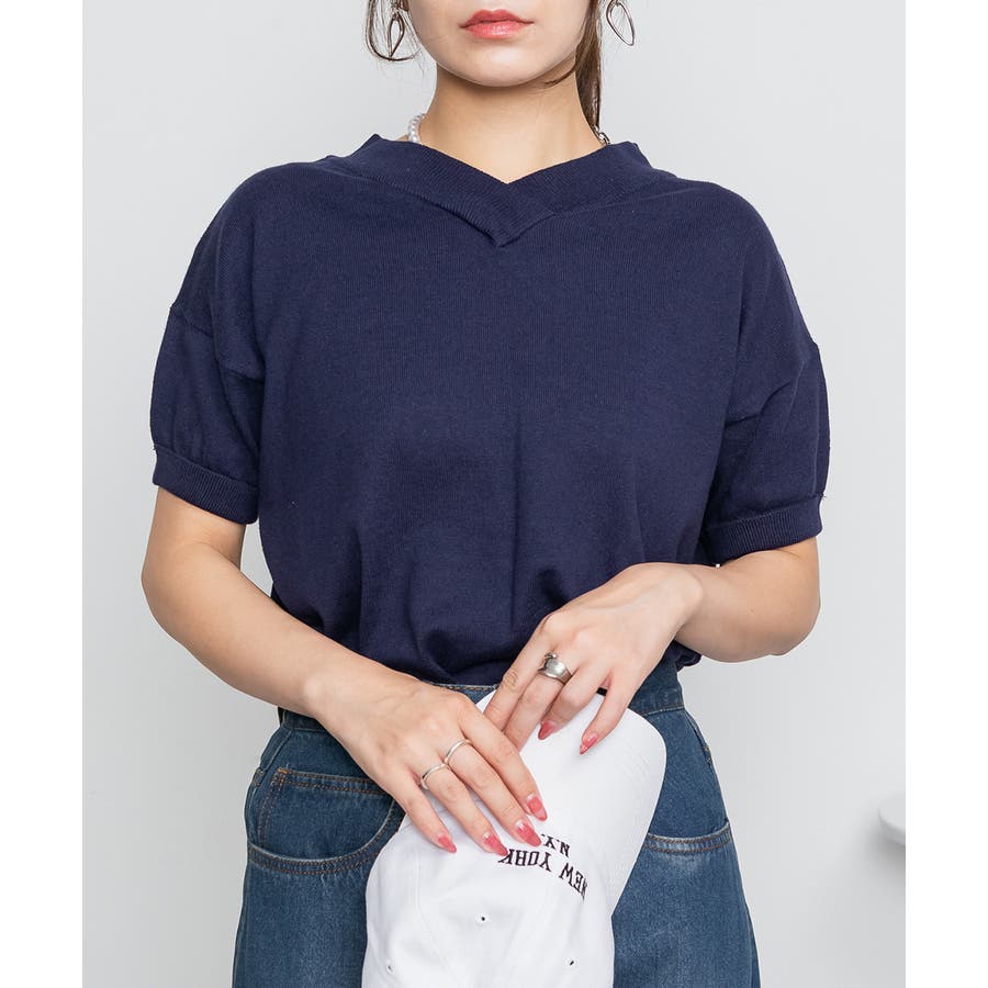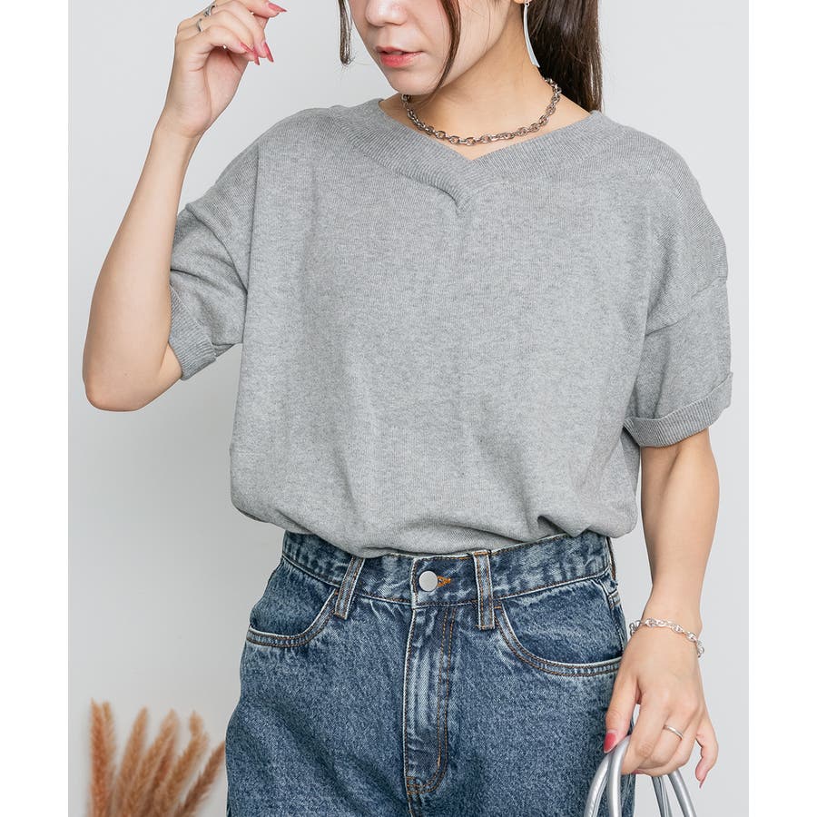 Vネックドルマン半袖綿ニット セーター カーディガン