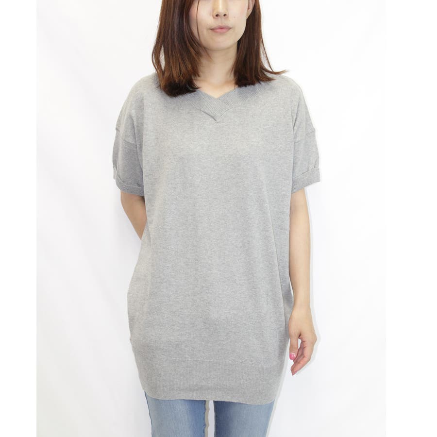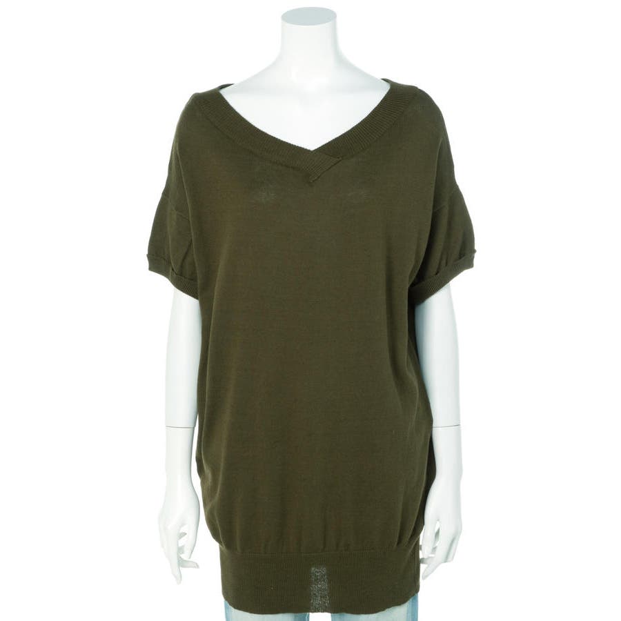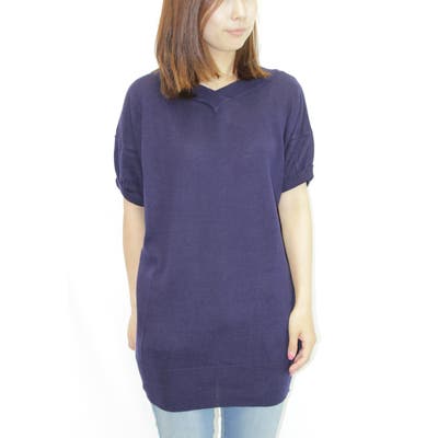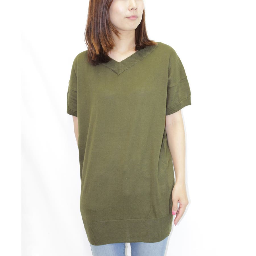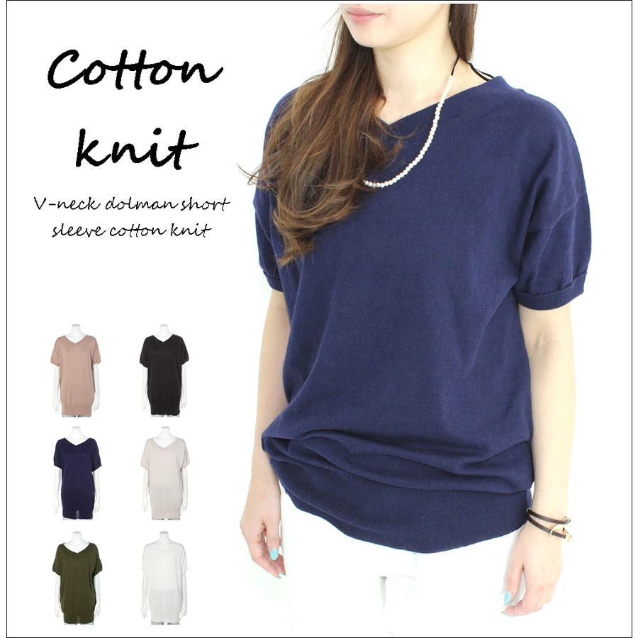 Vネックドルマン半袖綿ニット セーター カーディガン