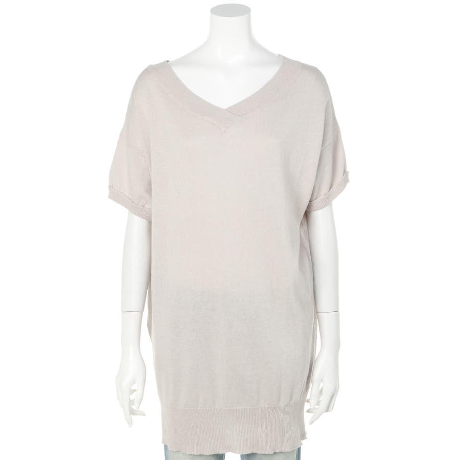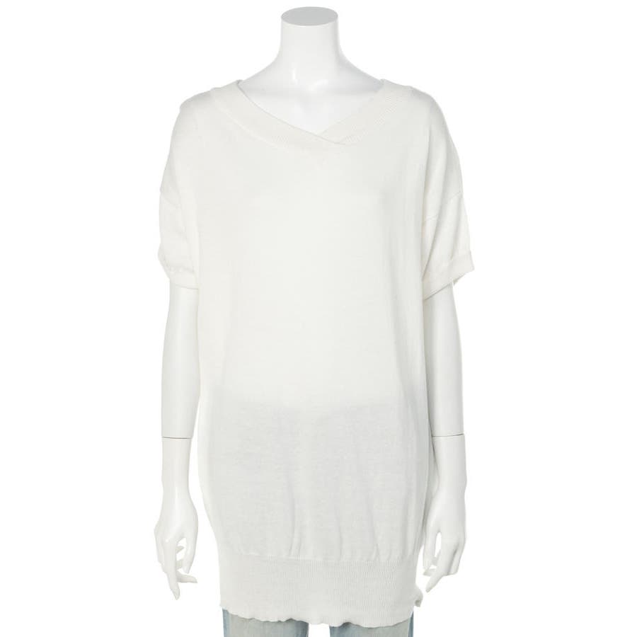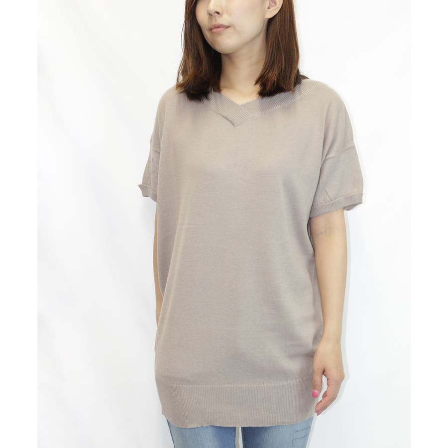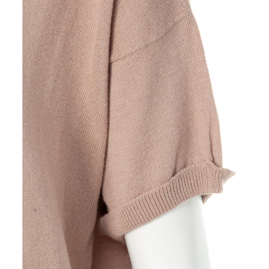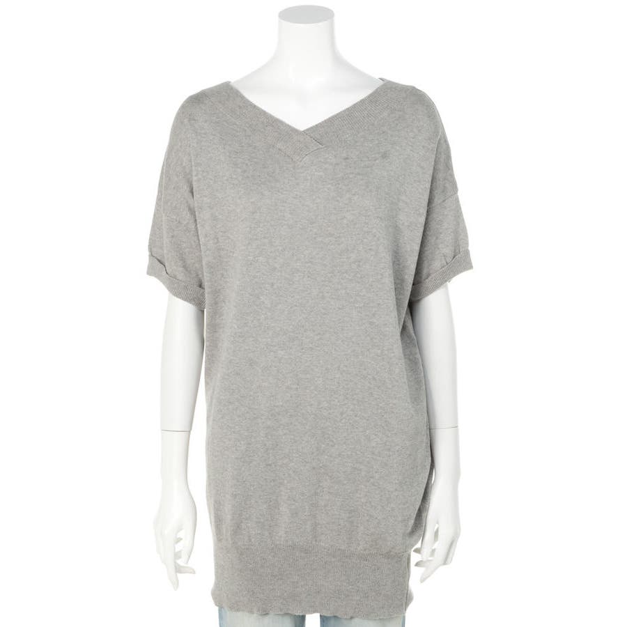 Vネックドルマン半袖綿ニット セーター カーディガン
