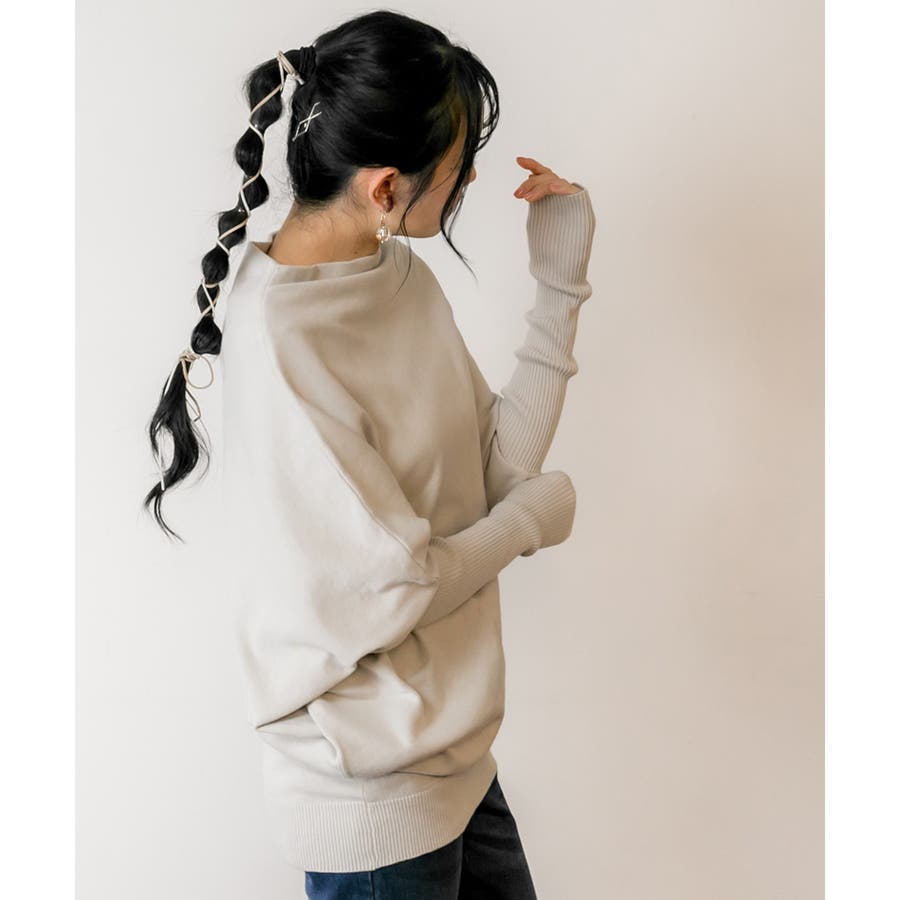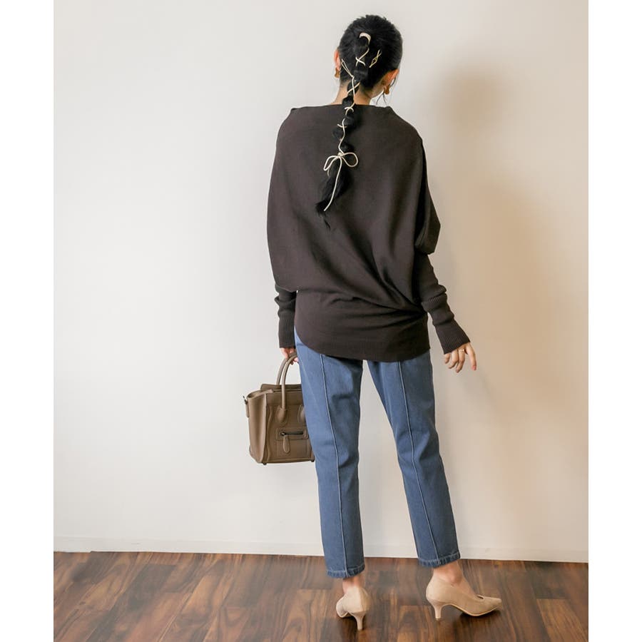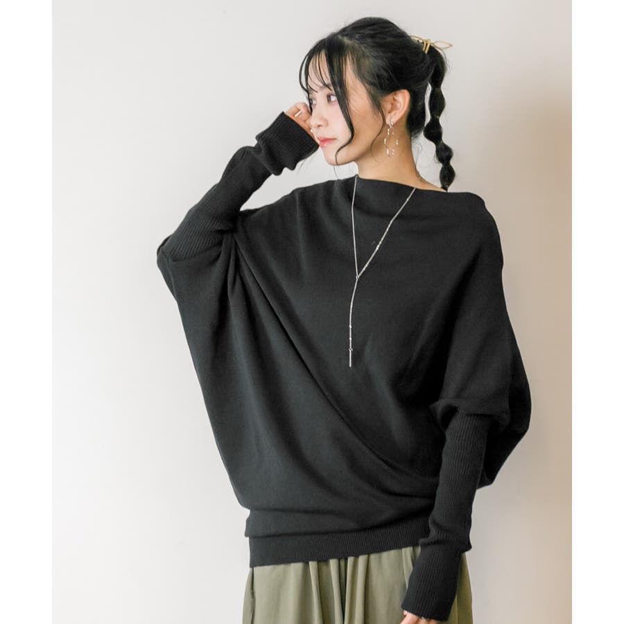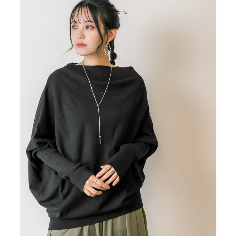 女性らしさを際立てるネックラインピタッと首にそうタートルではなく、ボートネックのようにゆるっとカーブを描く控えめな見せ加減。