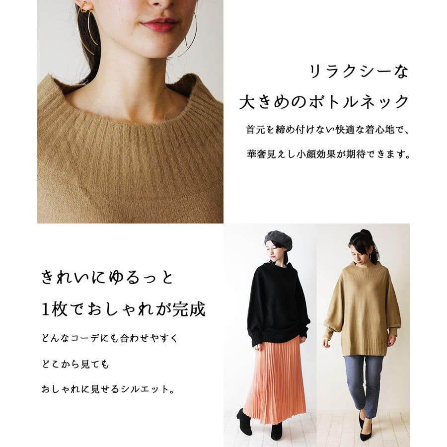リラクシーな大きめのボトルネック 首元を締め付けない快適な着心地で、華奢見えし小顔効果が期待できます。