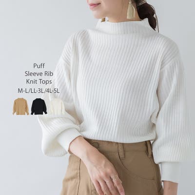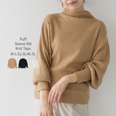 袖ポワンリブニットトップス