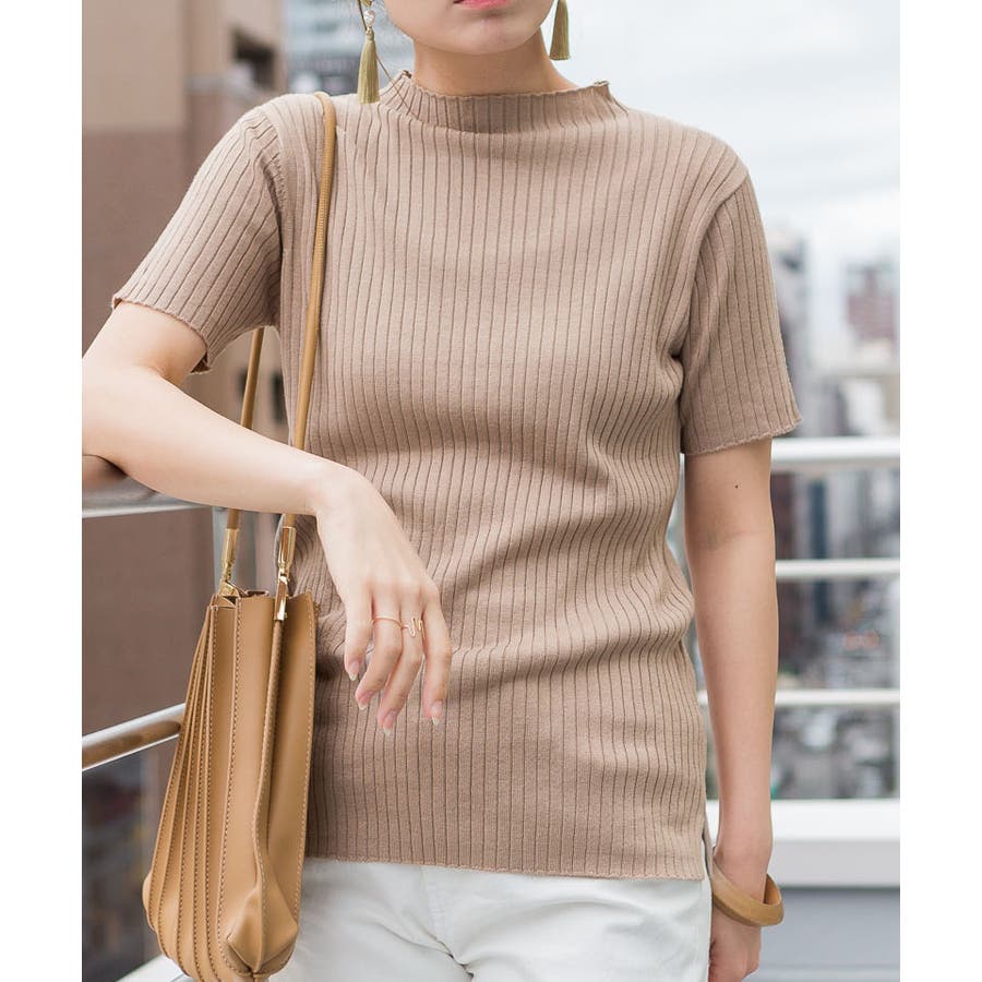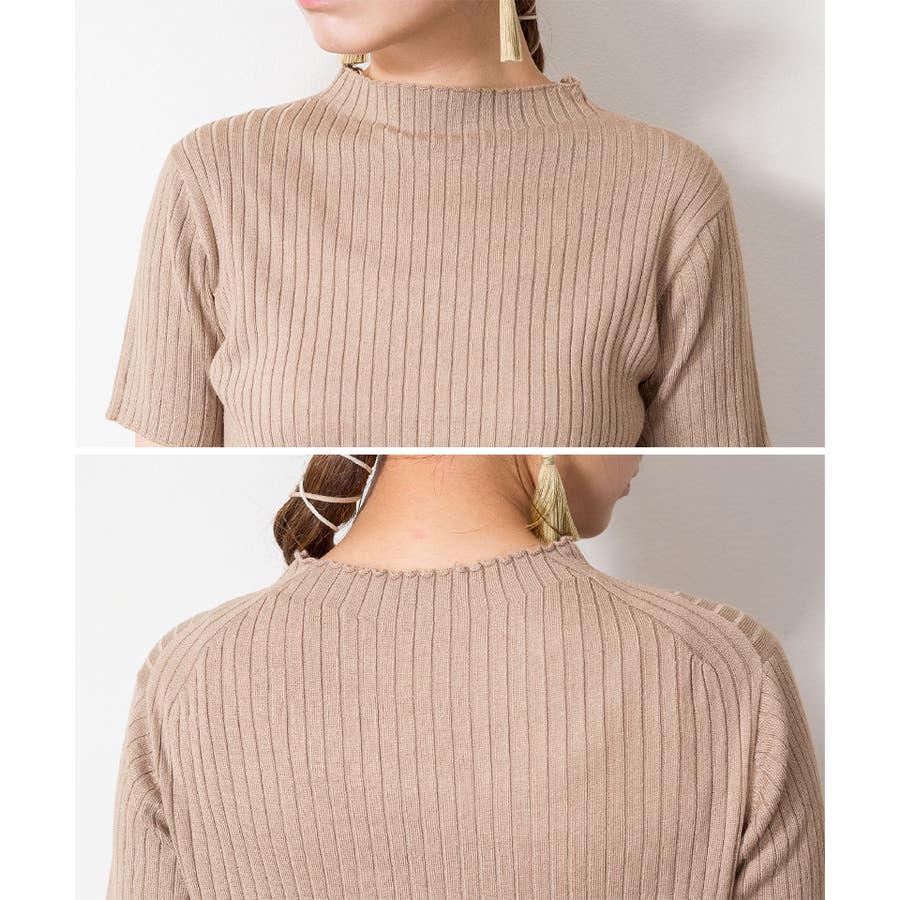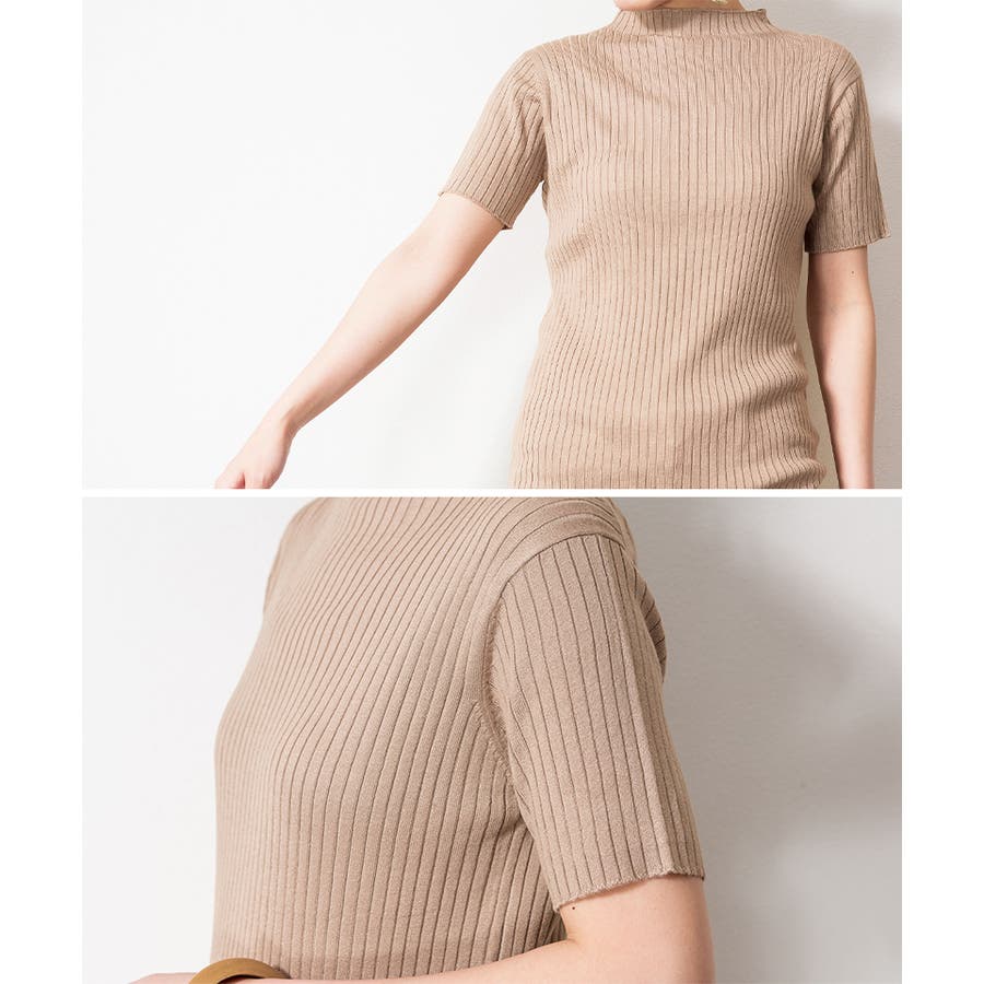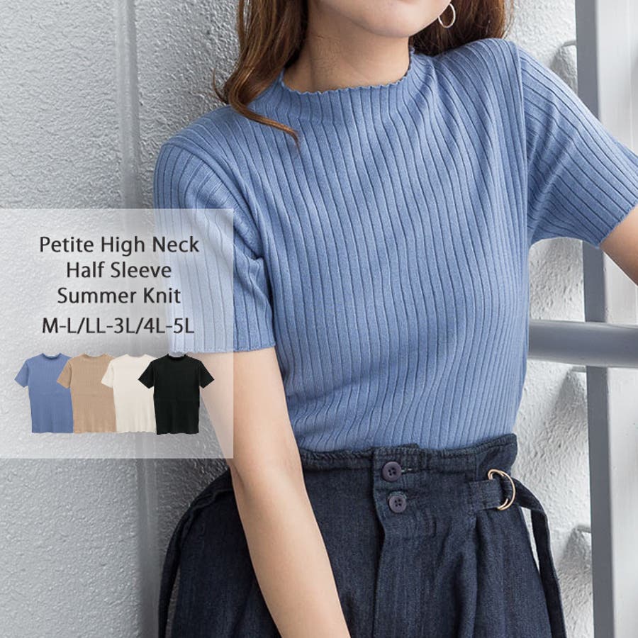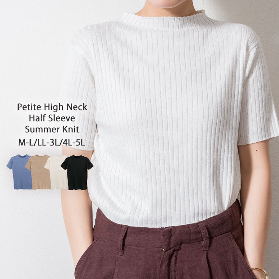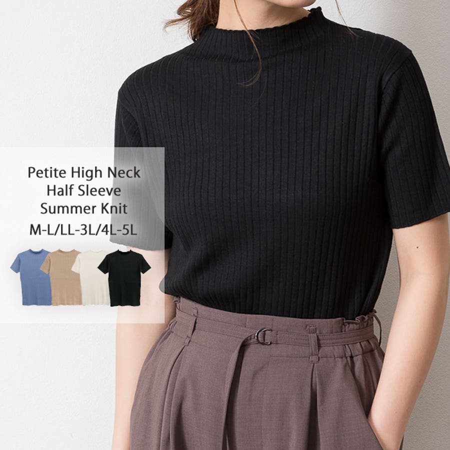 プチハイネックハーフスリーブサマーニット