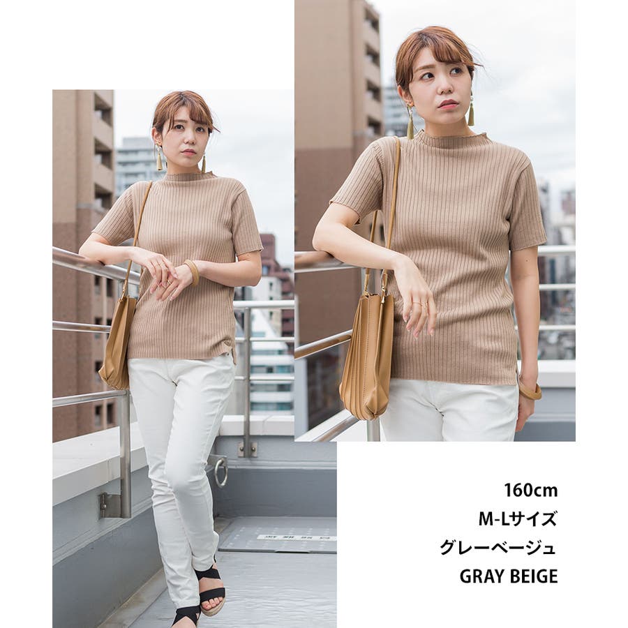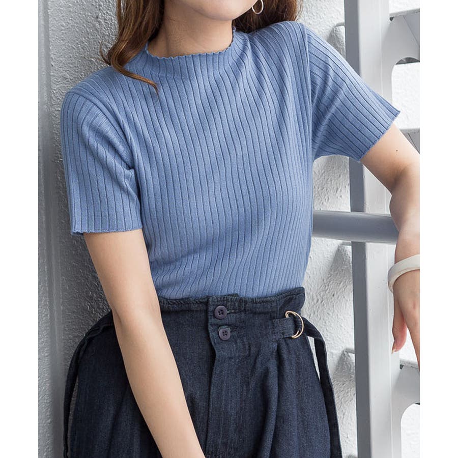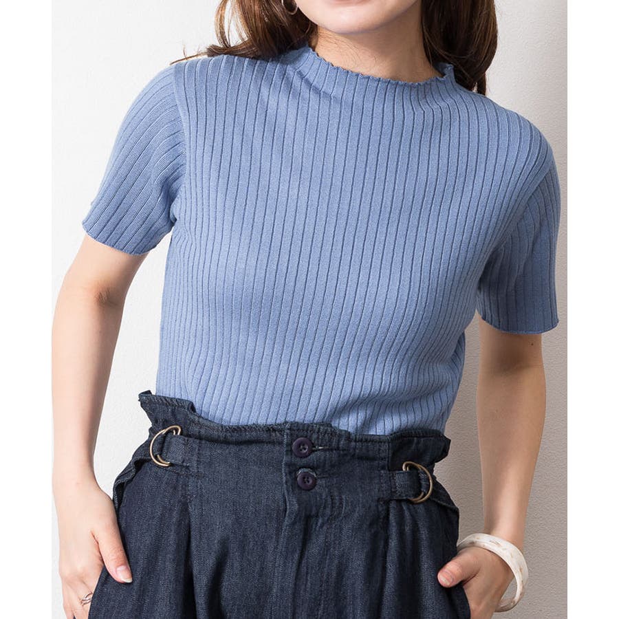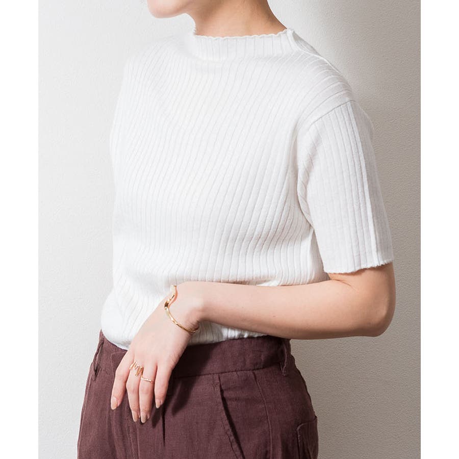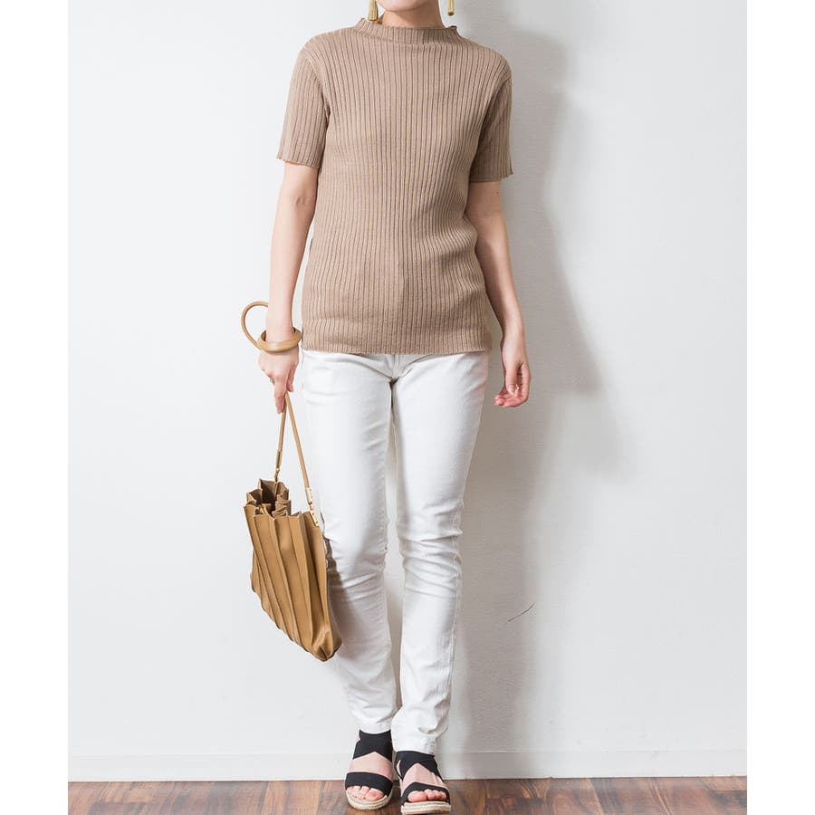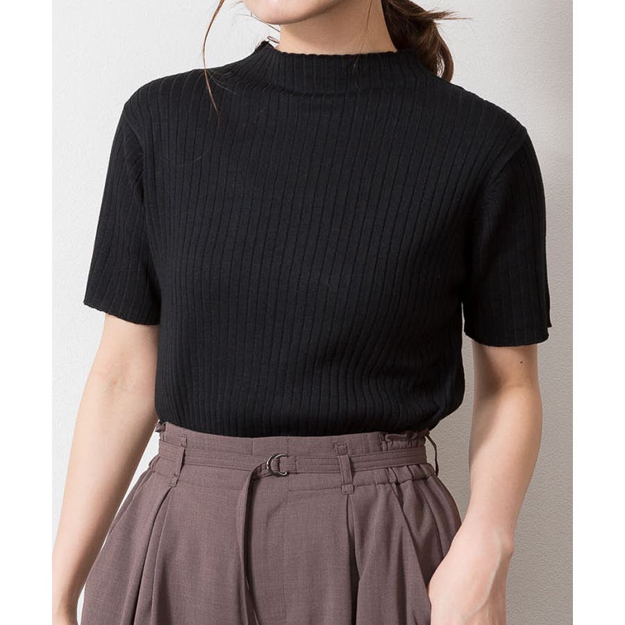プチハイネックハーフスリーブサマーニット