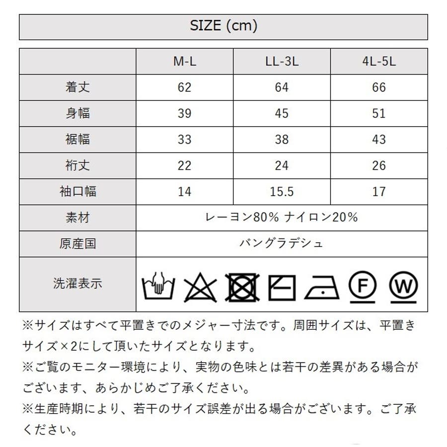 [4L-5Lサイズ]丈:66cm、身巾:51cm、裾巾:43cm、袖口巾:17cm