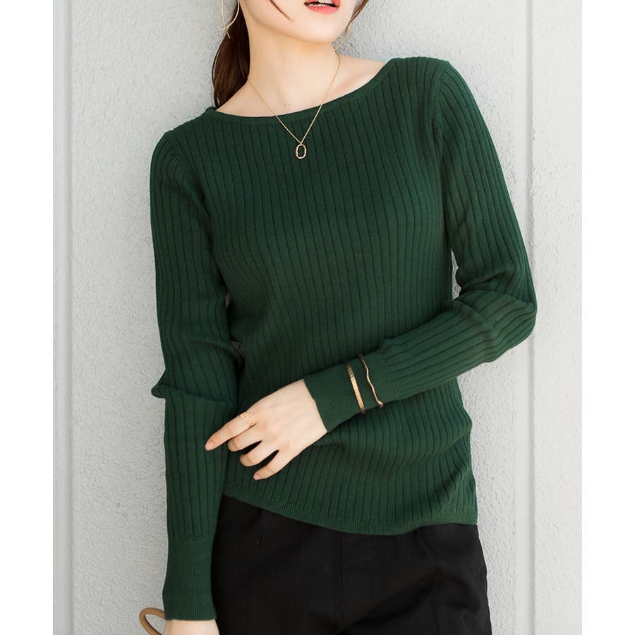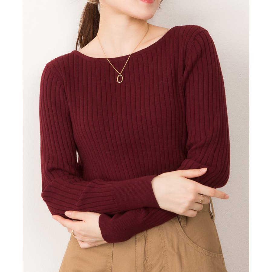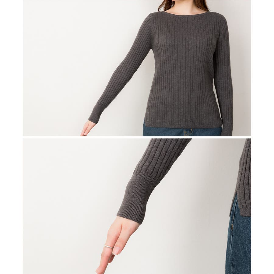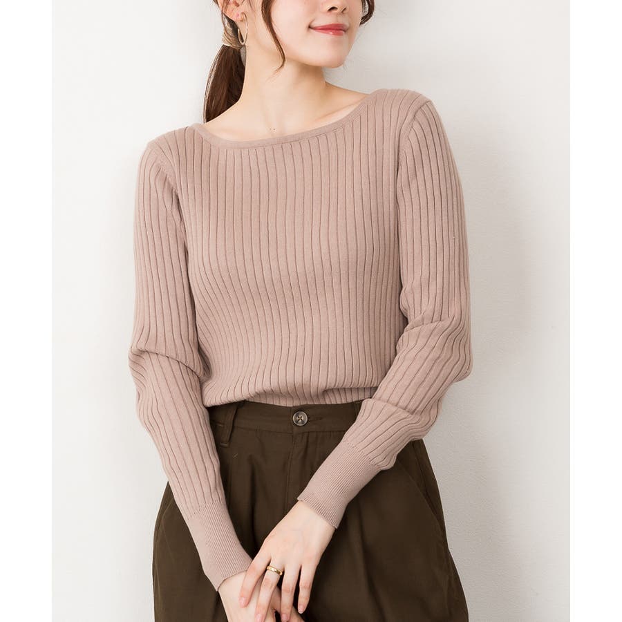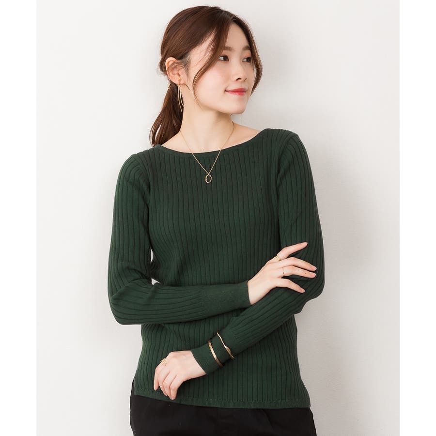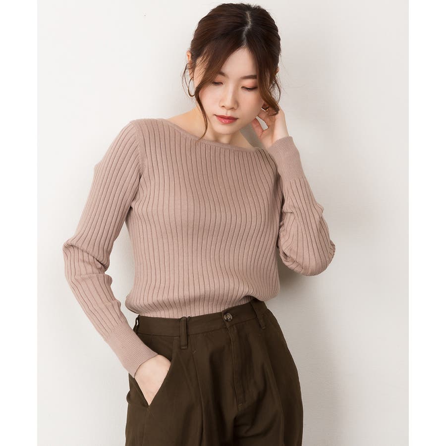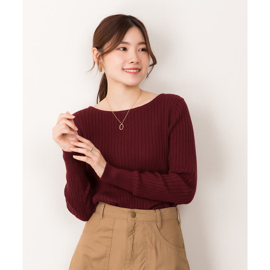 リブニットボートネックセーター