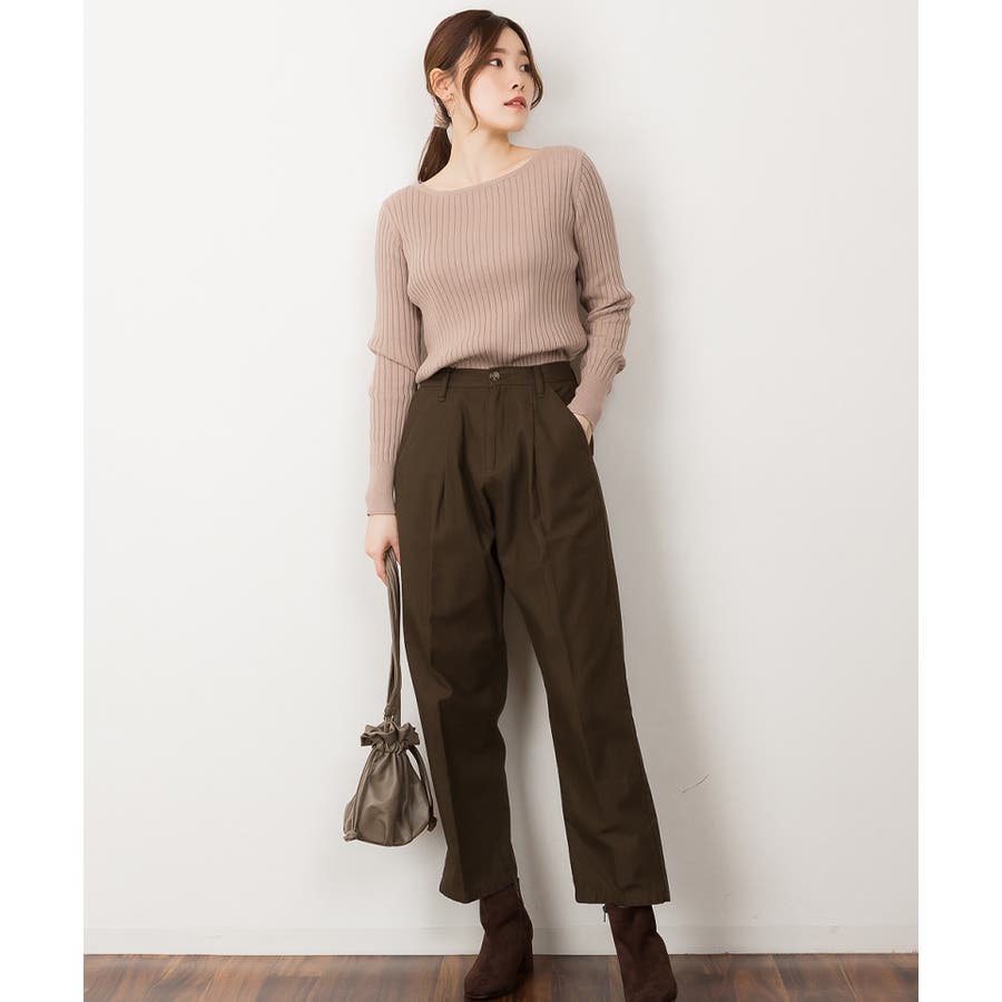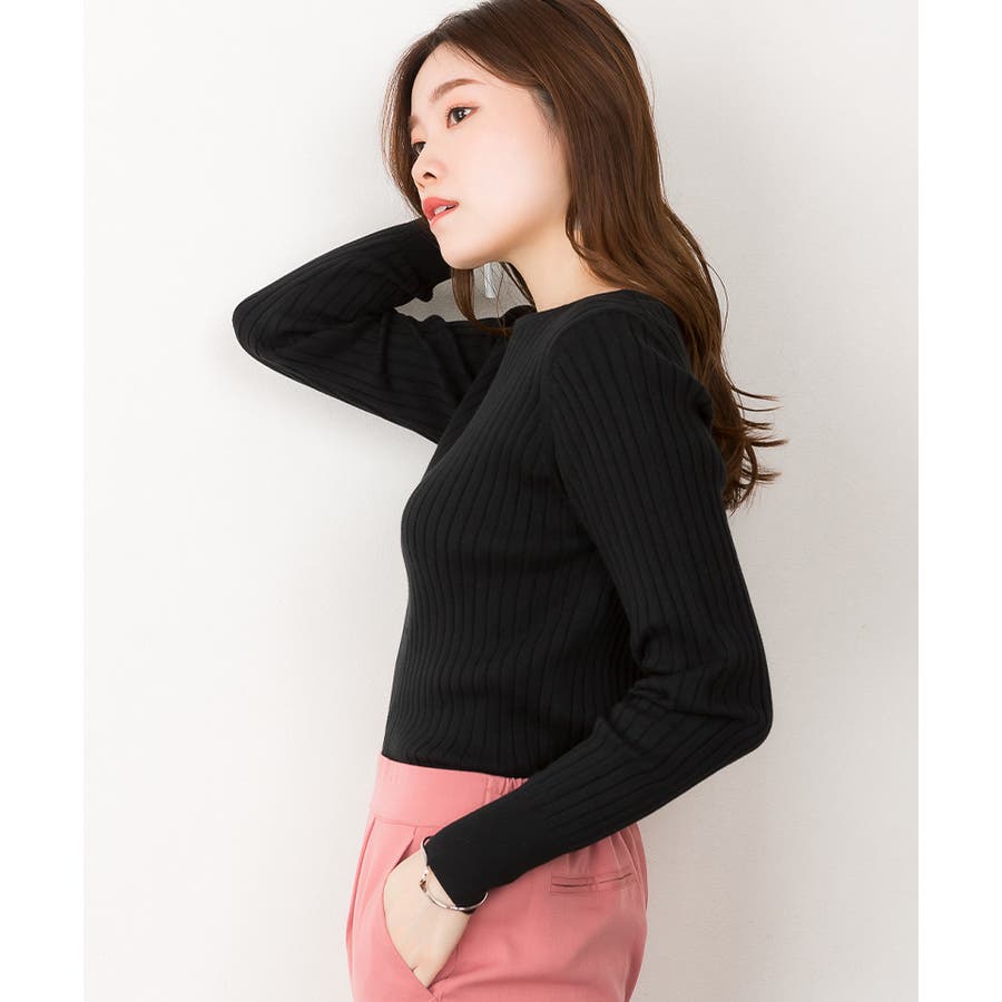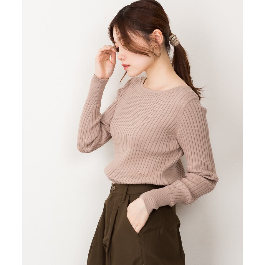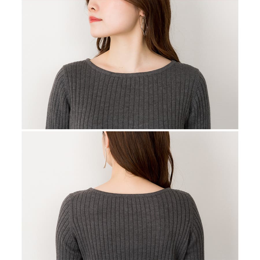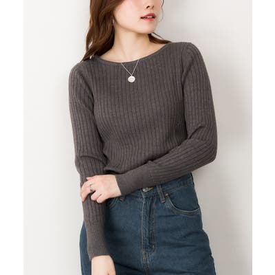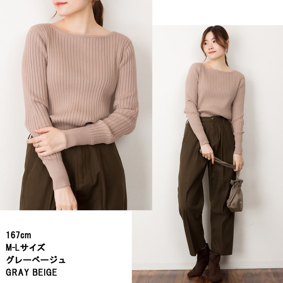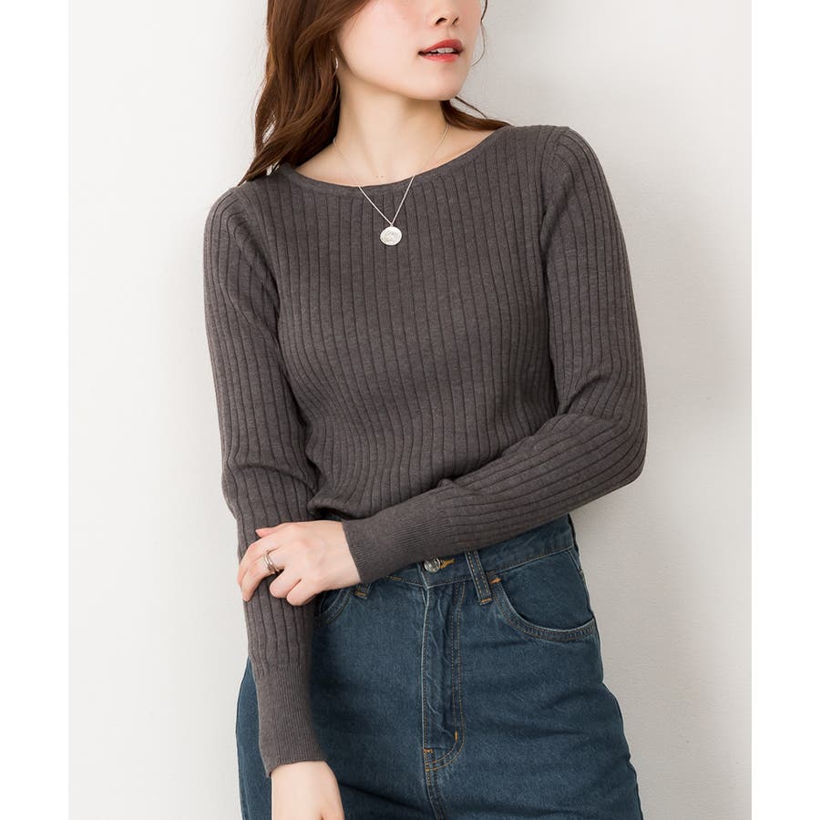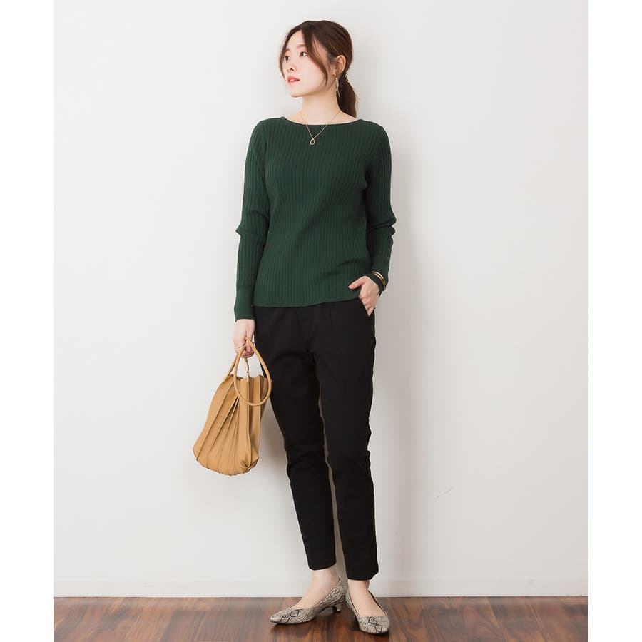 リブニットボートネックセーター