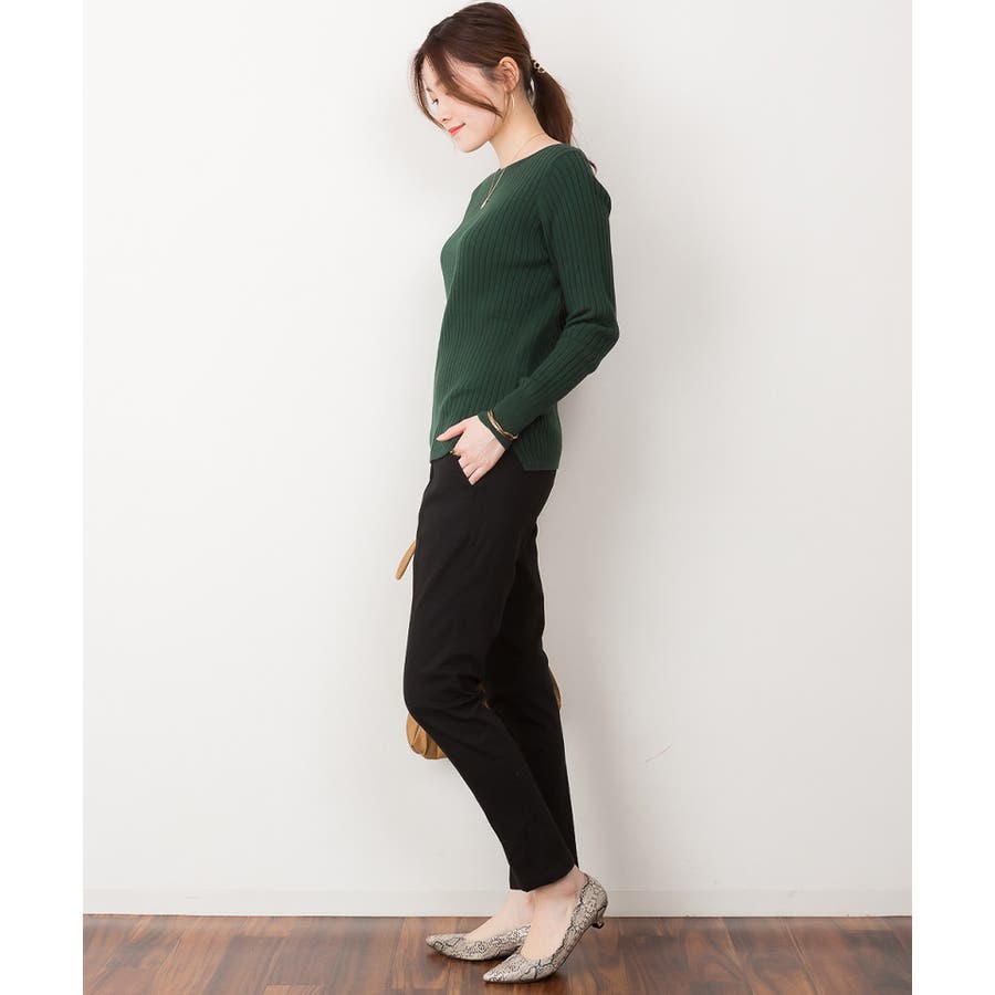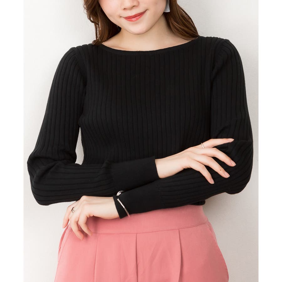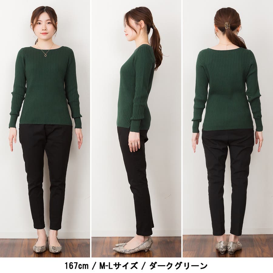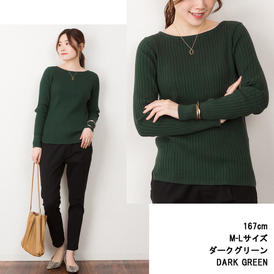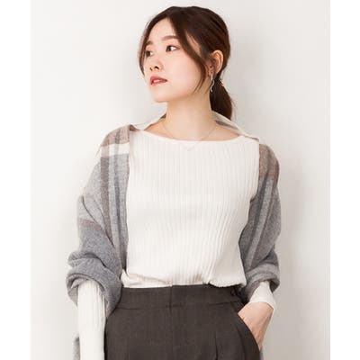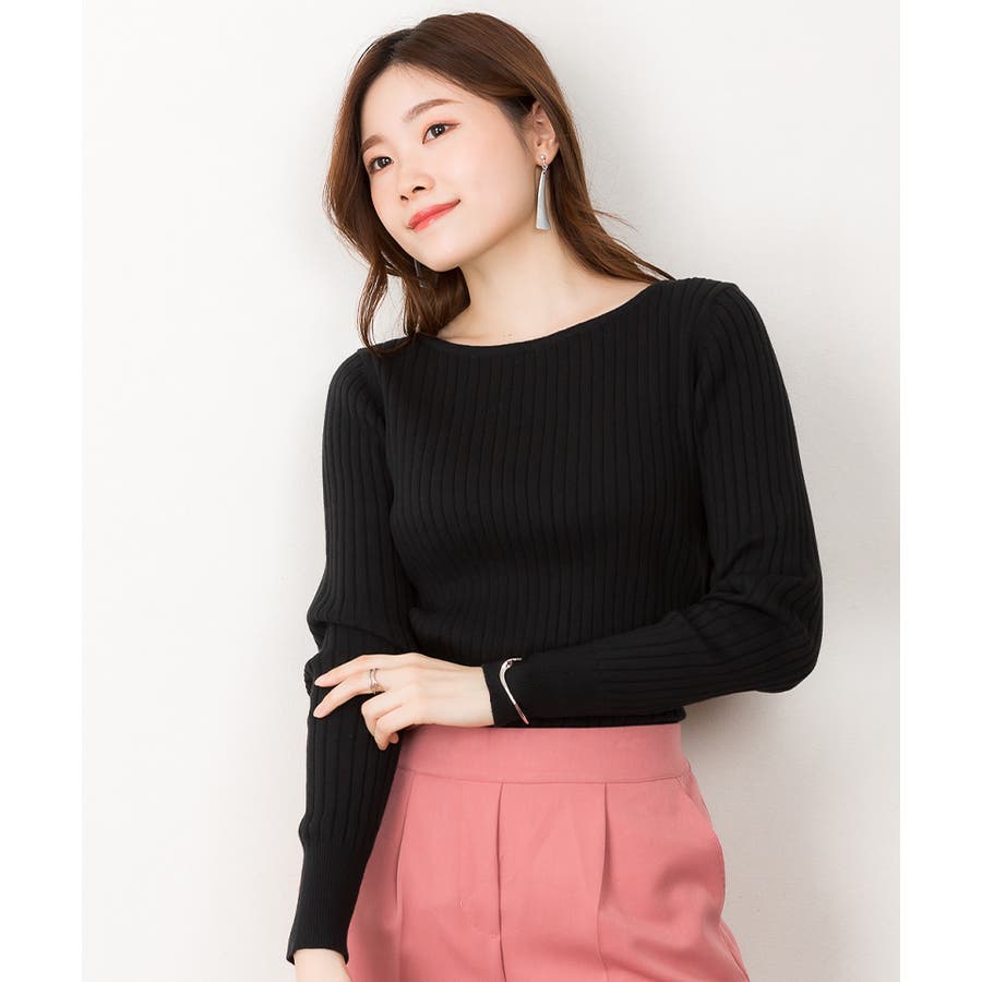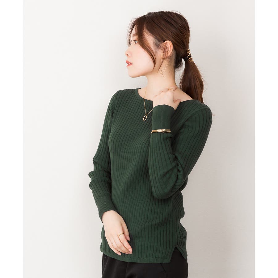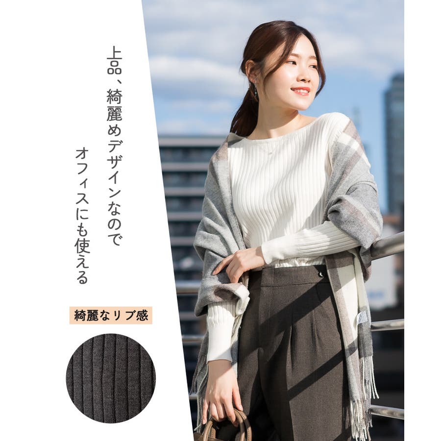 リブニットボートネックセーター