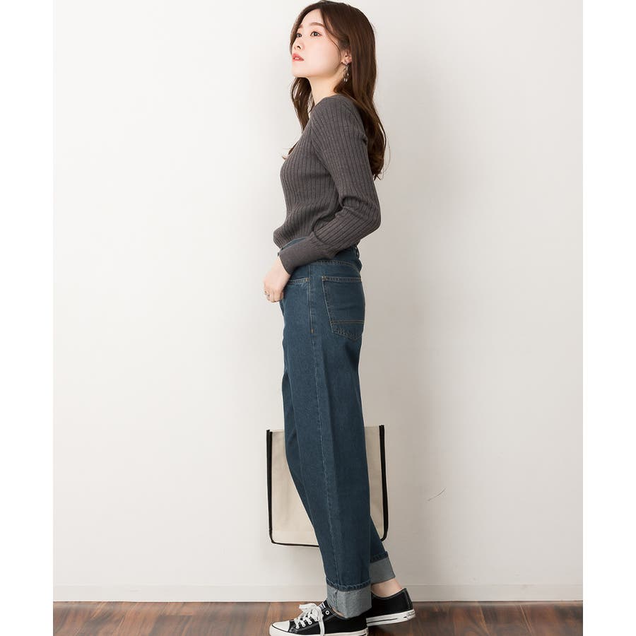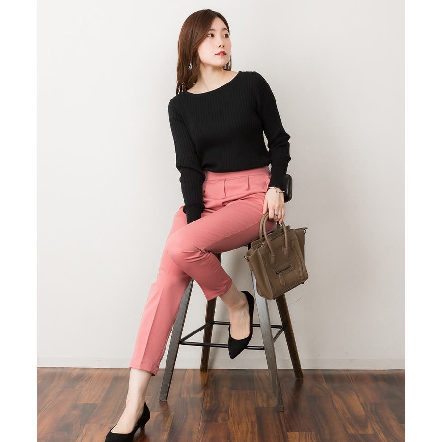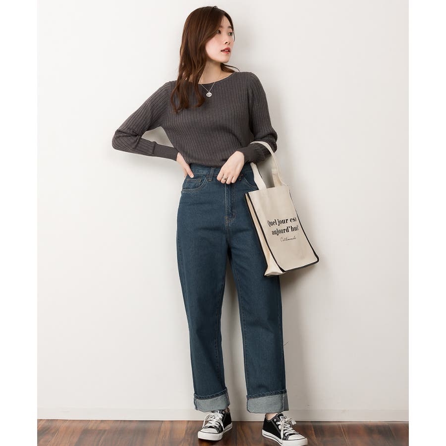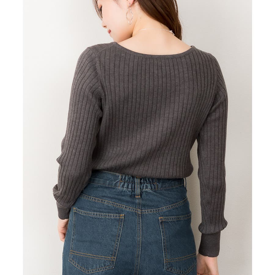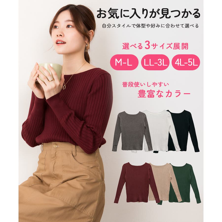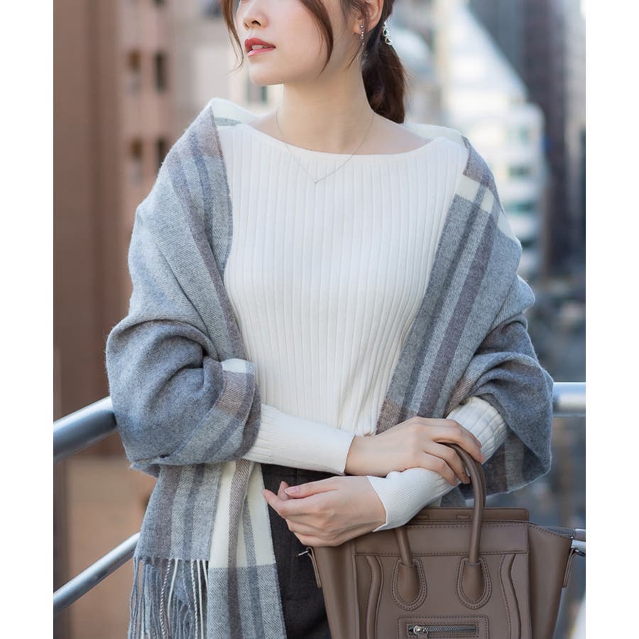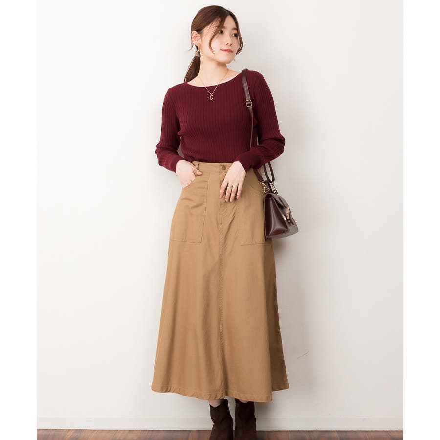 リブニットボートネックセーター