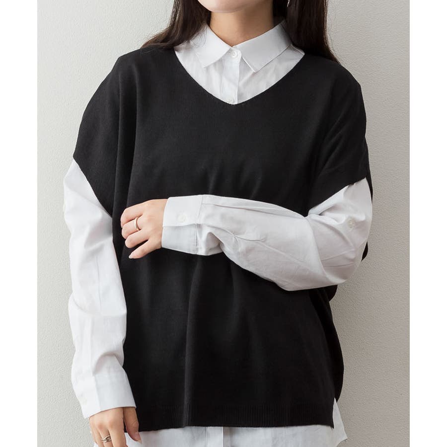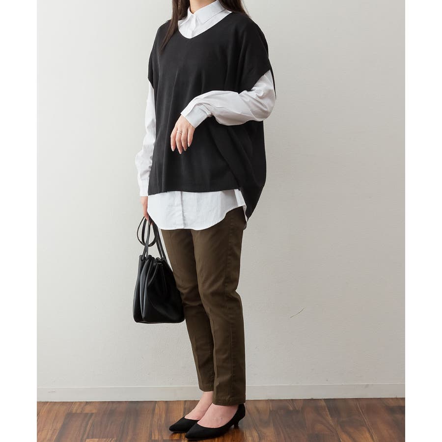 カットソーやブラウスに重ねたレイヤードスタイルもおすすめです。