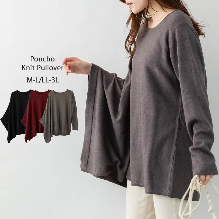ポンチョ風ニットプルオーバー