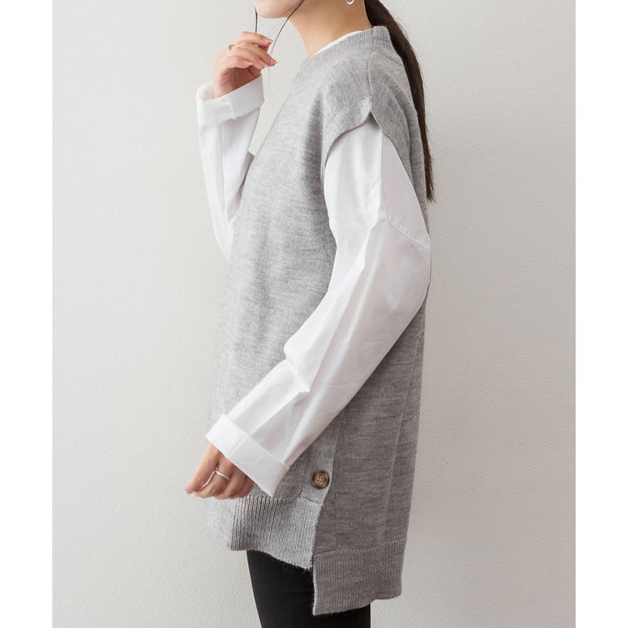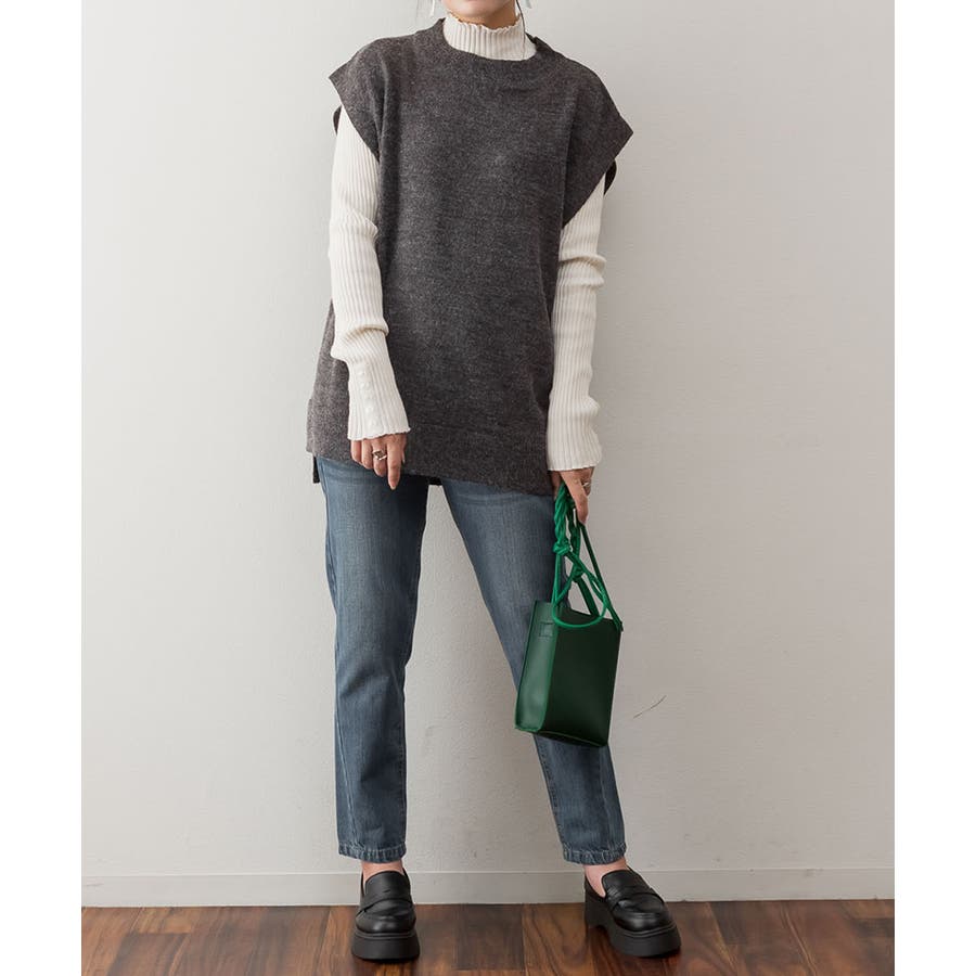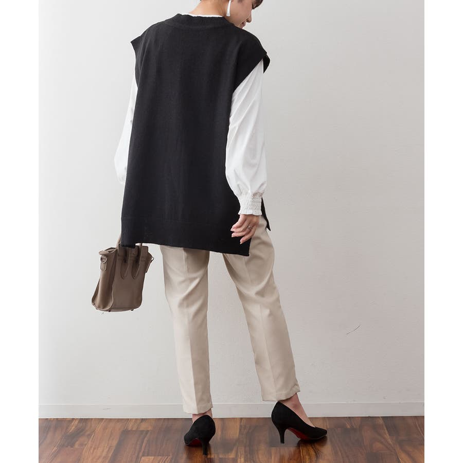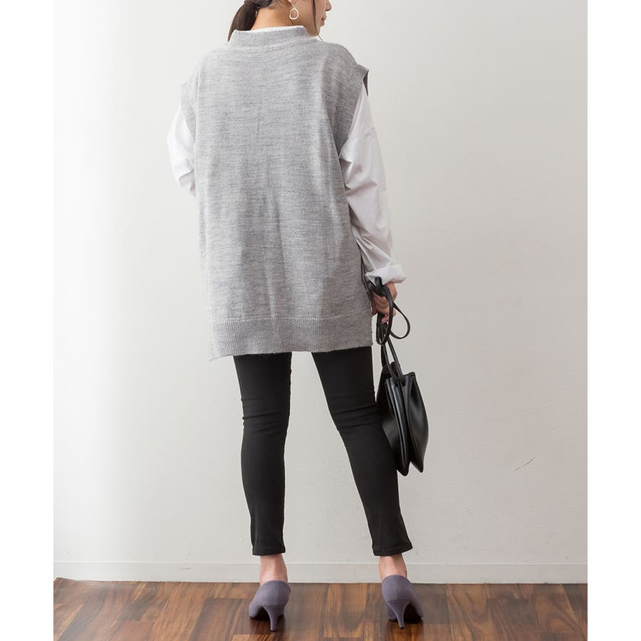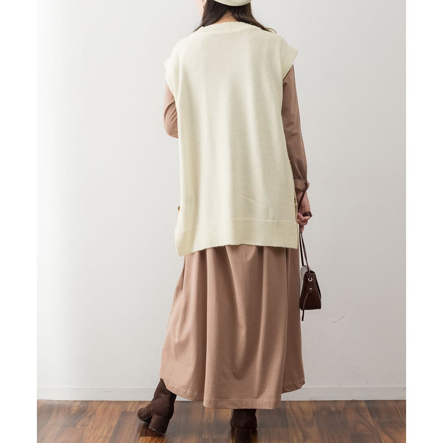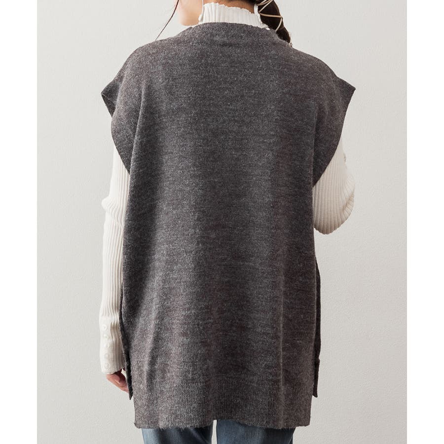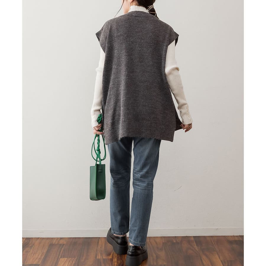 やや長めの着丈で仕上げたニットベスト。