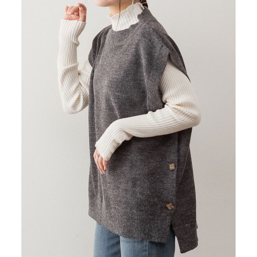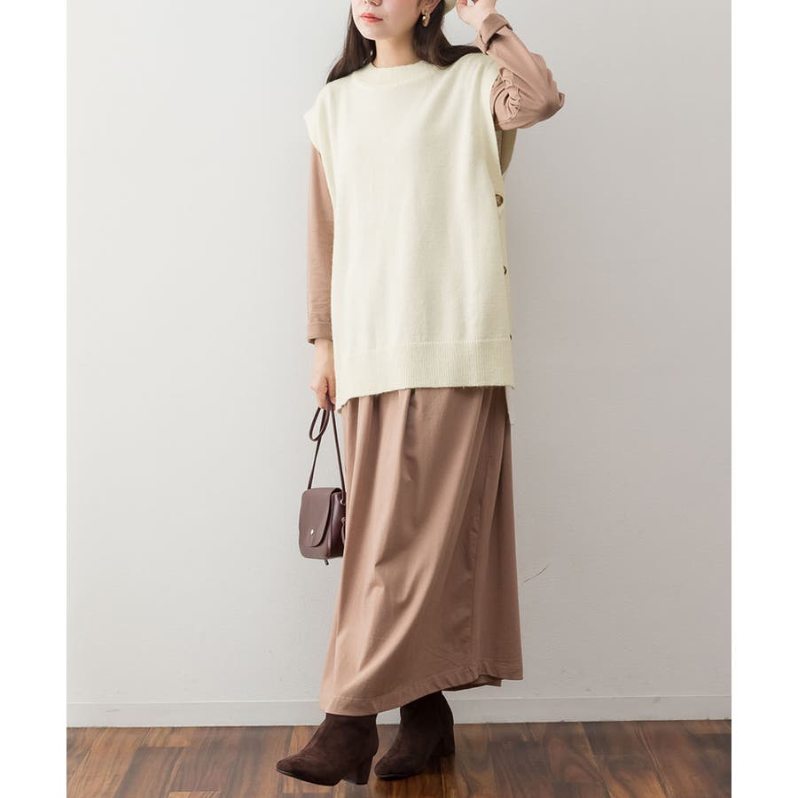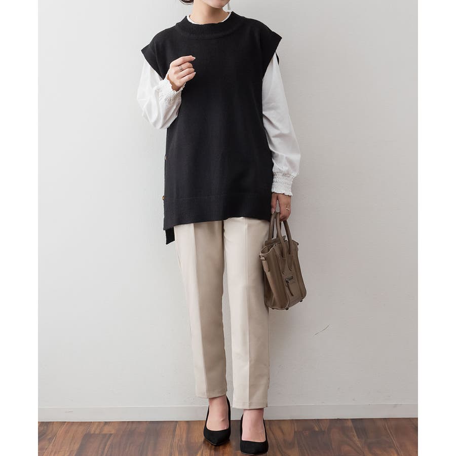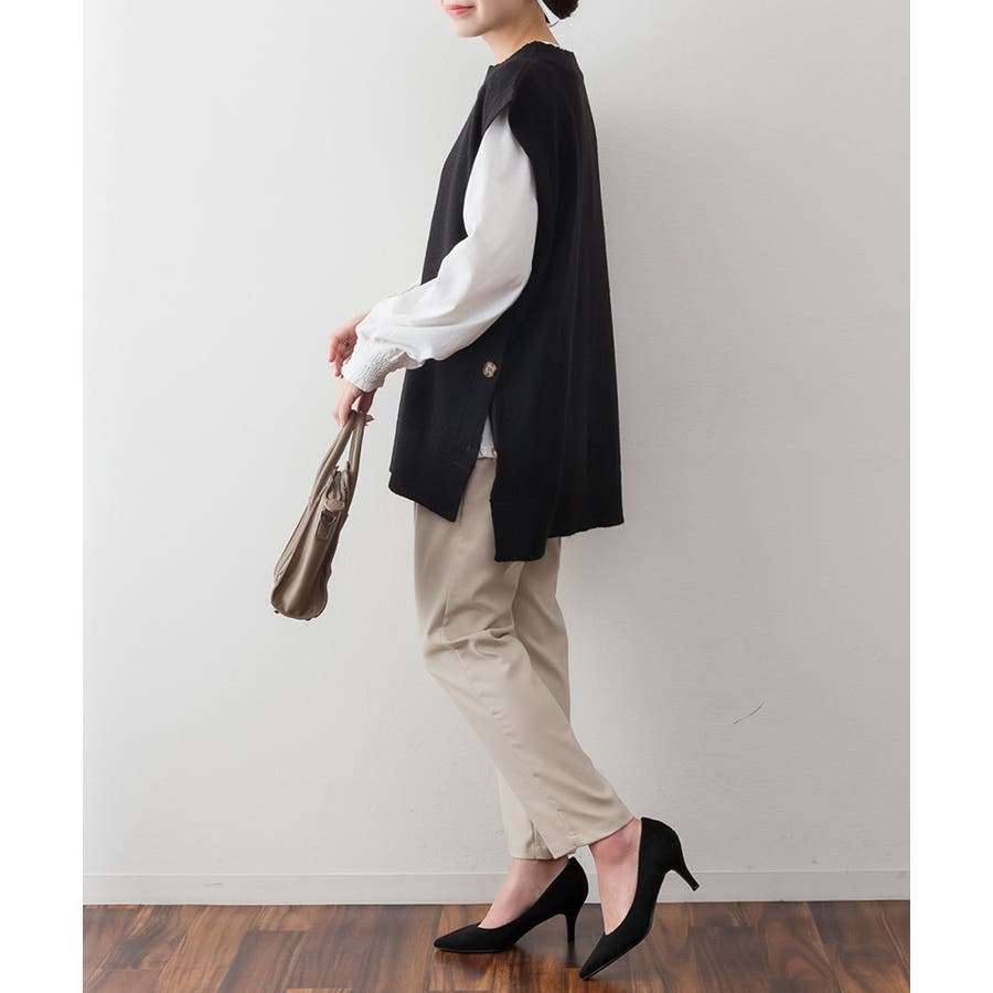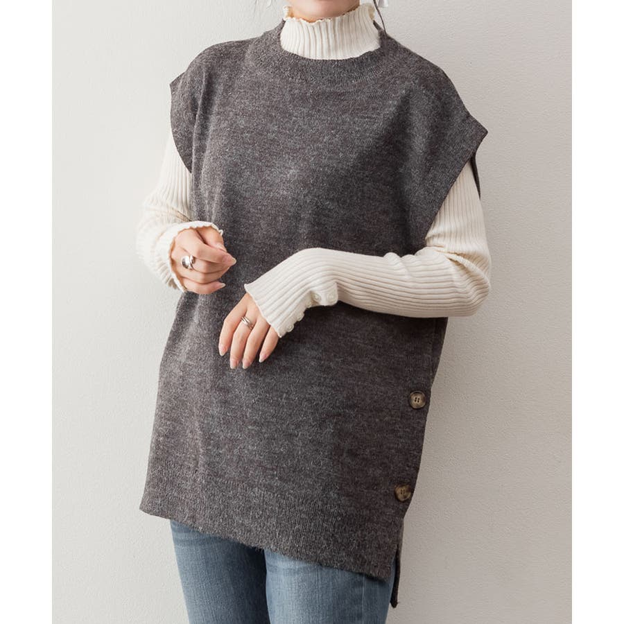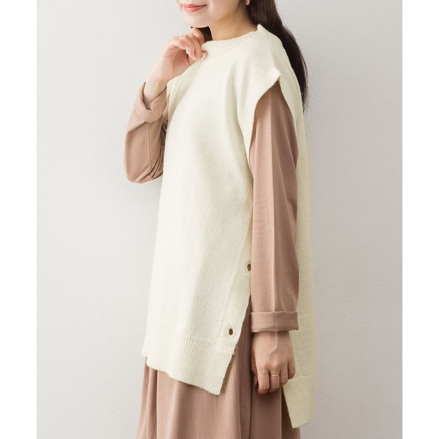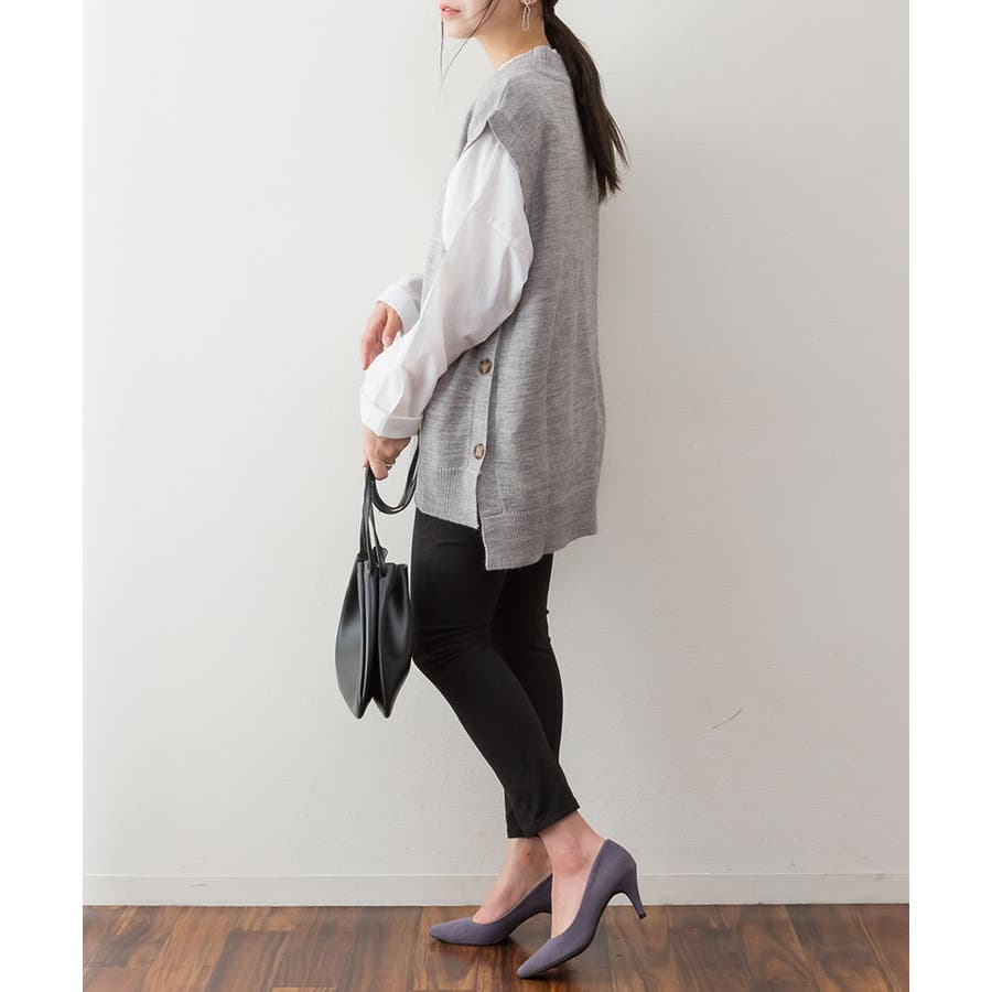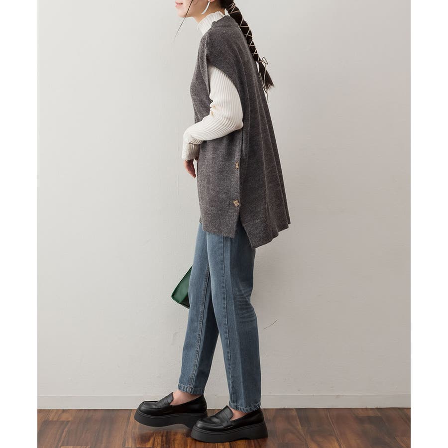 やや長めの着丈で仕上げたニットベスト。