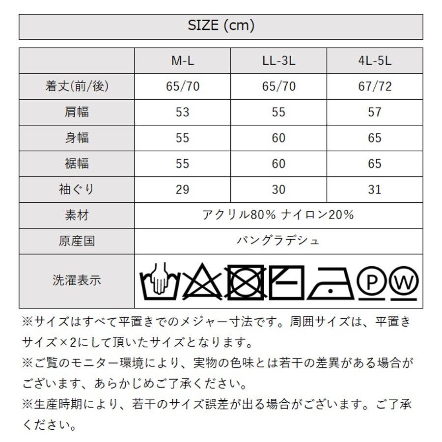 [LL-3Lサイズ]着丈(前/後):65cm/70cm、肩幅:55cm、身幅:60cm