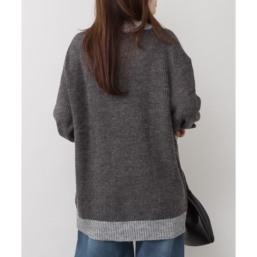 ディープVネックセーター、キーネックデザインにより鎖骨見せが魅力的。