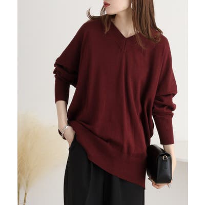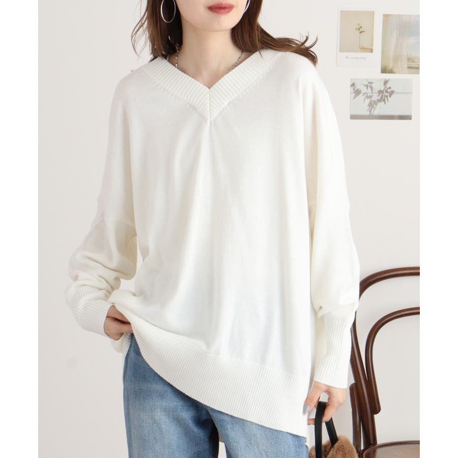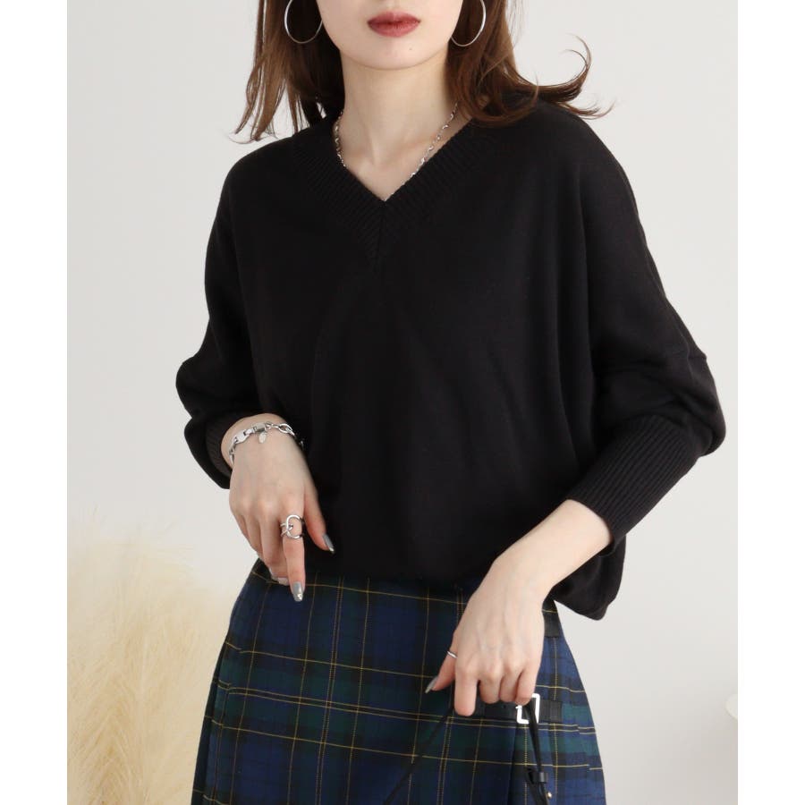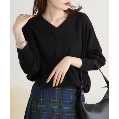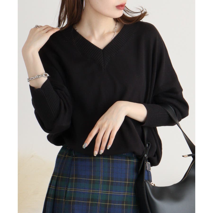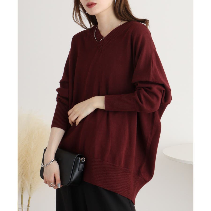 Vネックデザインとリブディテールが印象的なドルマンセーター。