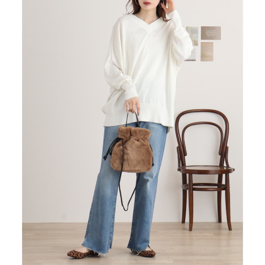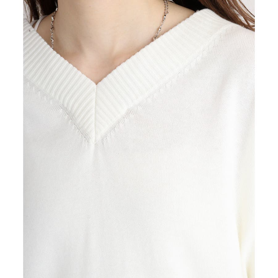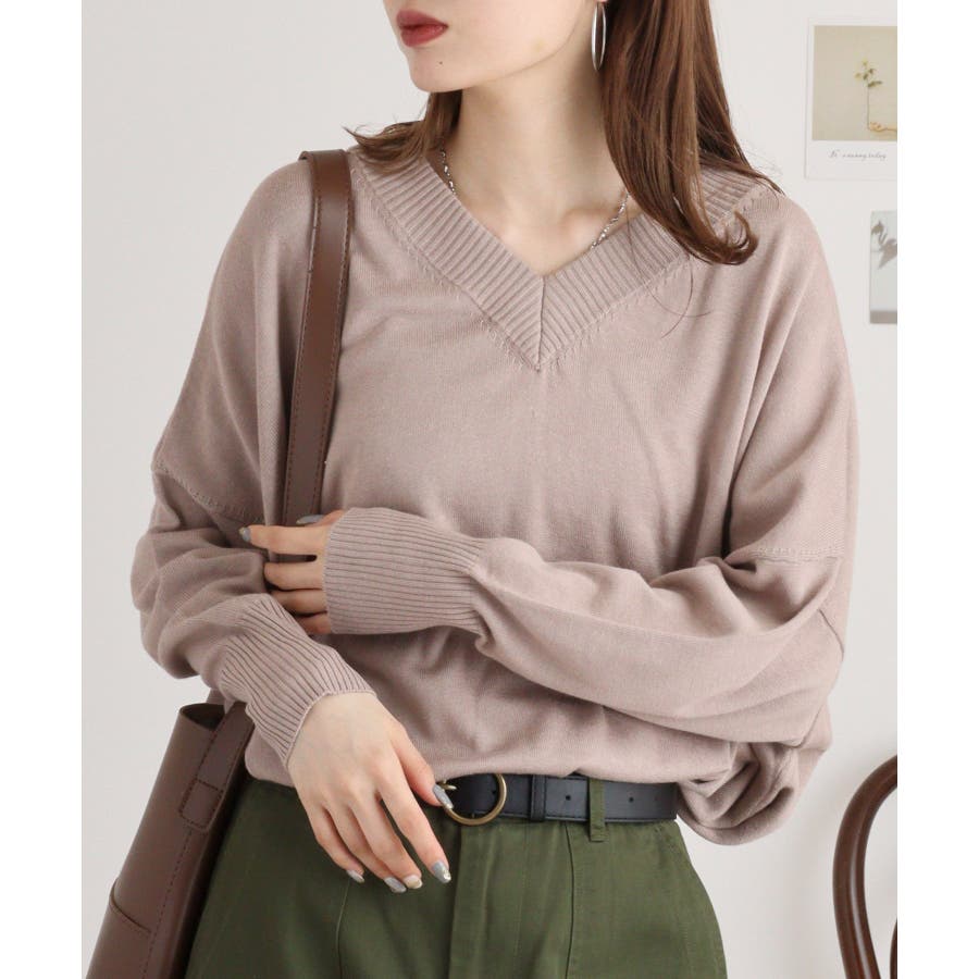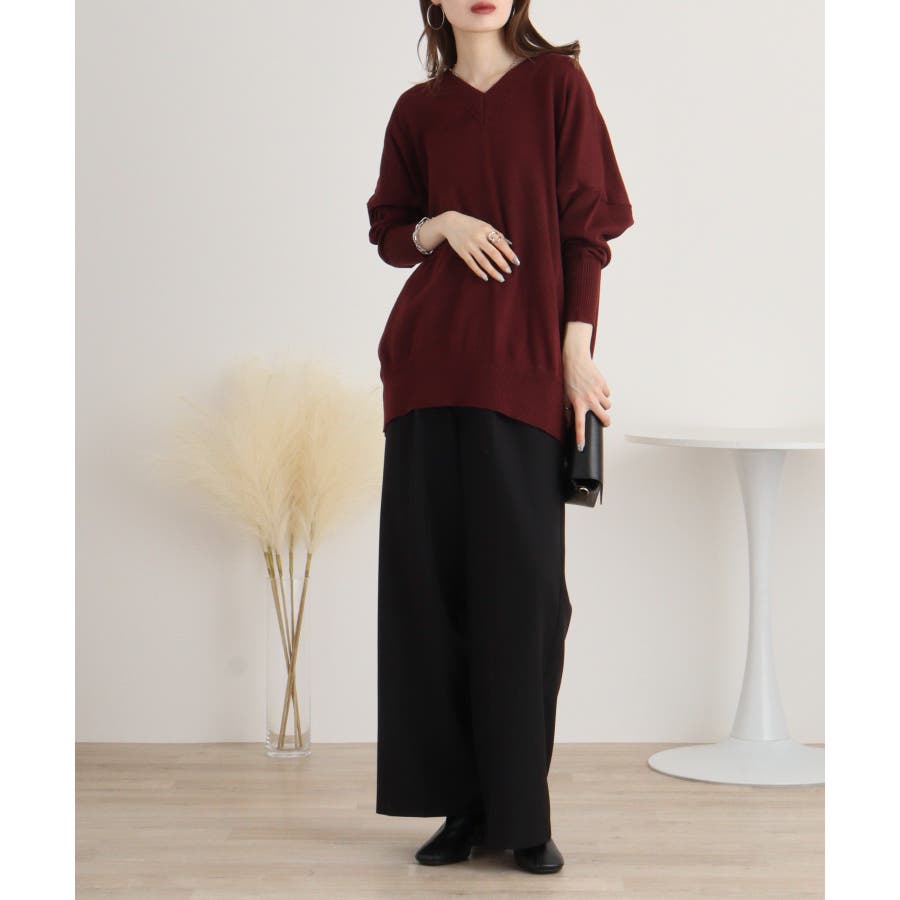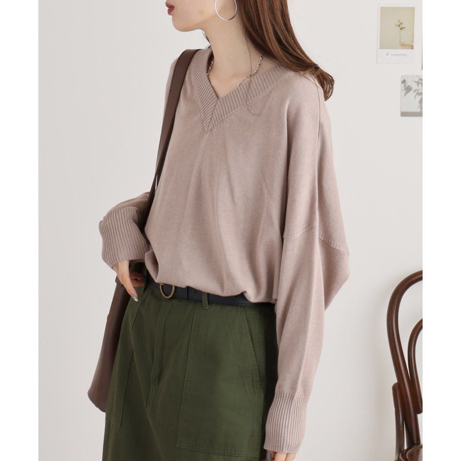 Vネックデザインとリブディテールが印象的なドルマンセーター。