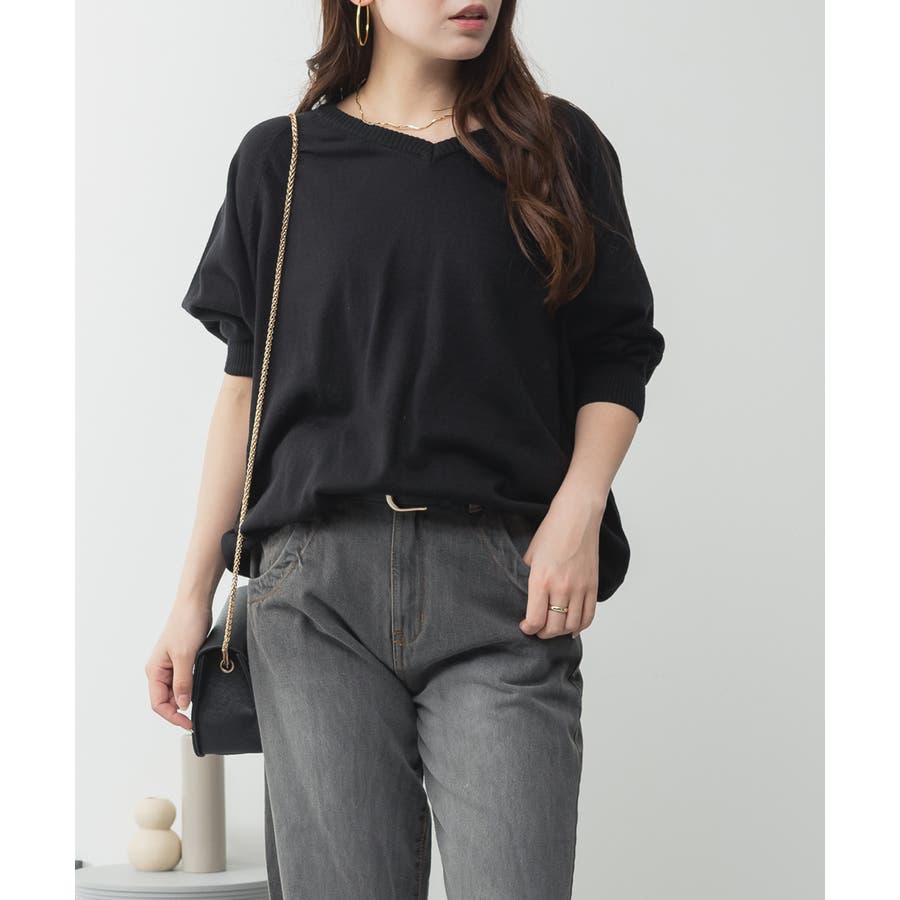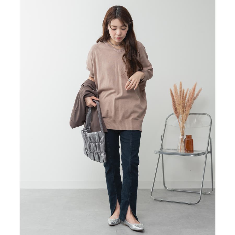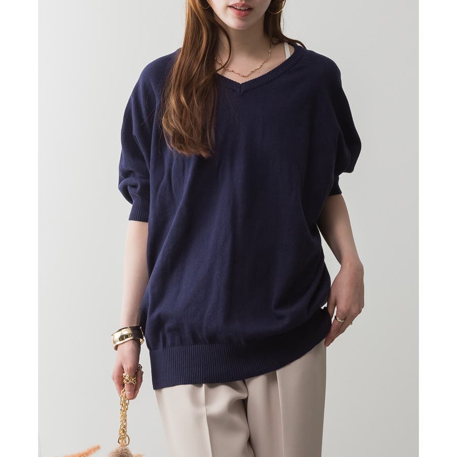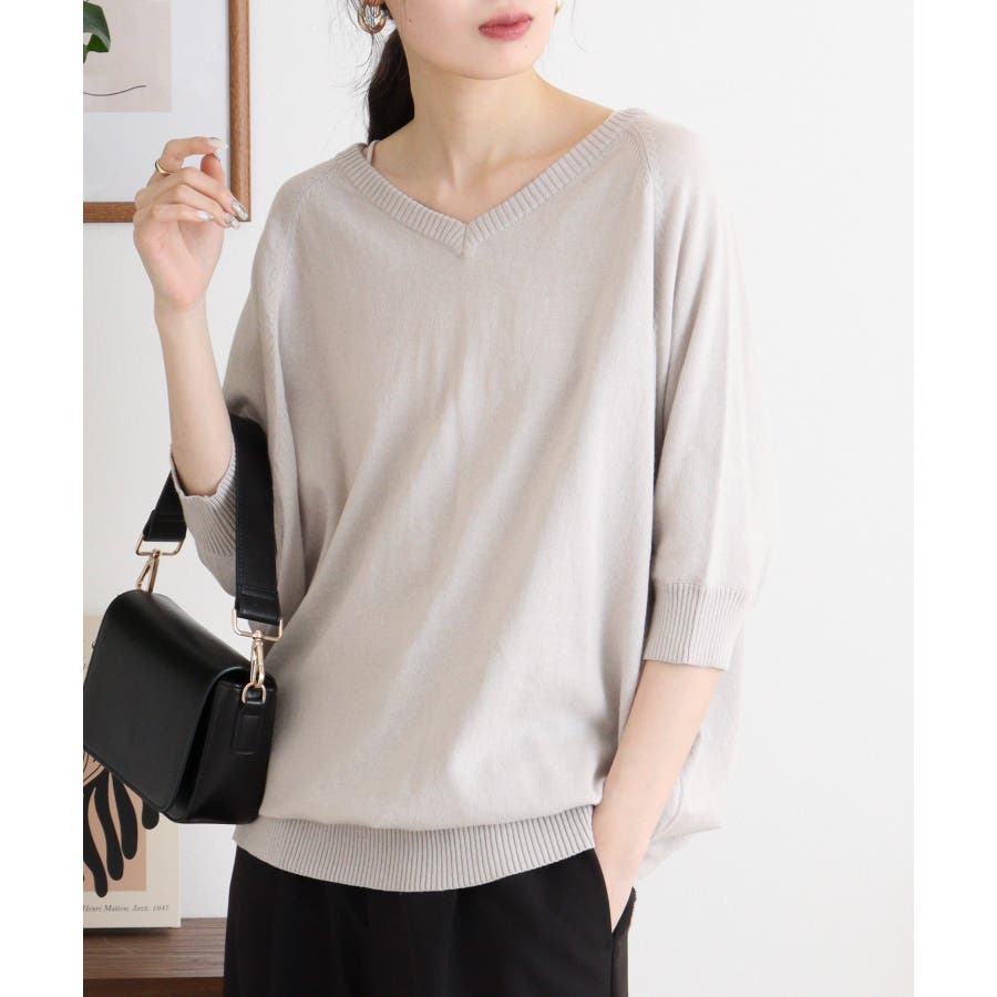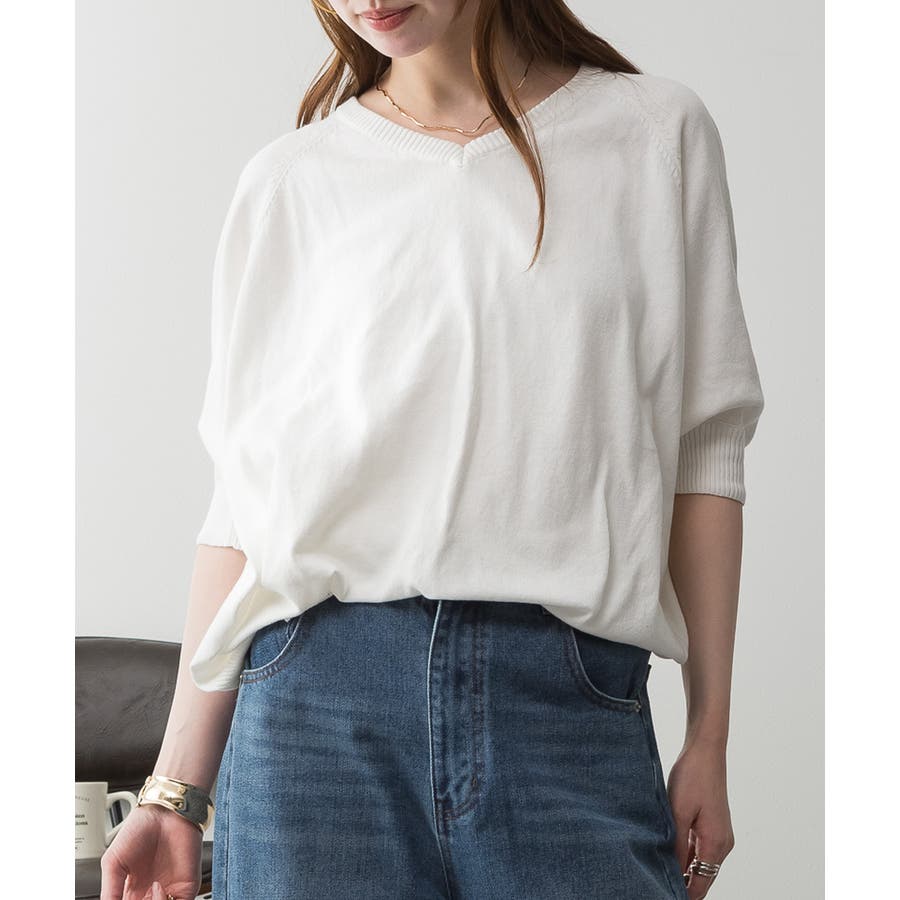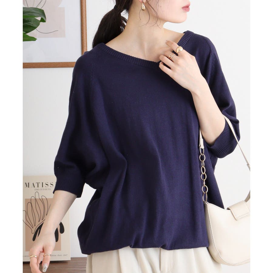 全体的にゆったりした袖感でルーズにも着れる薄手のニット。