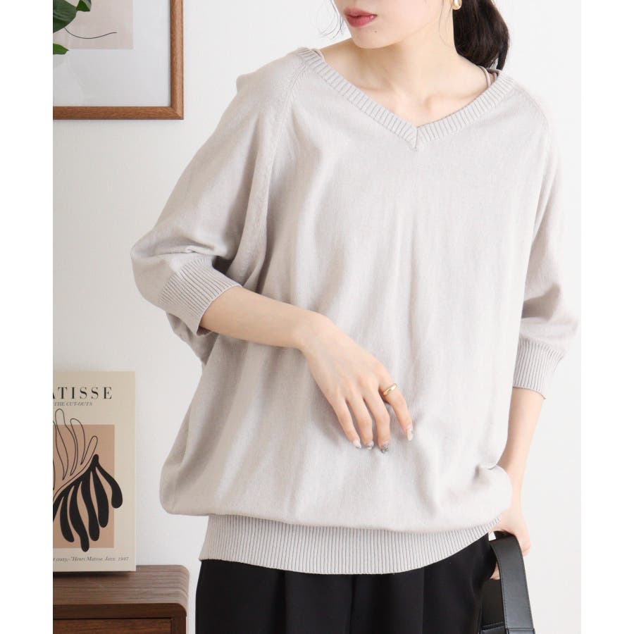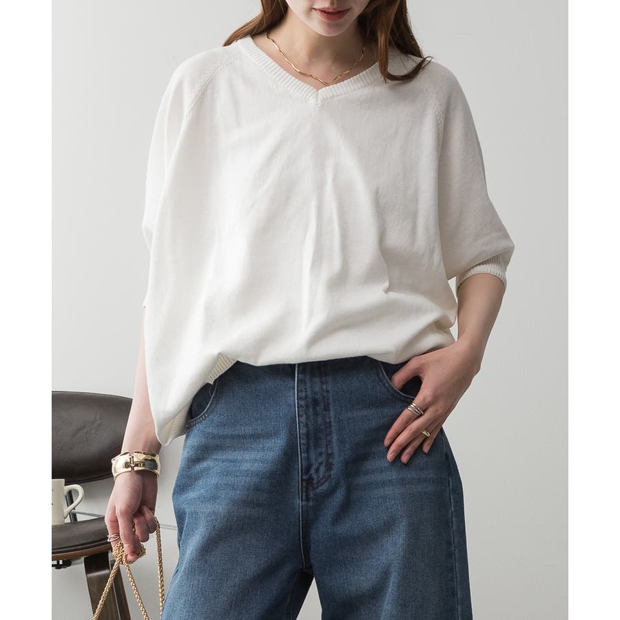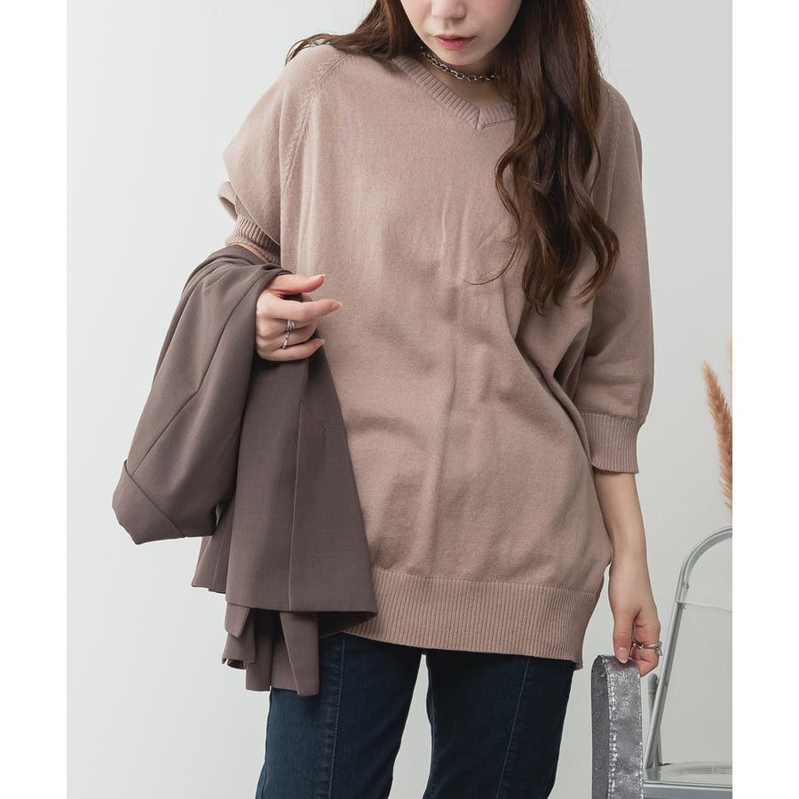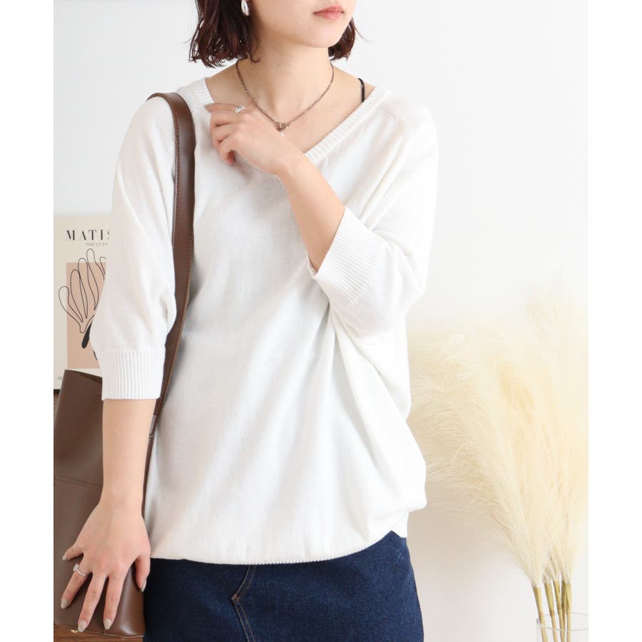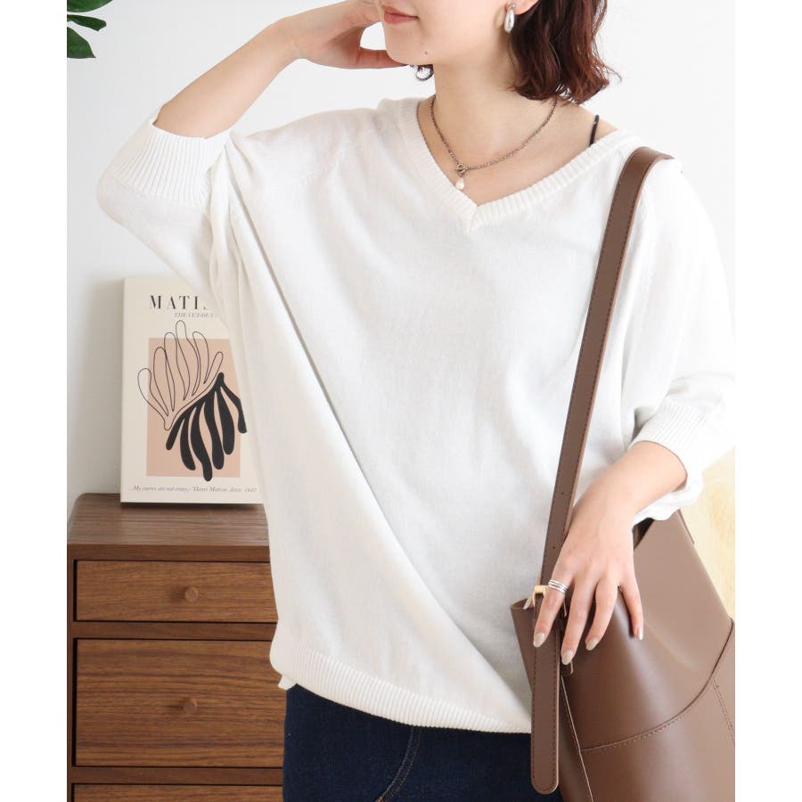全体的にゆったりした袖感でルーズにも着れる薄手のニット。