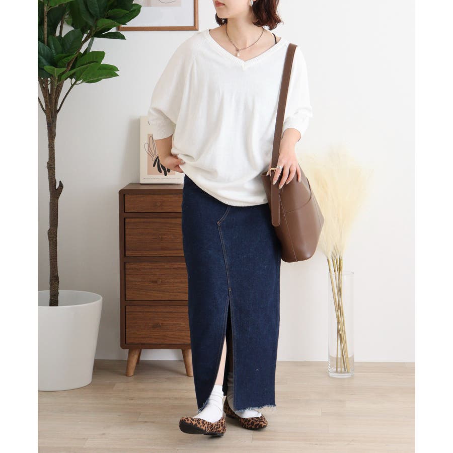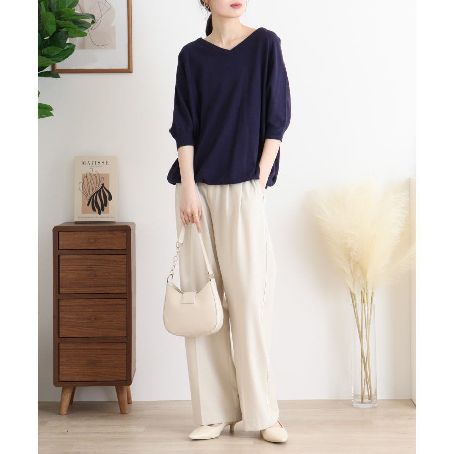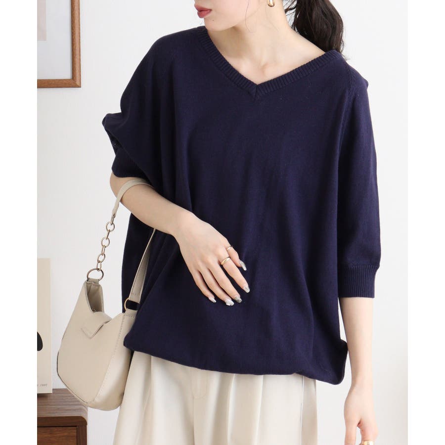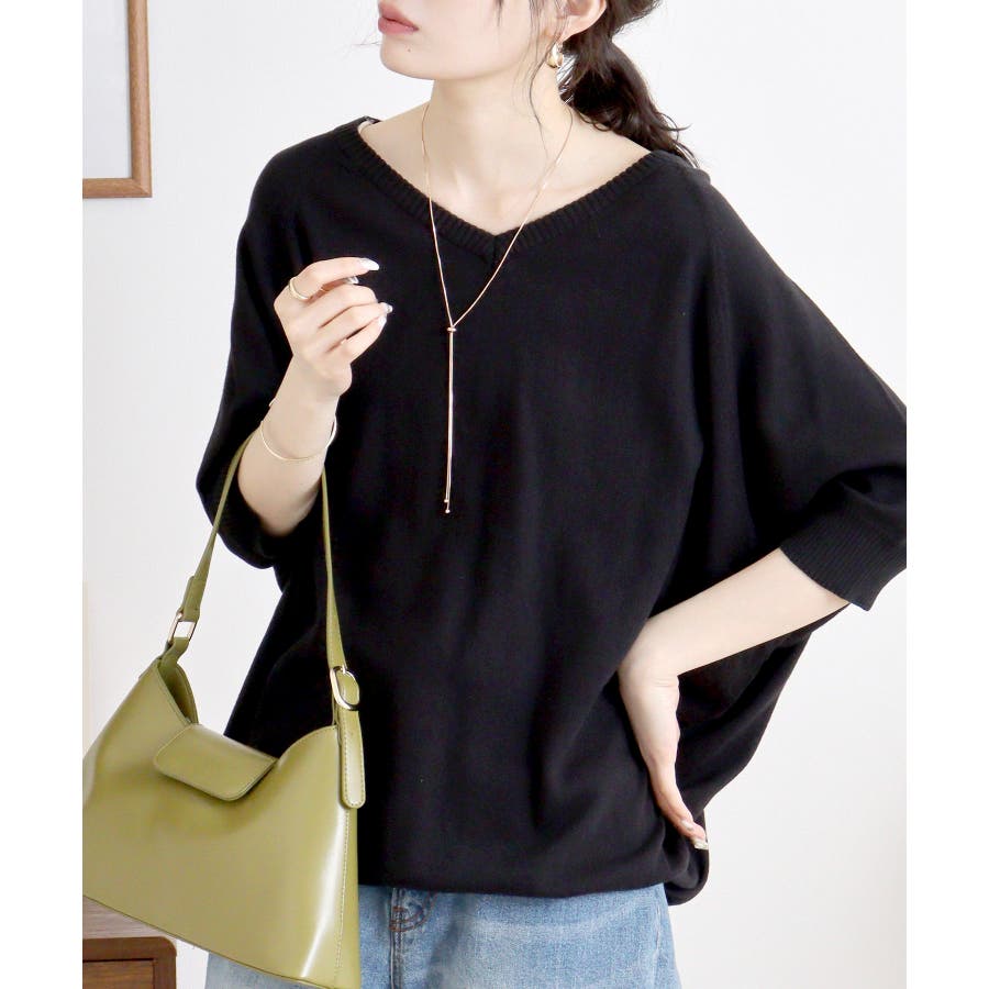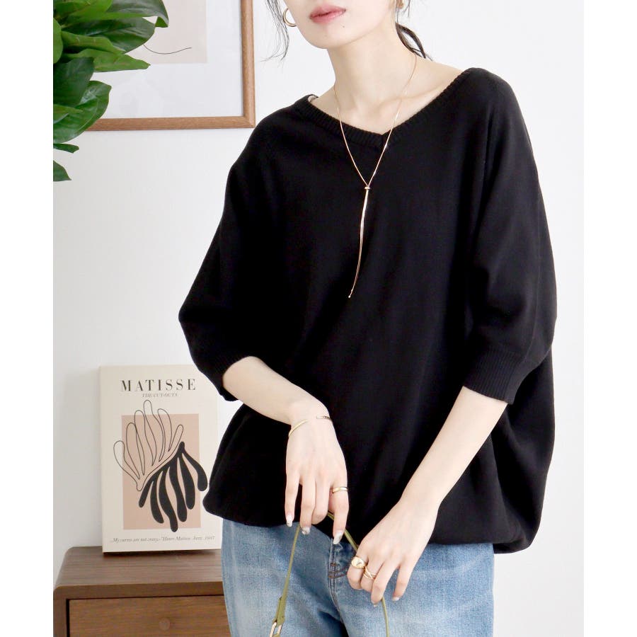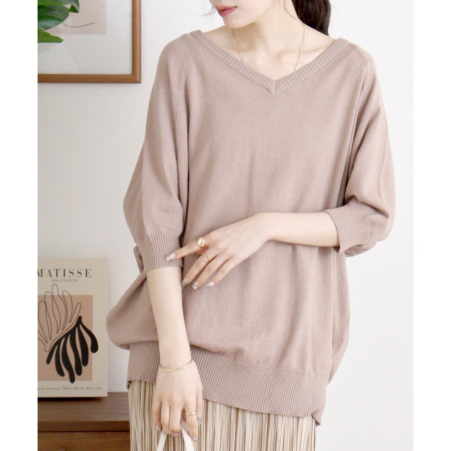 全体的にゆったりした袖感でルーズにも着れる薄手のニット。