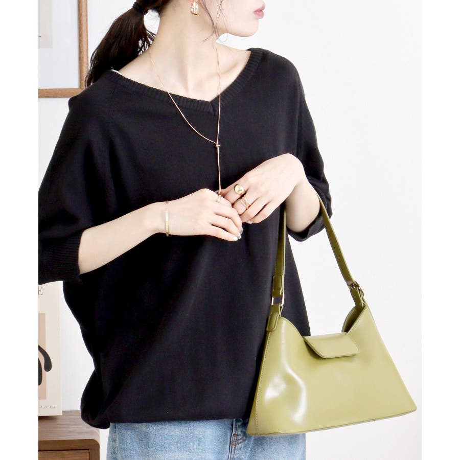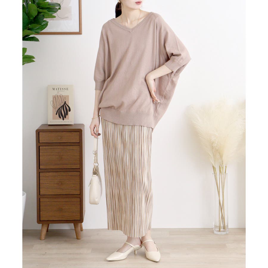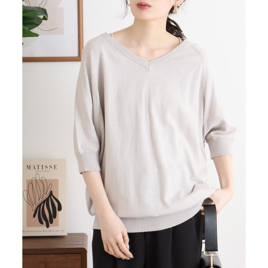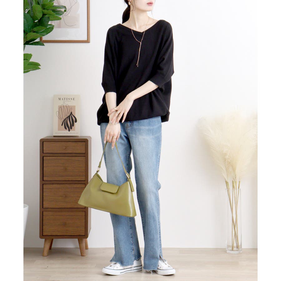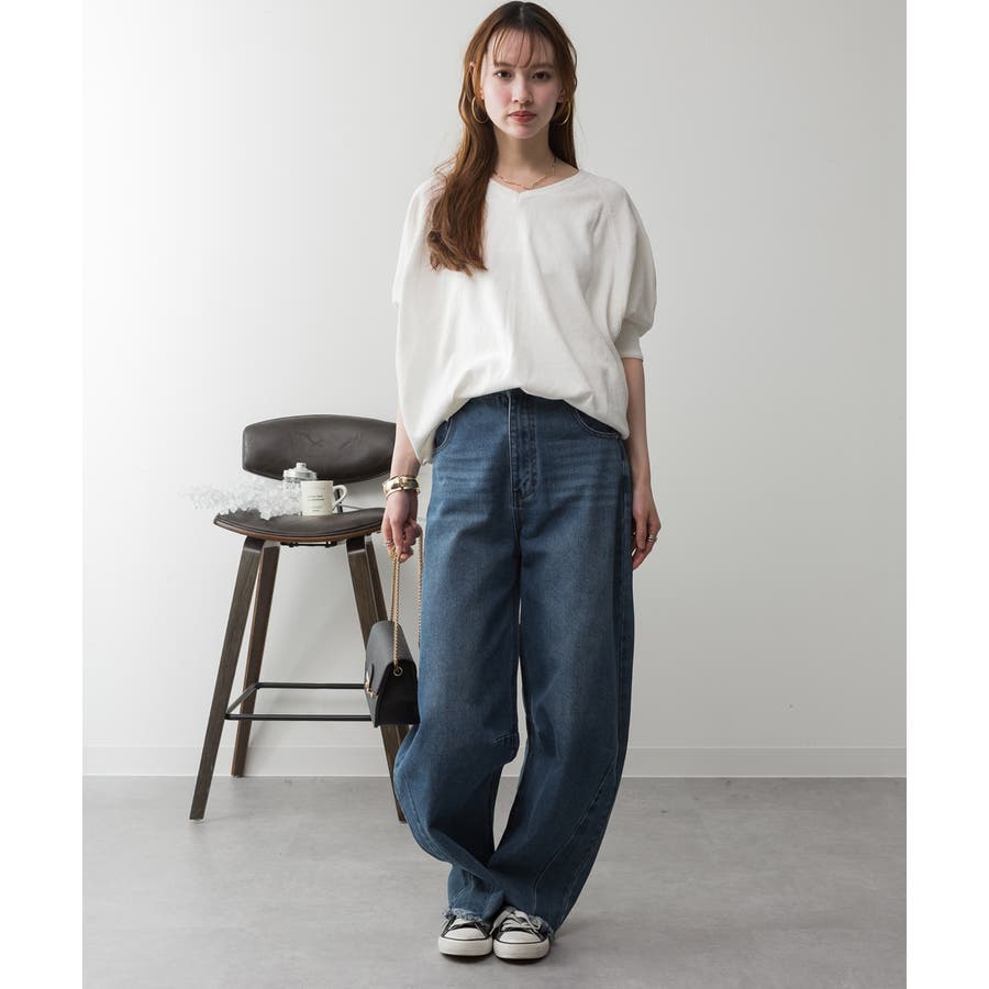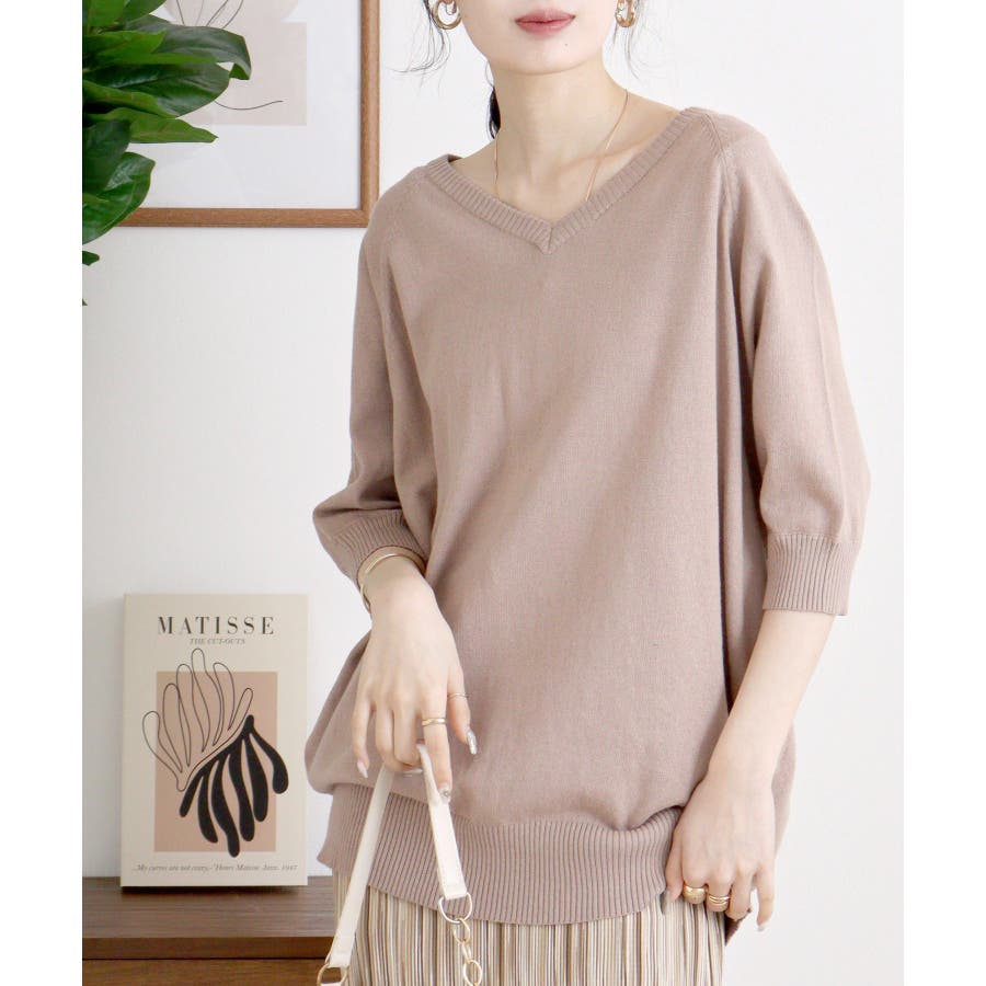 全体的にゆったりした袖感でルーズにも着れる薄手のニット。