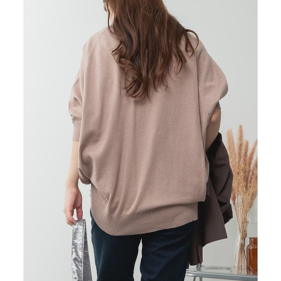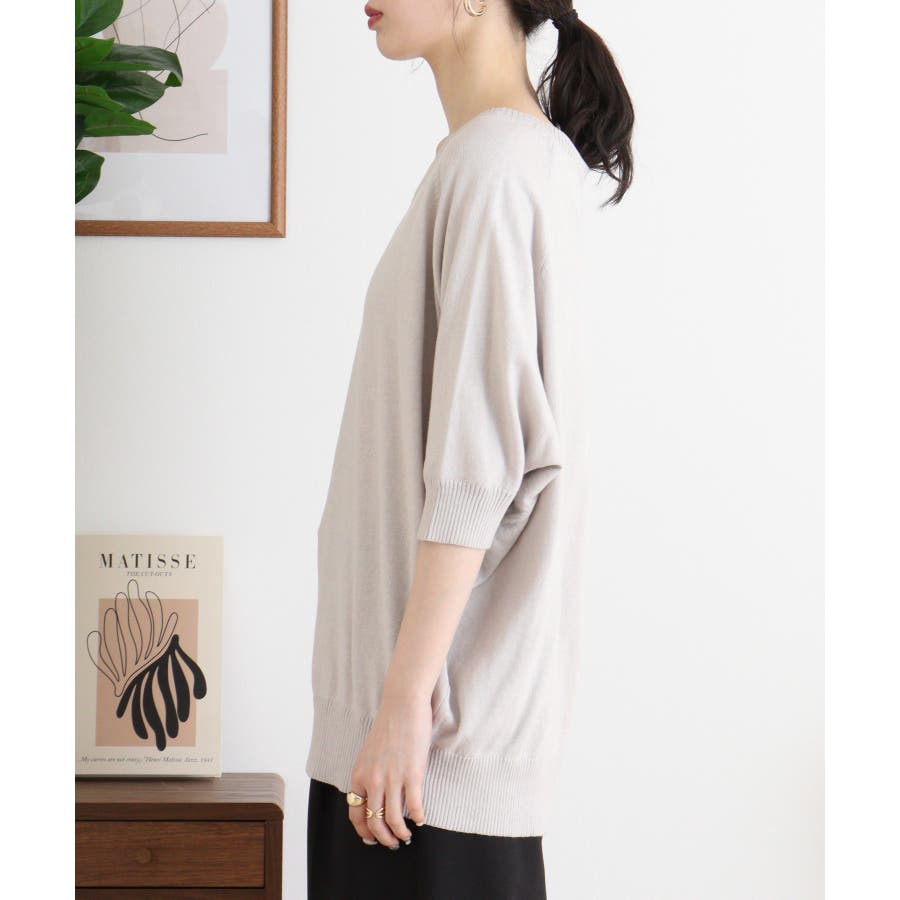 ドルマンシルエットがリラックスした着心地を提供し、5分袖のデザインが季節を問わず快適に着用できます。