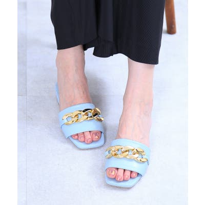 大きめなチェーンデザインがモードな印象のミュールサンダル。