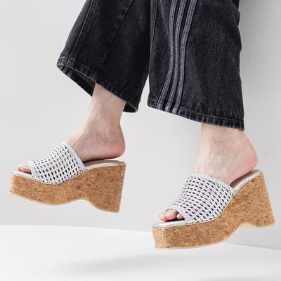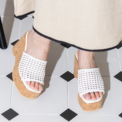 メッシュ編みウェッジミュールサンダル