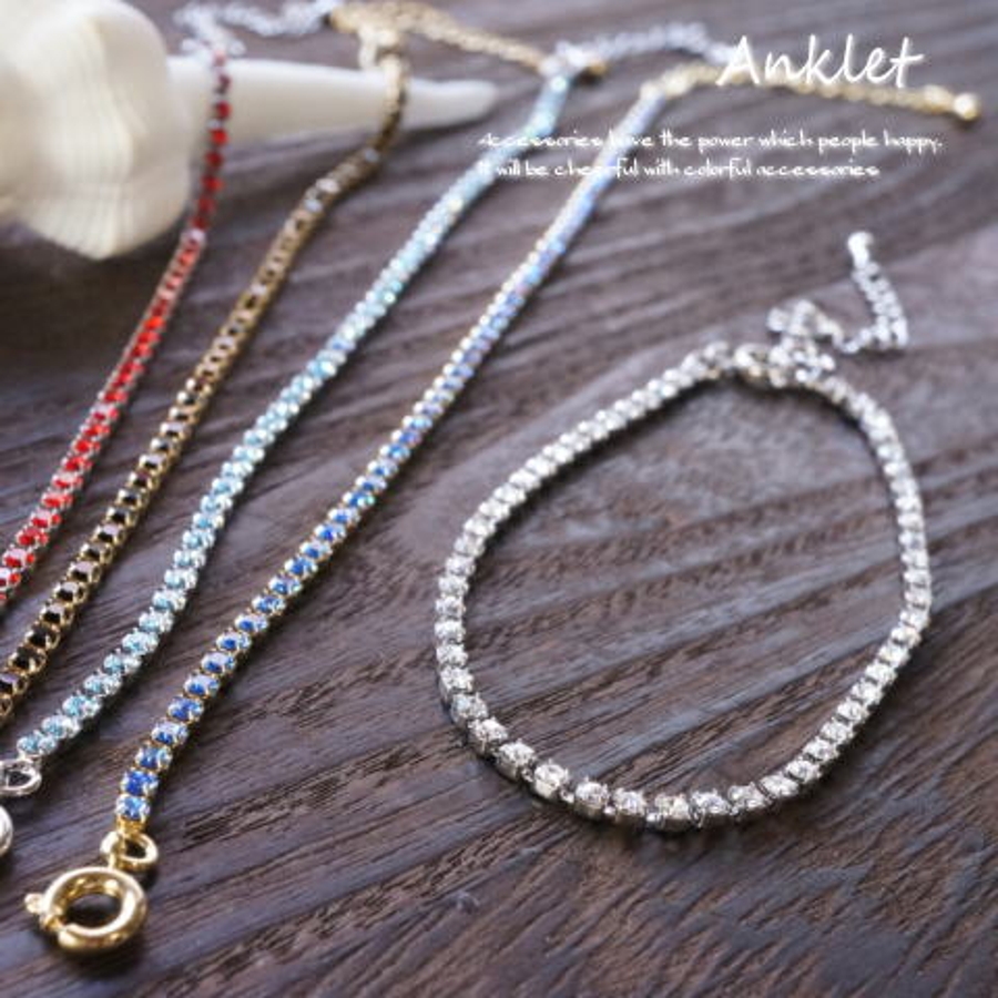 キラキラなラインストーンで足元が輝くラインストーンアンクレット アクセサリー