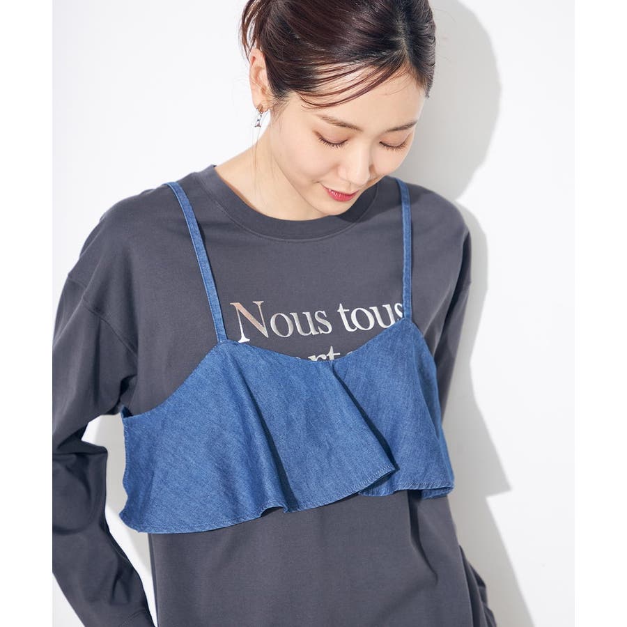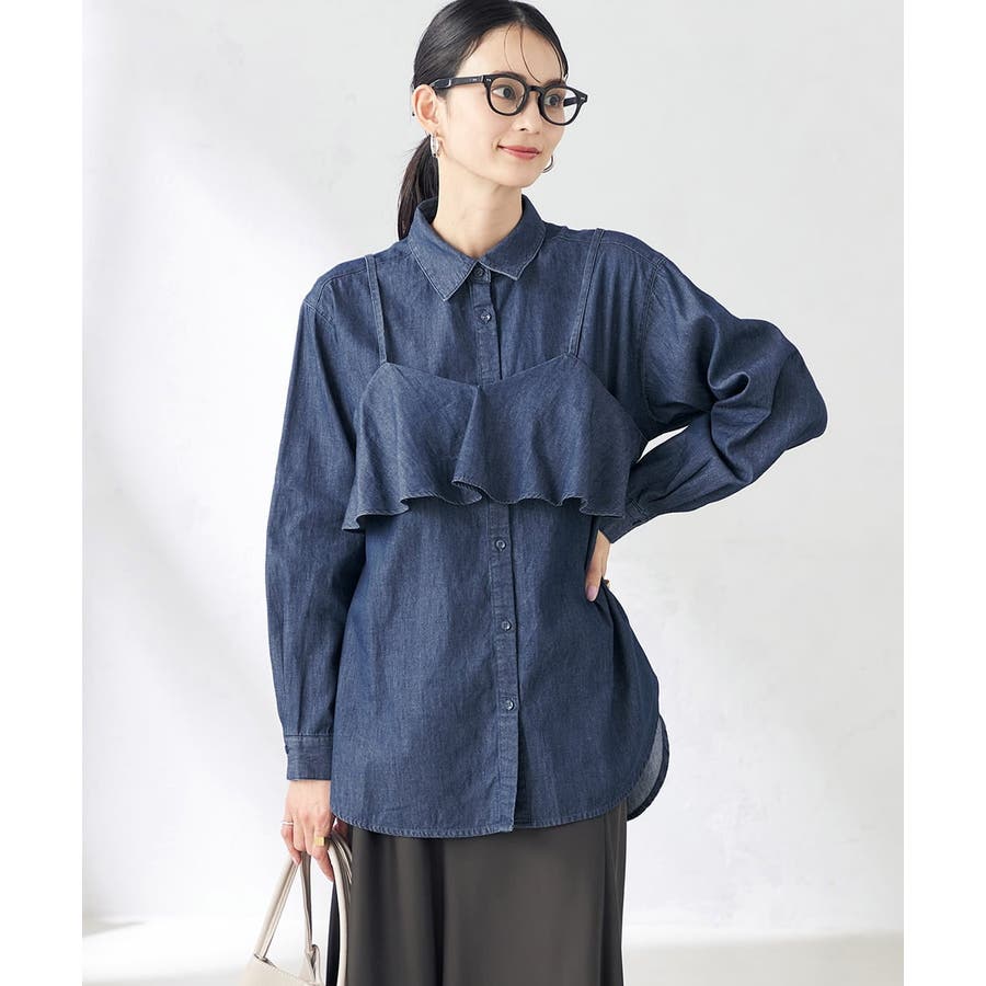 L:着丈(シャツ)74.5 身幅(シャツ)59.5 肩幅(シャツ)48.5 そで丈(シャツ)53.6 身幅(ビスチェ)45~47.5