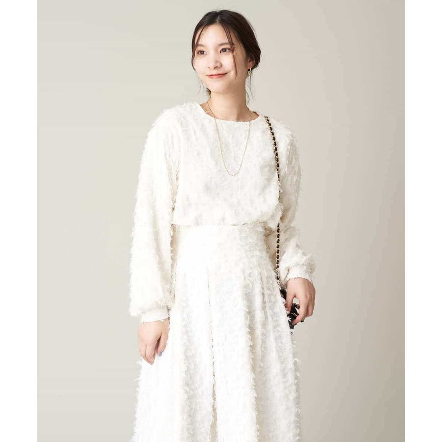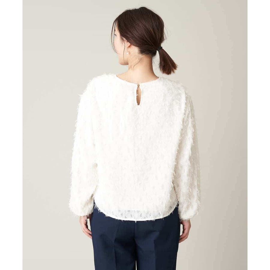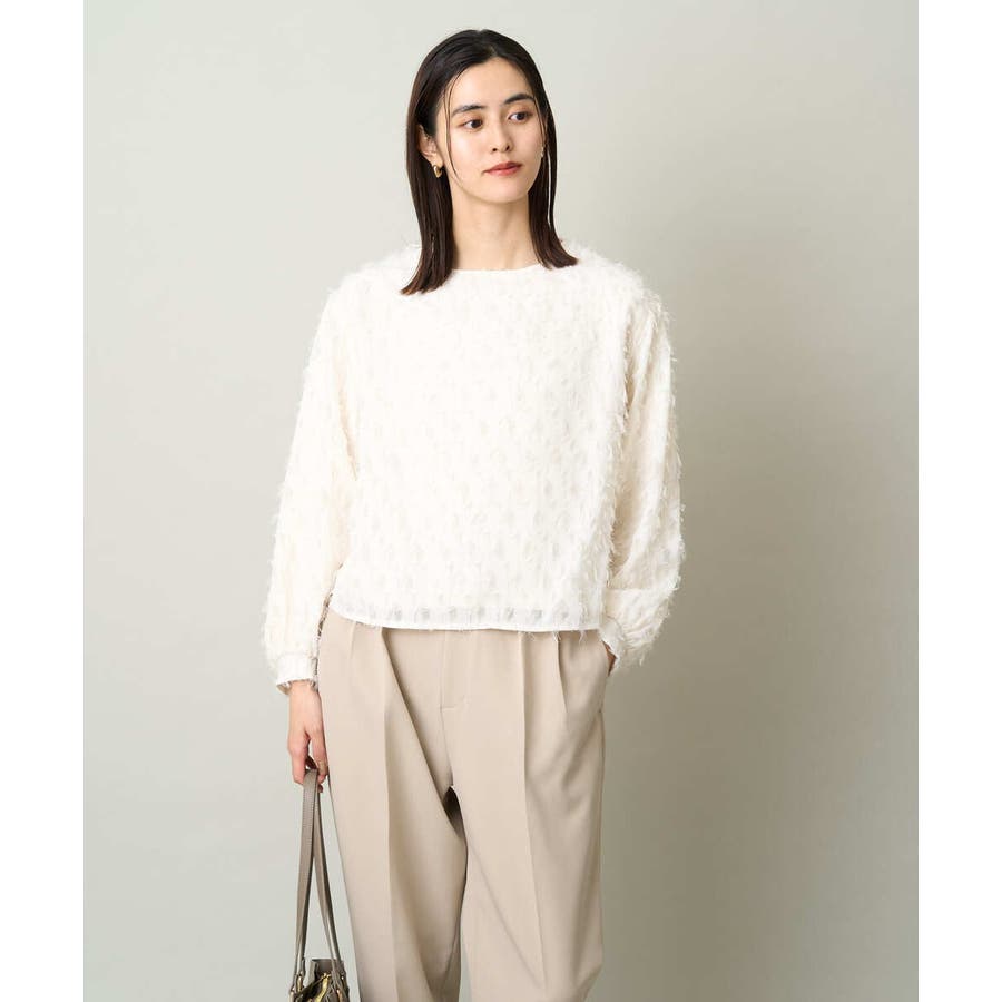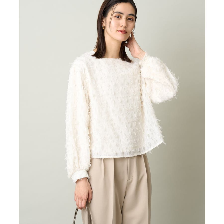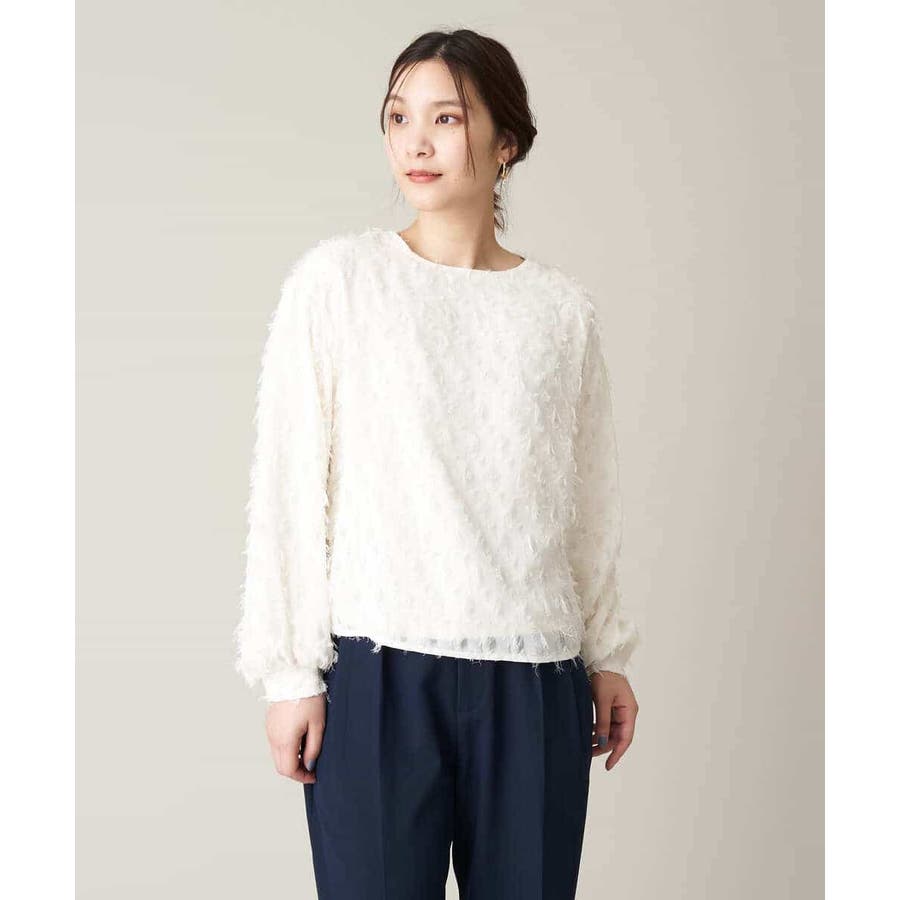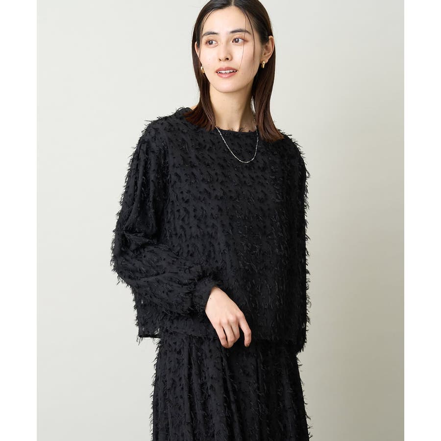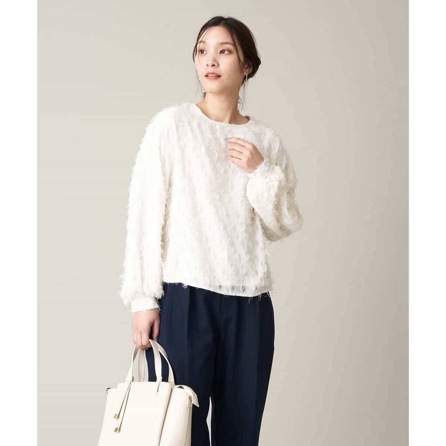 ・トレンドのフリンジジャガード素材を使用したブラウス。