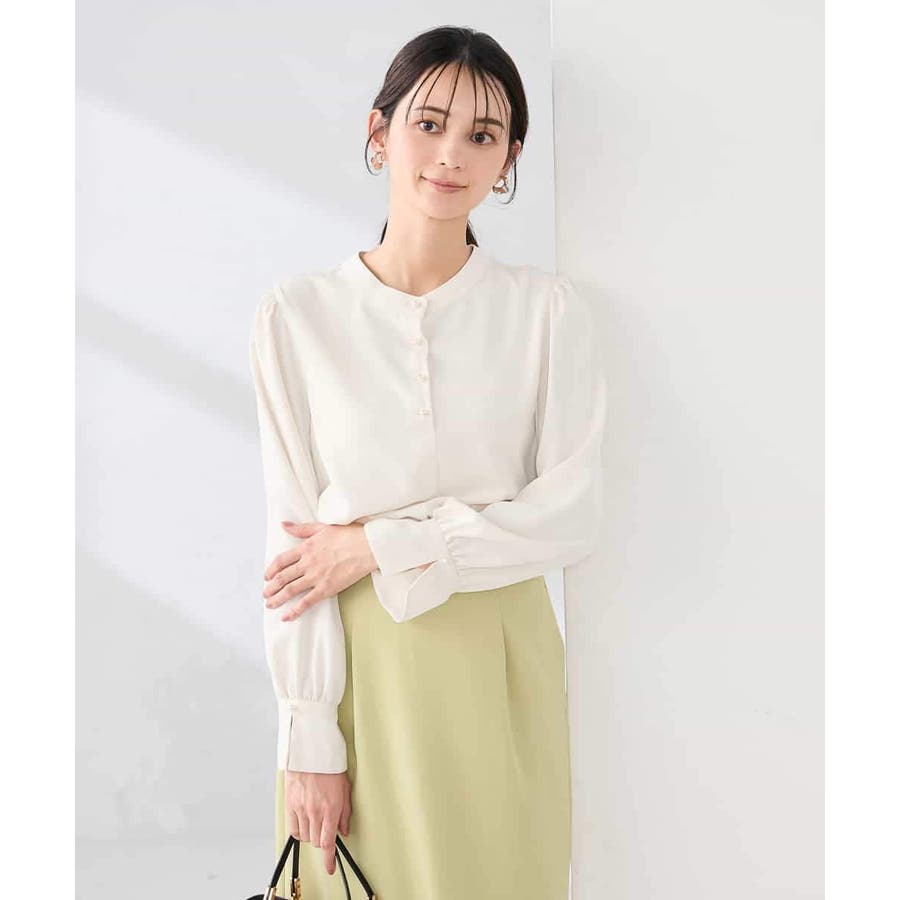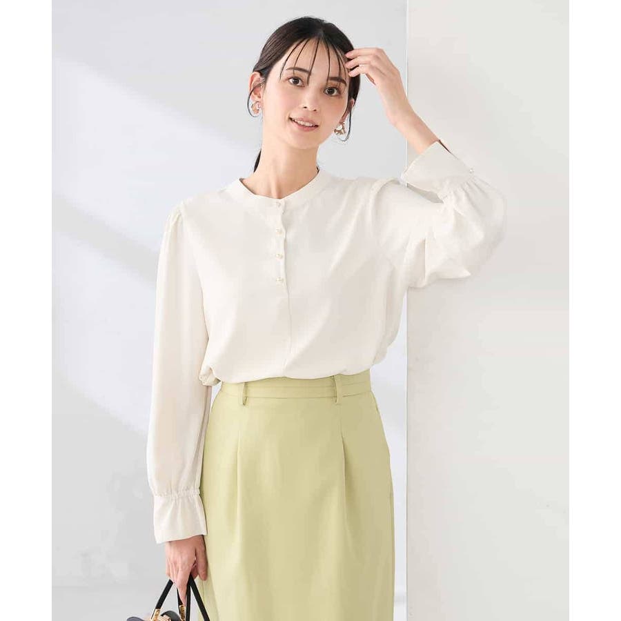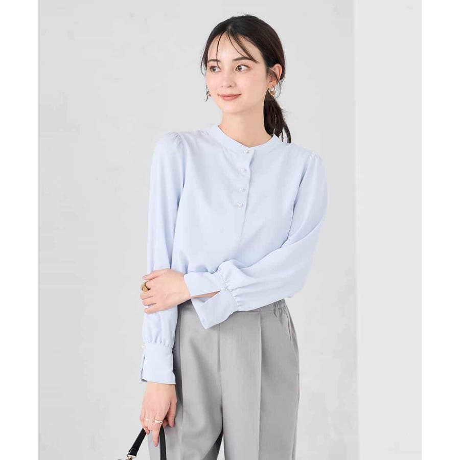 ・パフスリーブとパールボタンが華やかな印象に
