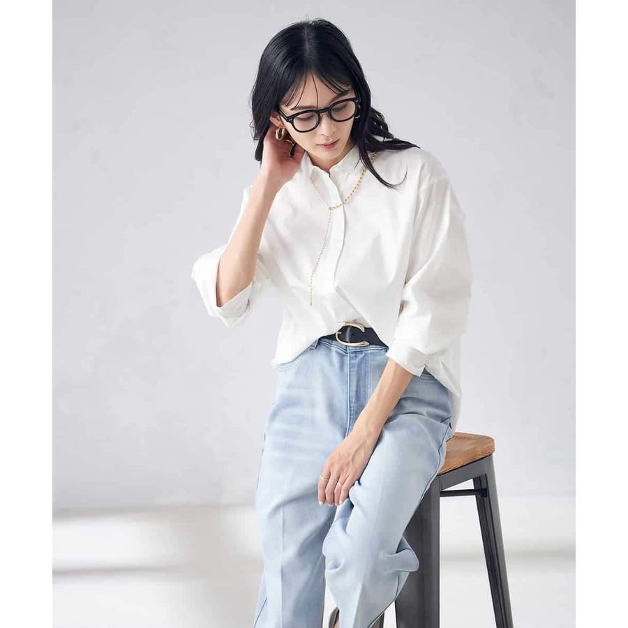 ニットやスウェットの下にレイヤードしたスタイリングもおすすめ。