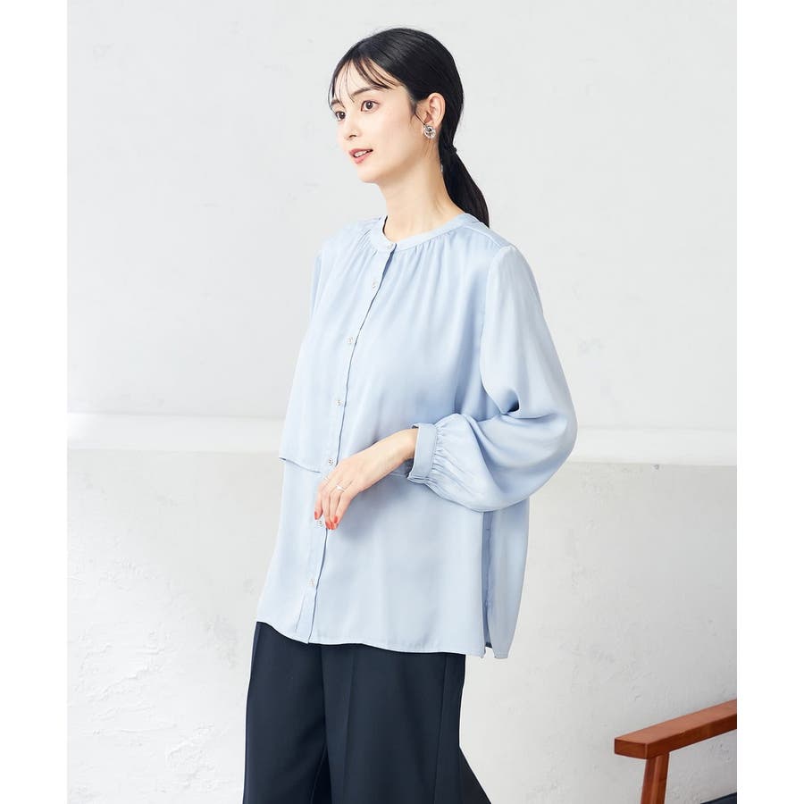 【前後2WAY】レイヤード風サテンブラウス