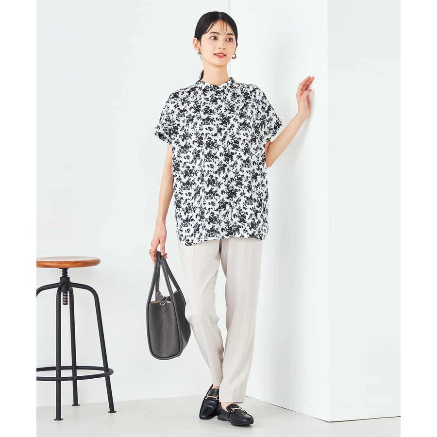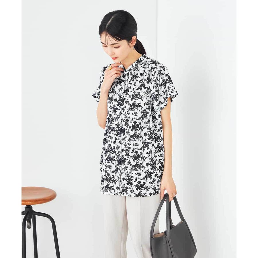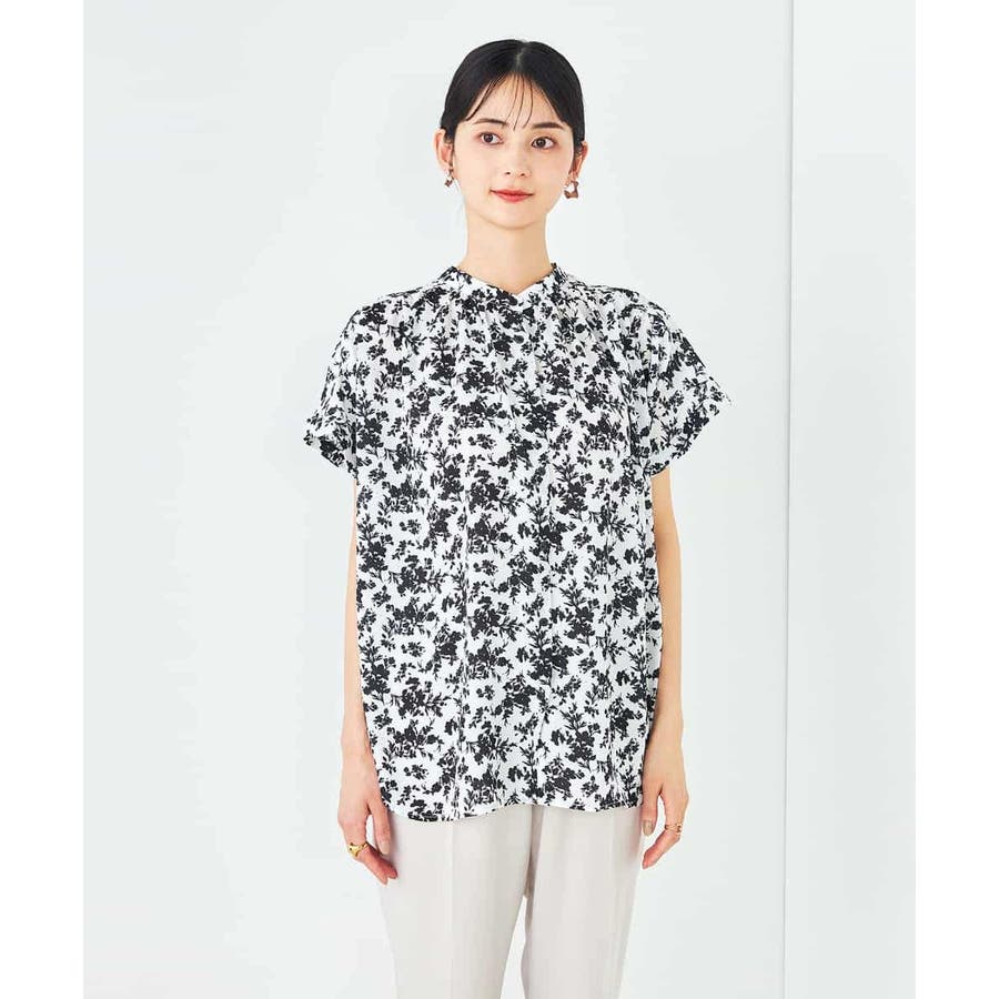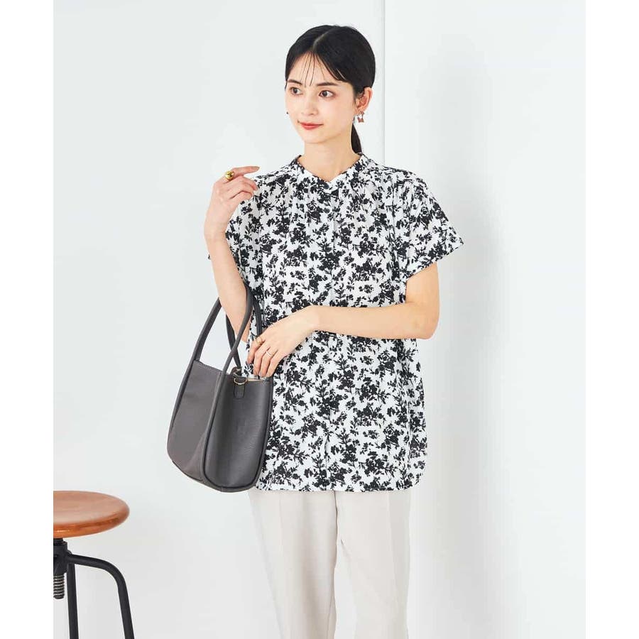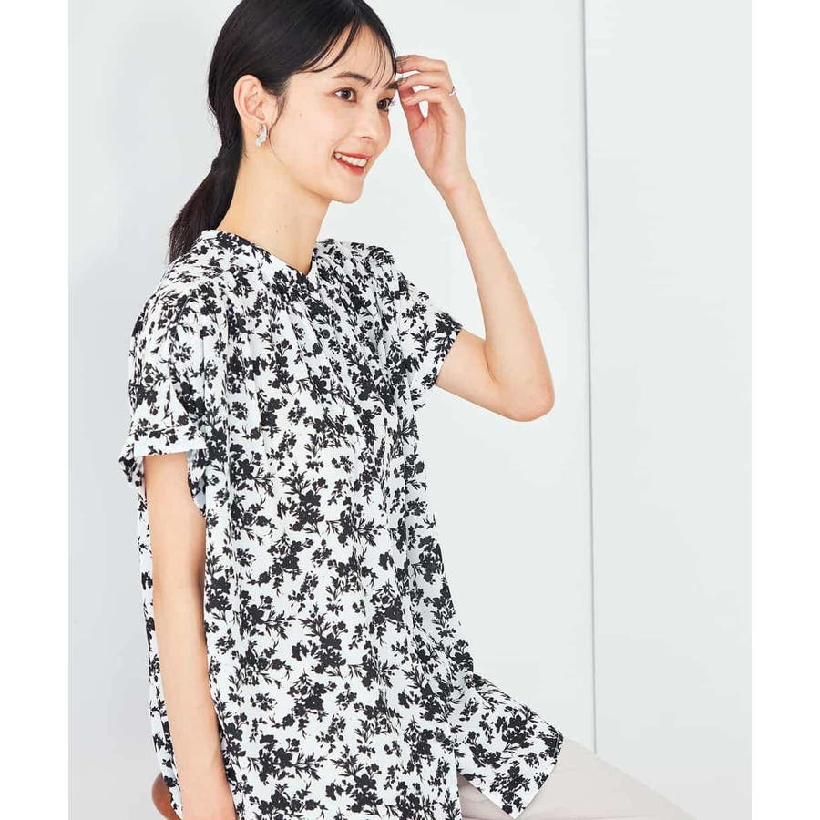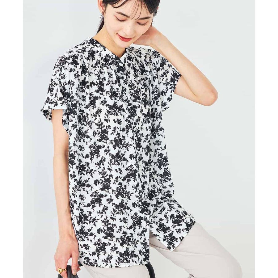 一枚で華やかな印象の花柄ブラウスは、