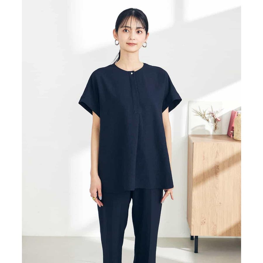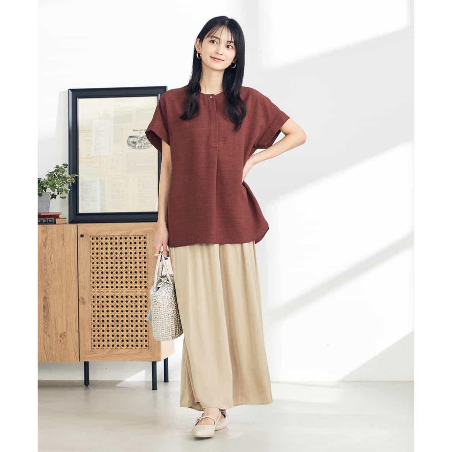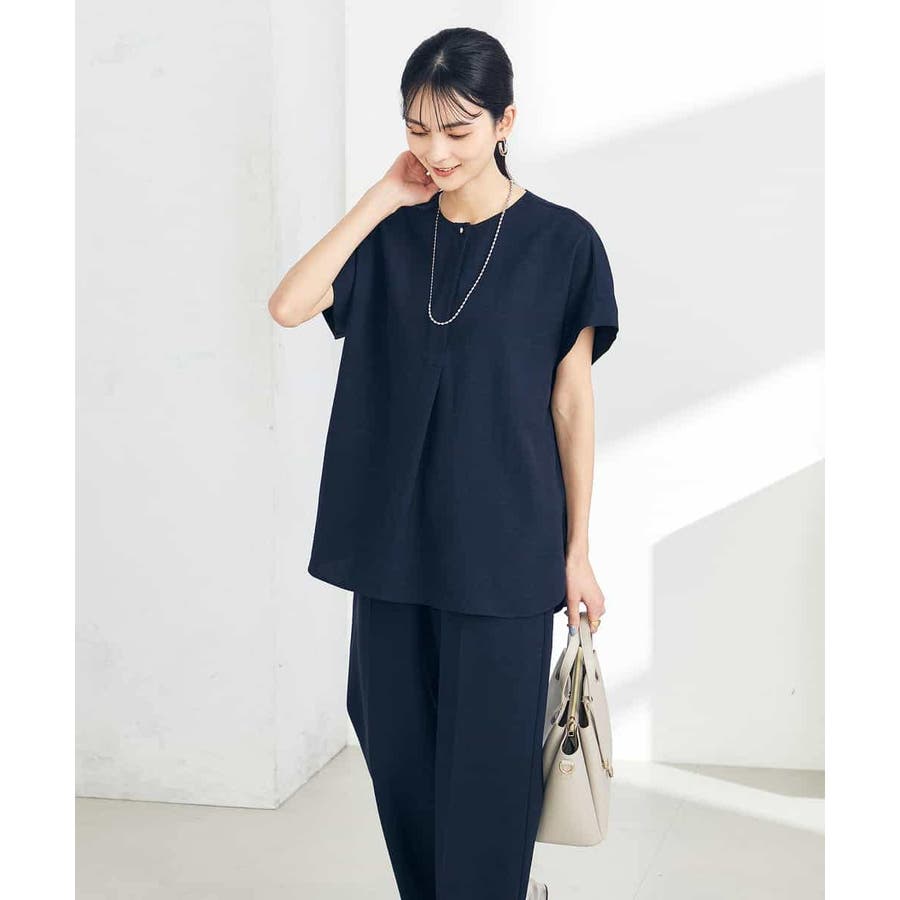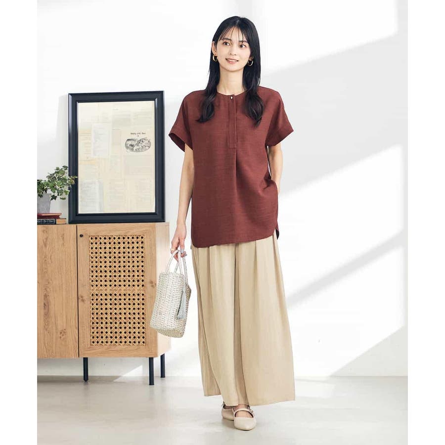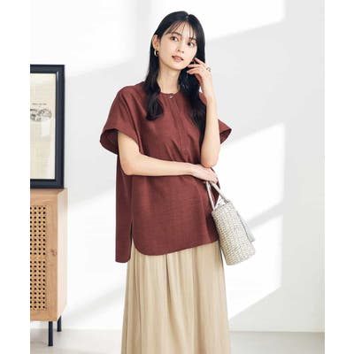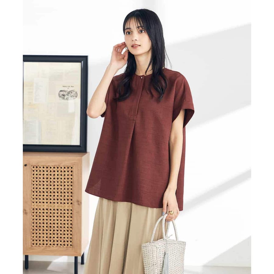 【接触冷感/UVカット/イージーケア】麻調スキッパーブラウス