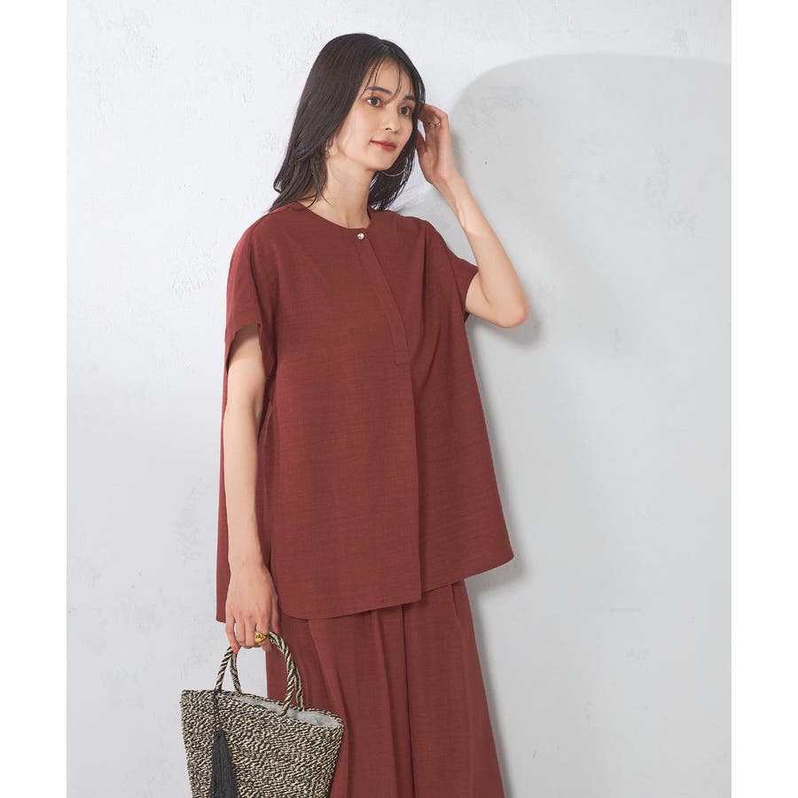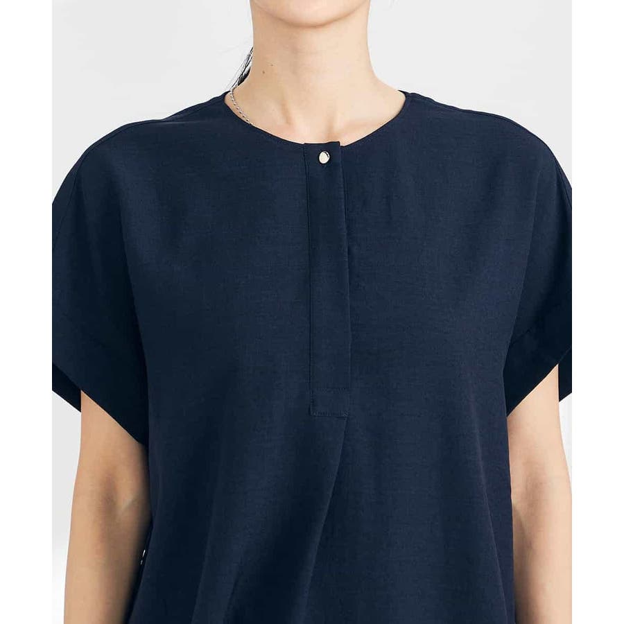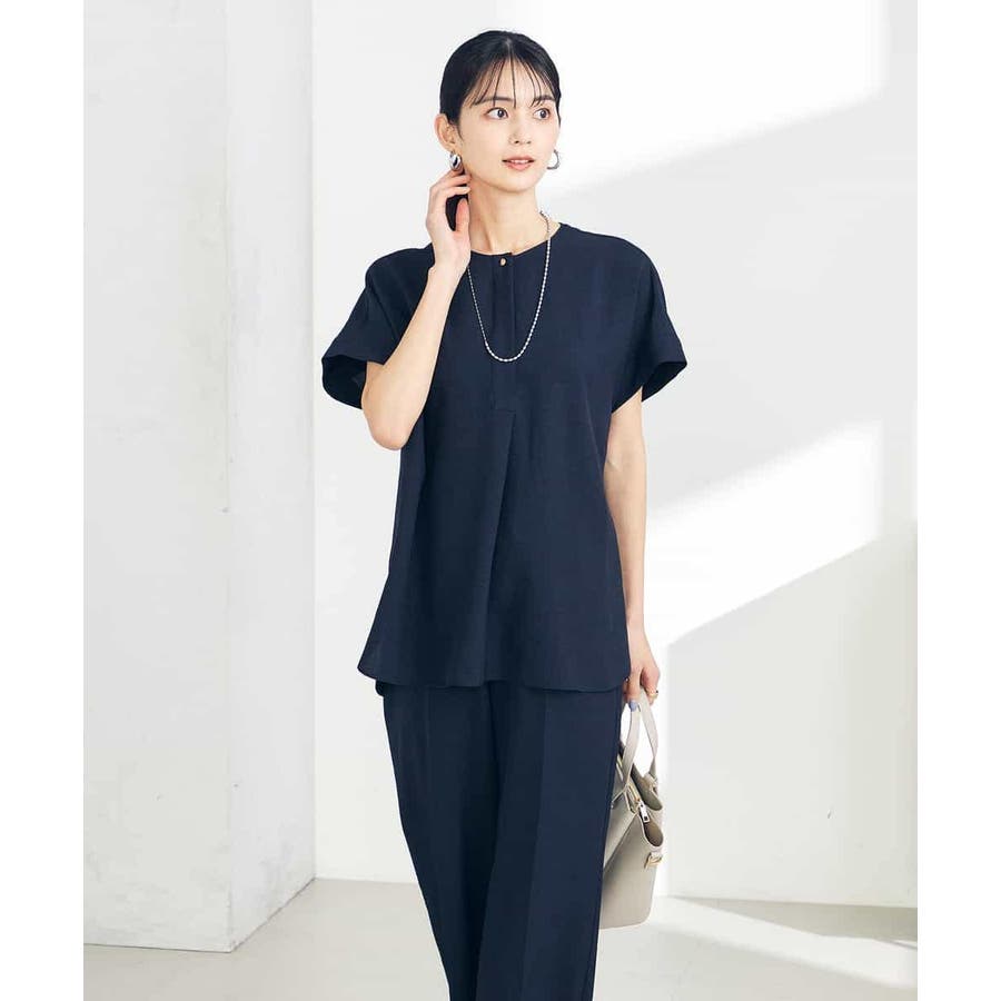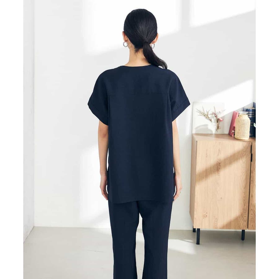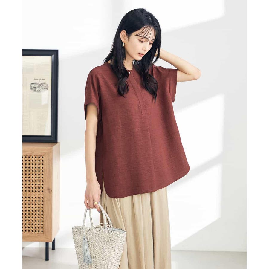 【接触冷感/UVカット/イージーケア】麻調スキッパーブラウス