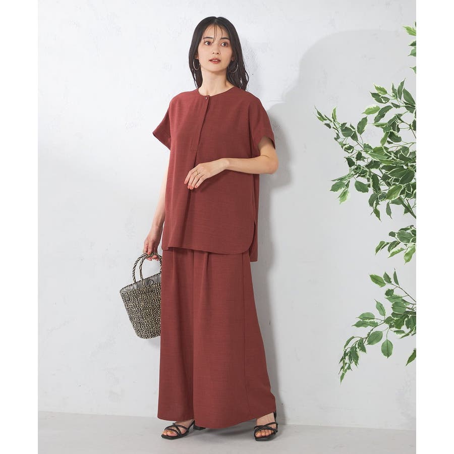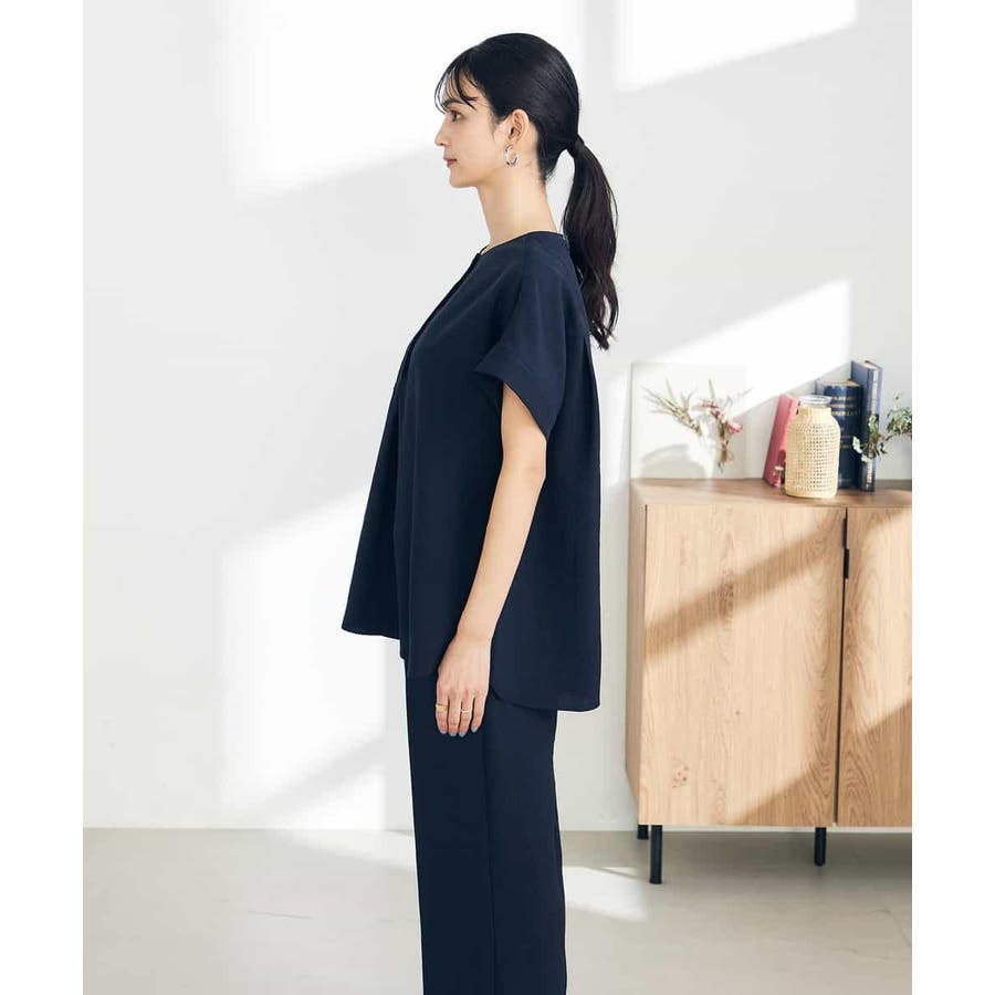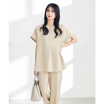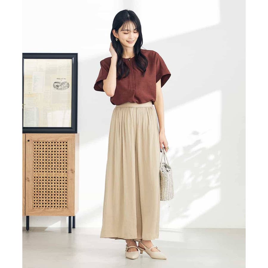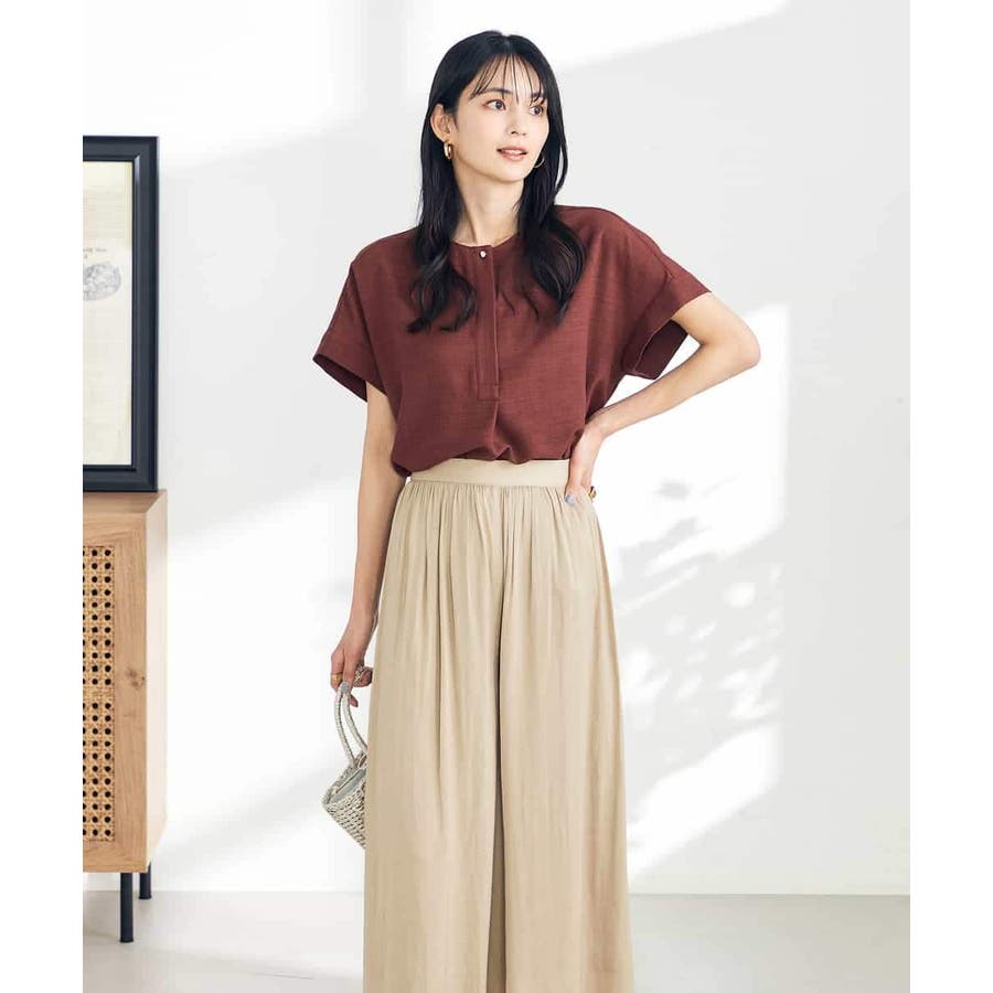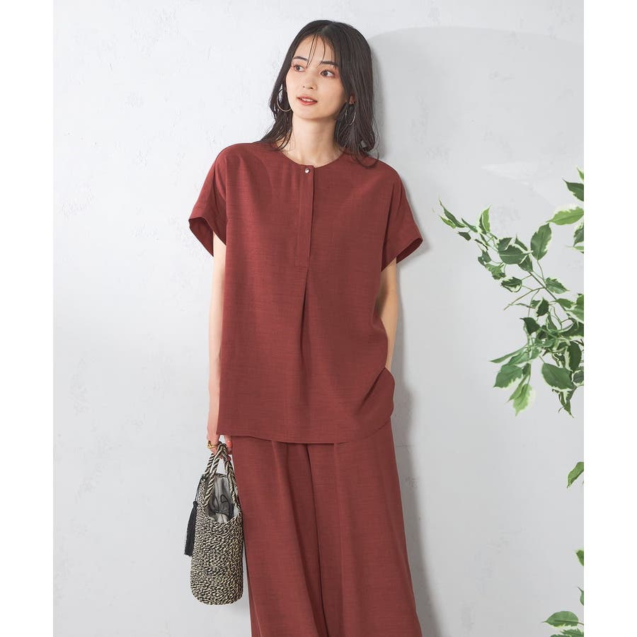 【接触冷感/UVカット/イージーケア】麻調スキッパーブラウス