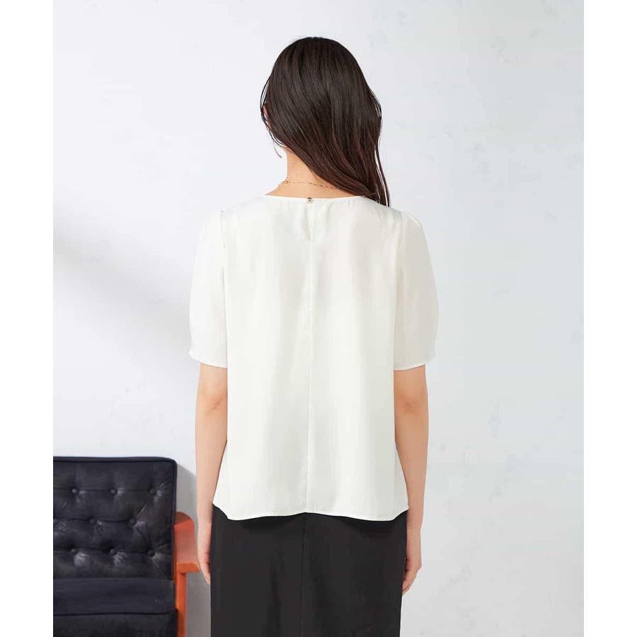【接触冷感/UVカット/吸水速乾/イージーケア】サテンティアードブラウス