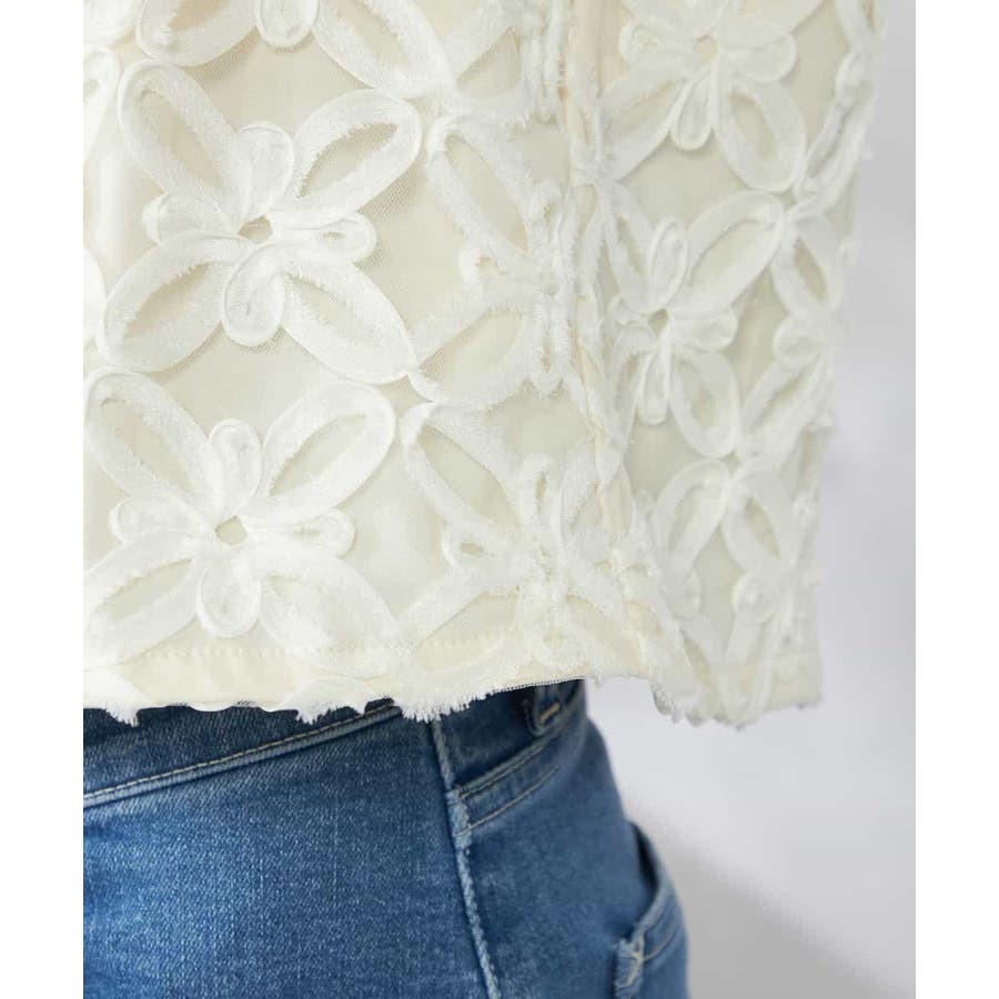 ・レースはテープ状の生地で花柄を刺繍し特別感ある一枚