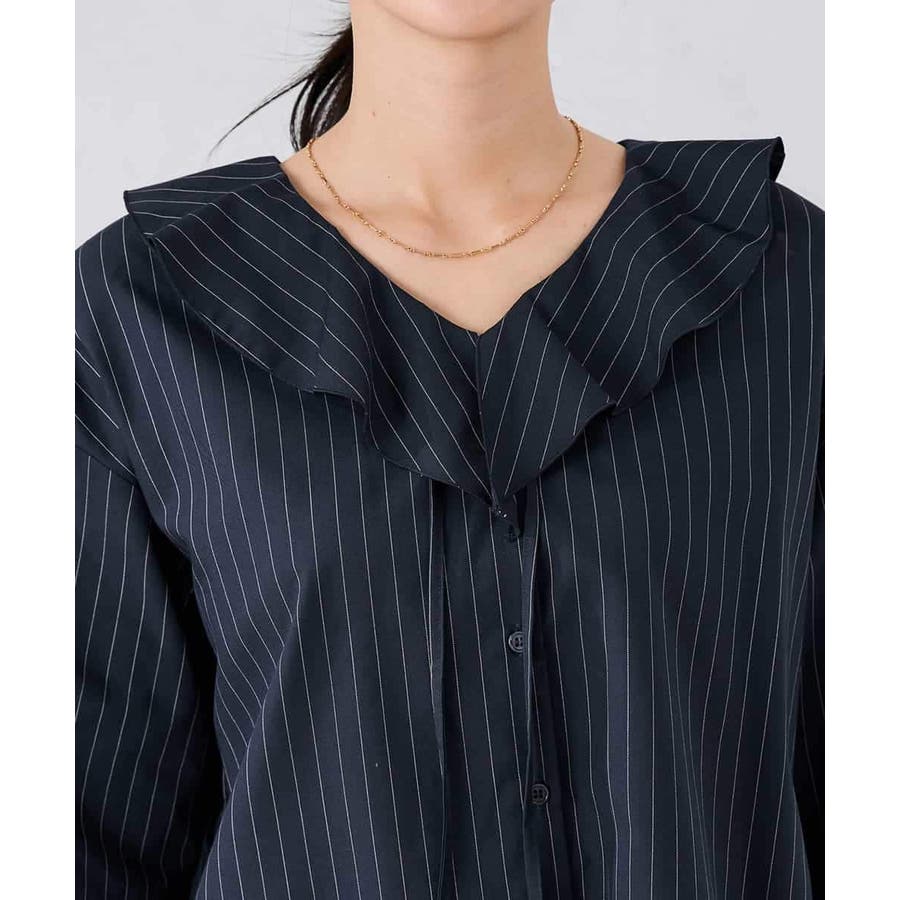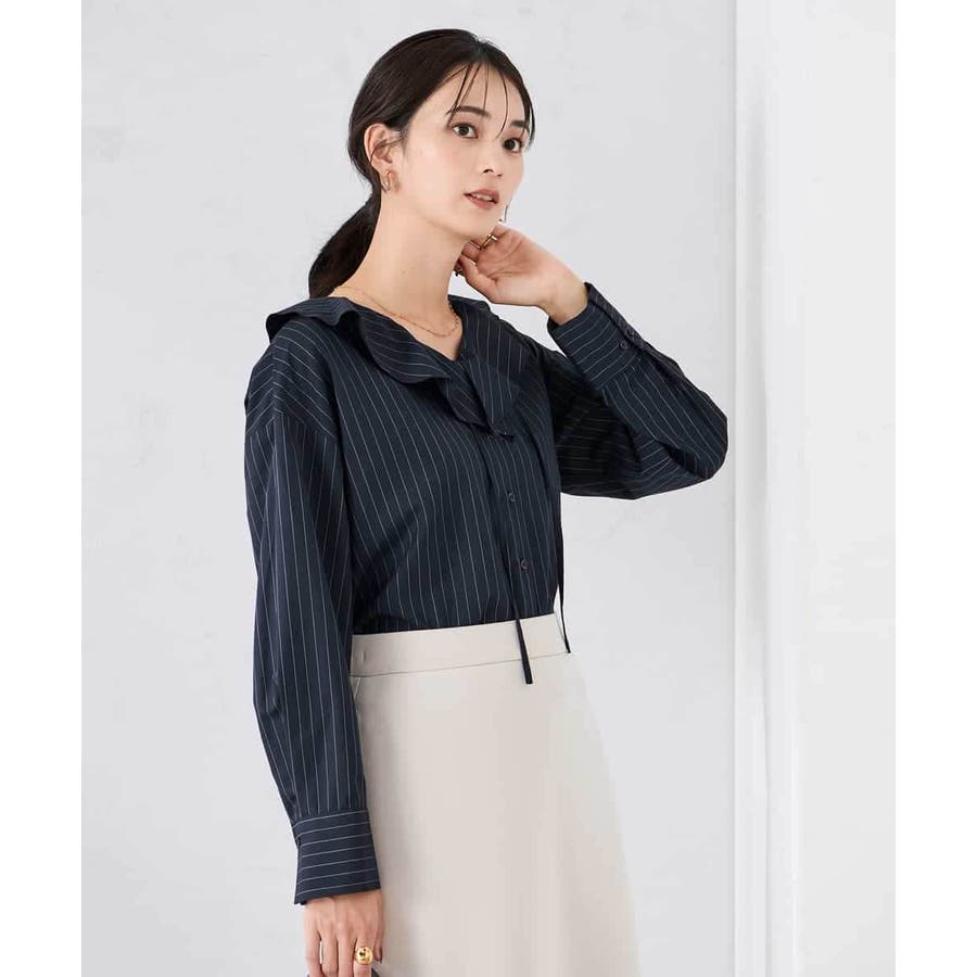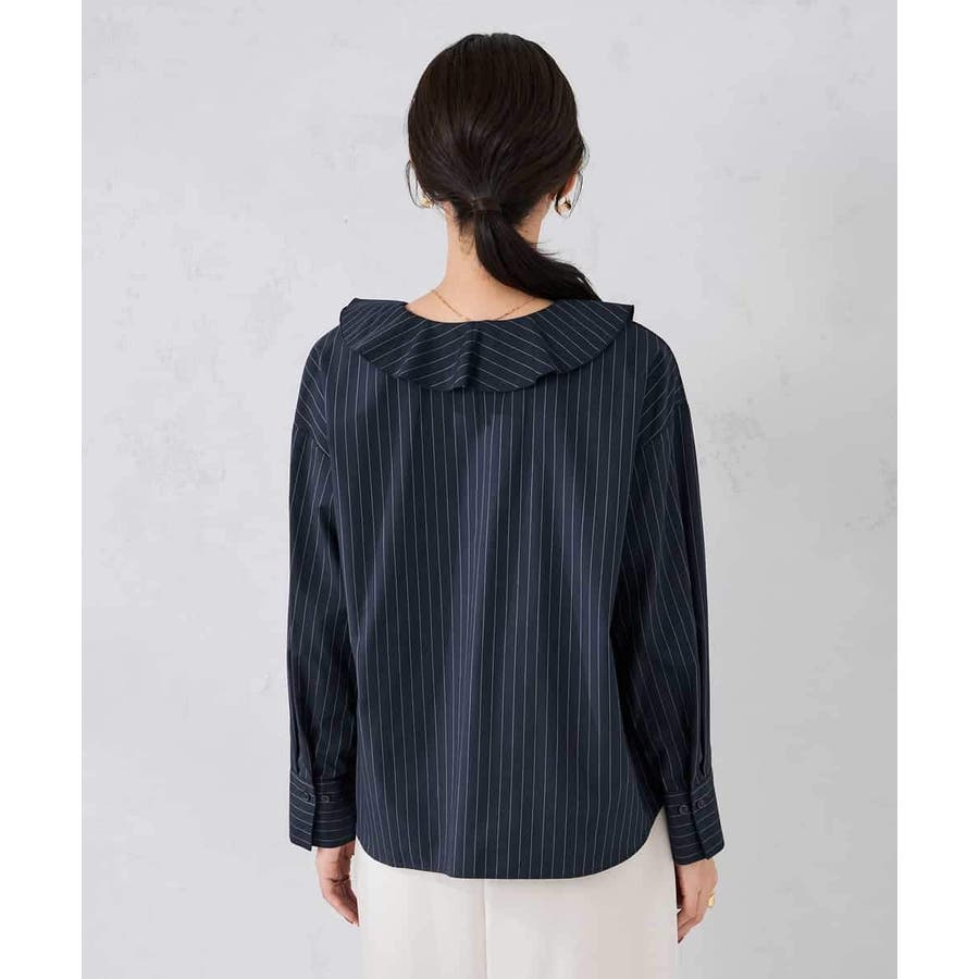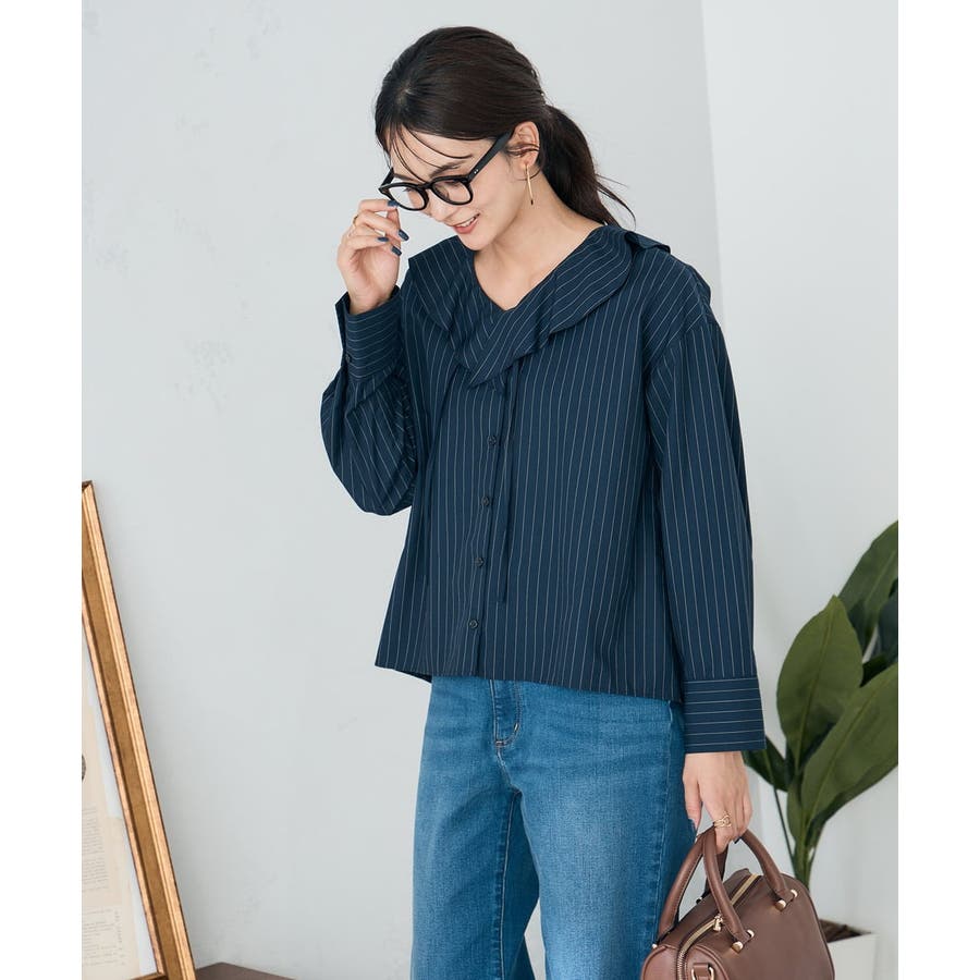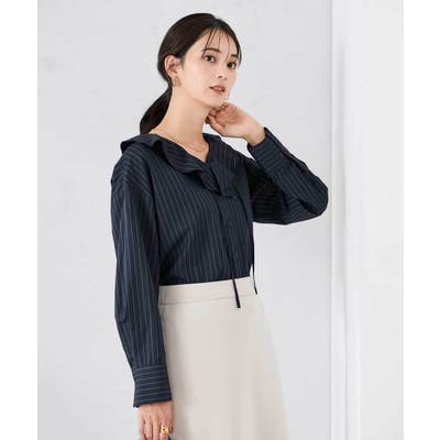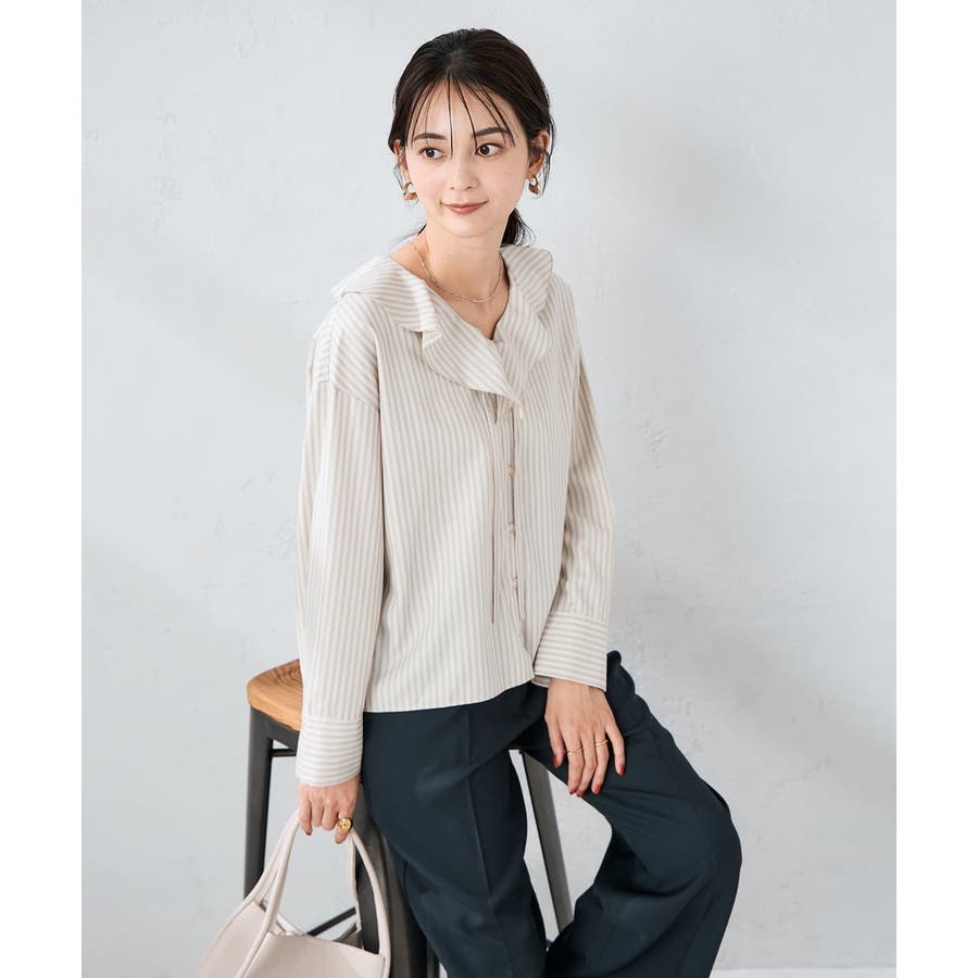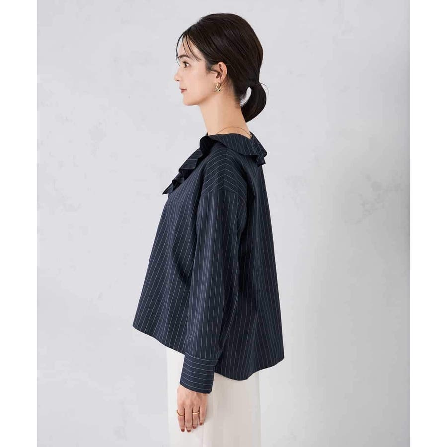 ラッフルフリルストライプブラウス