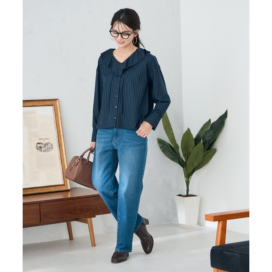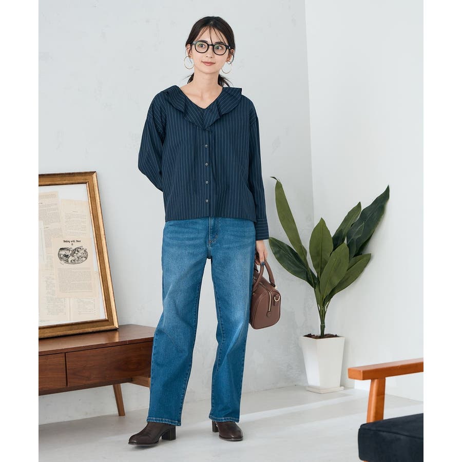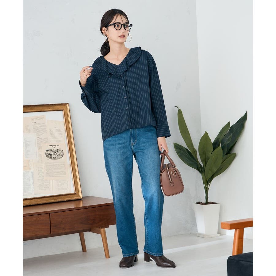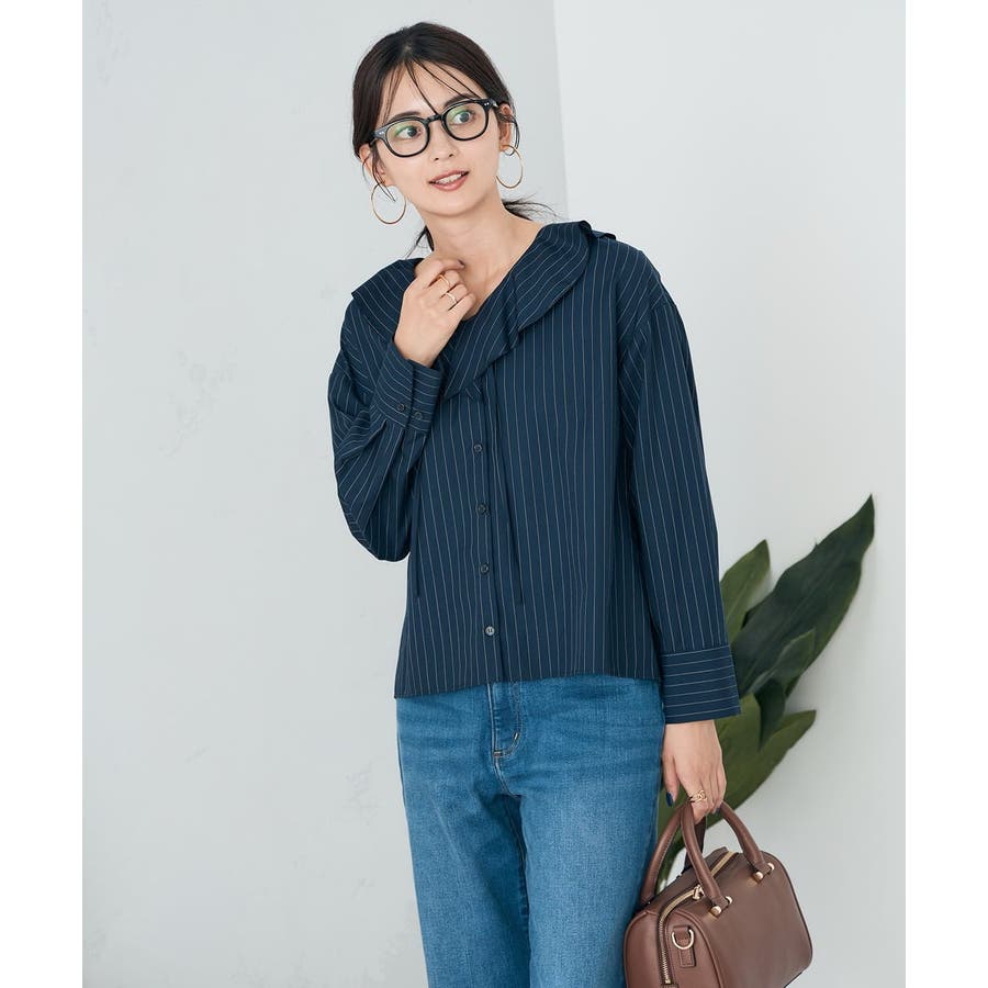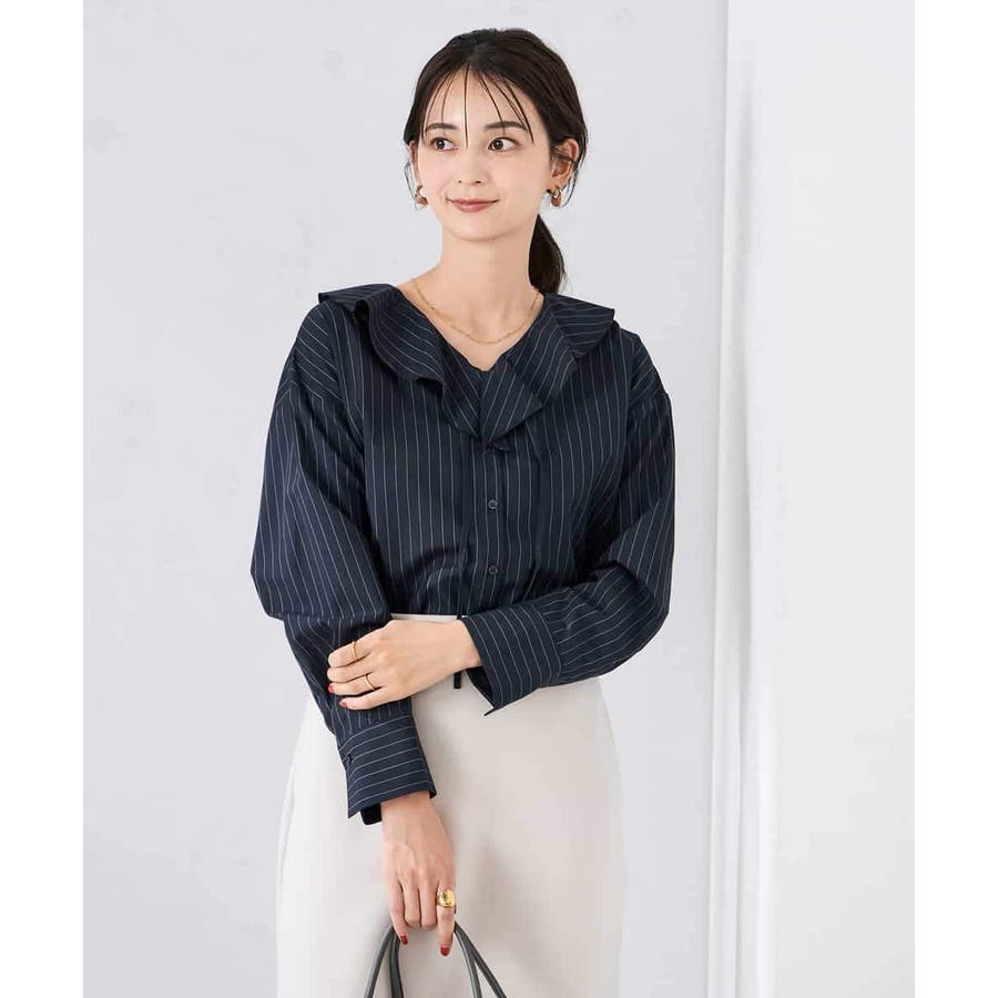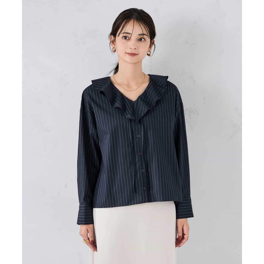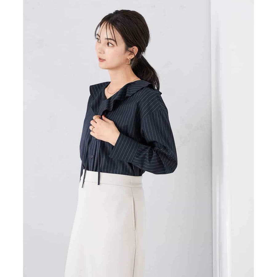 ラッフルフリルストライプブラウス