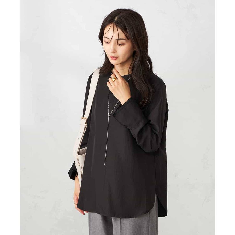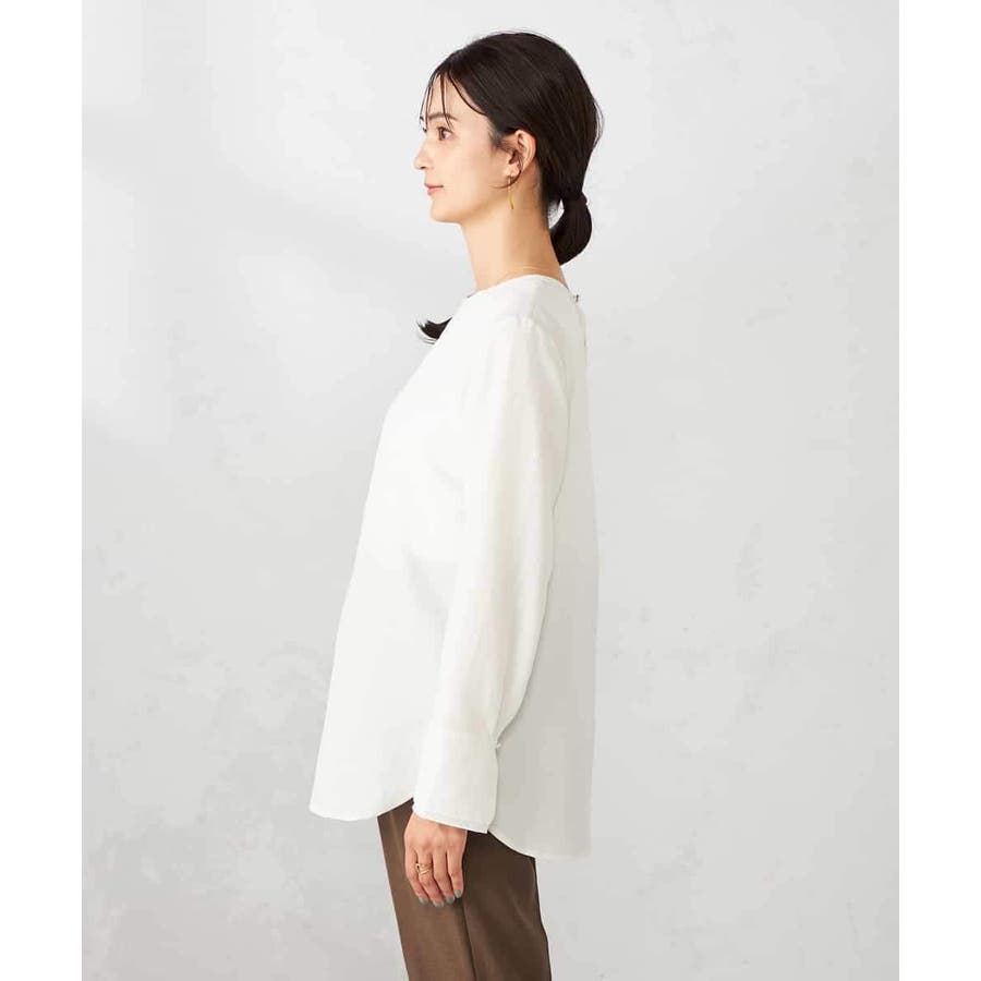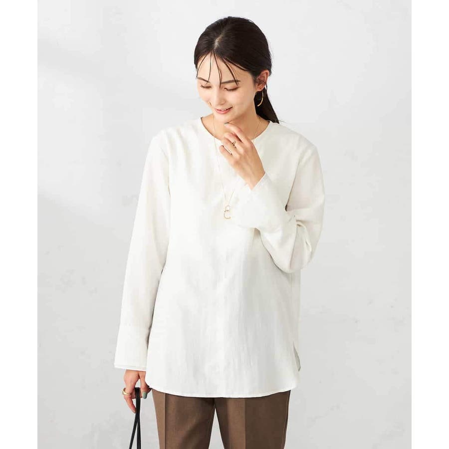 ・シンプルなノーカラーブラウス